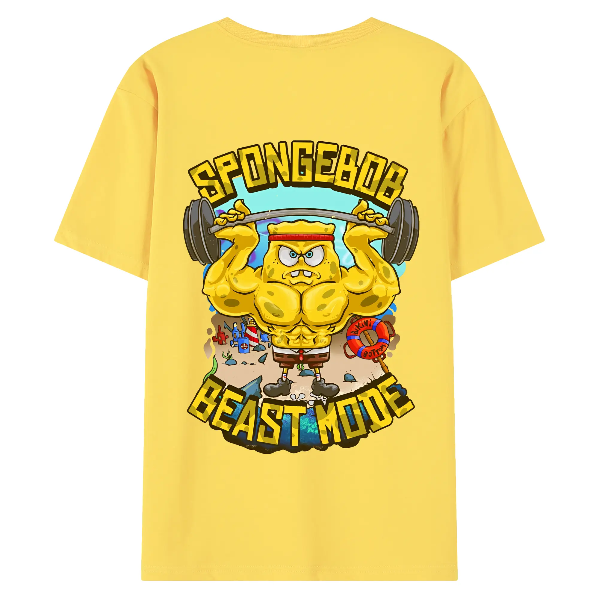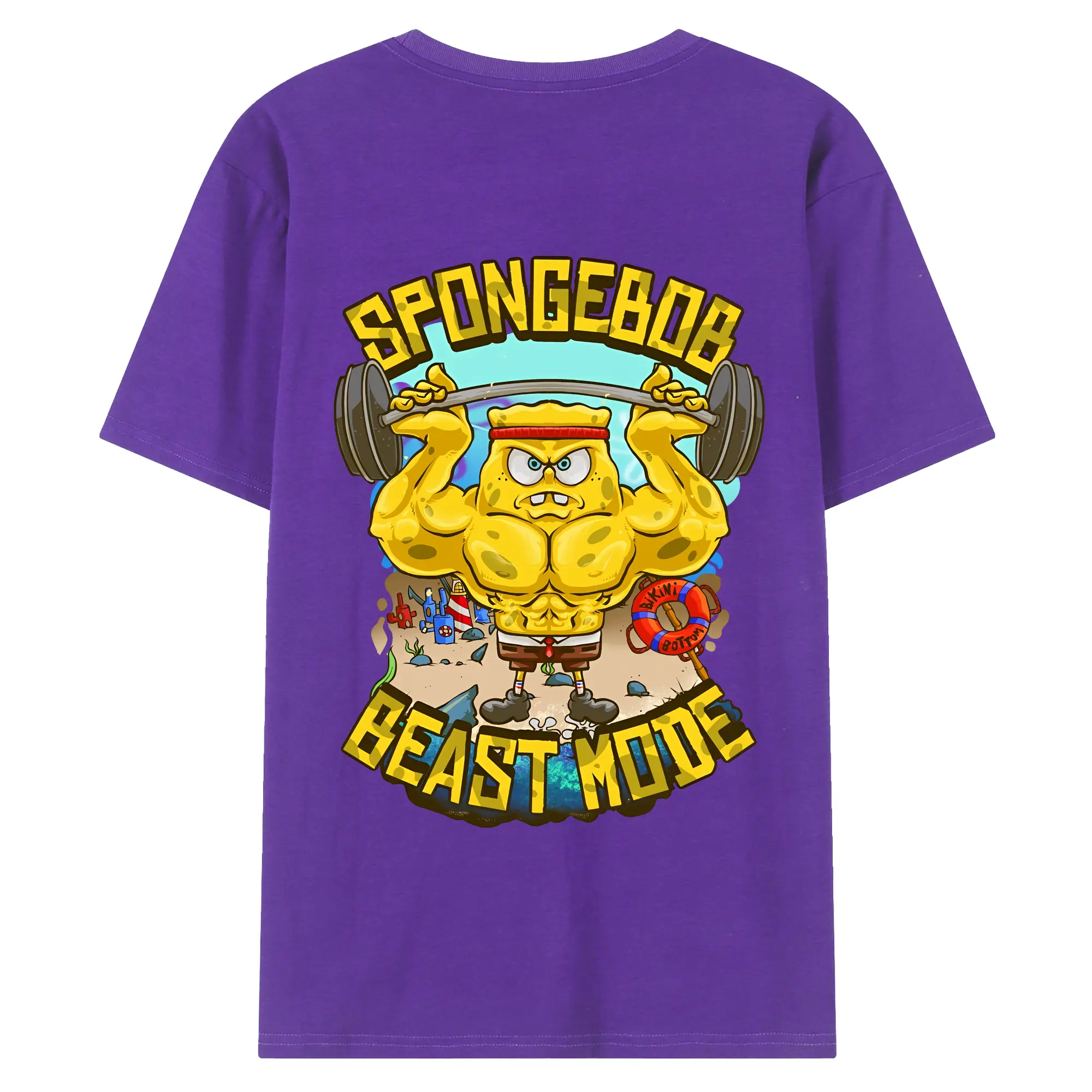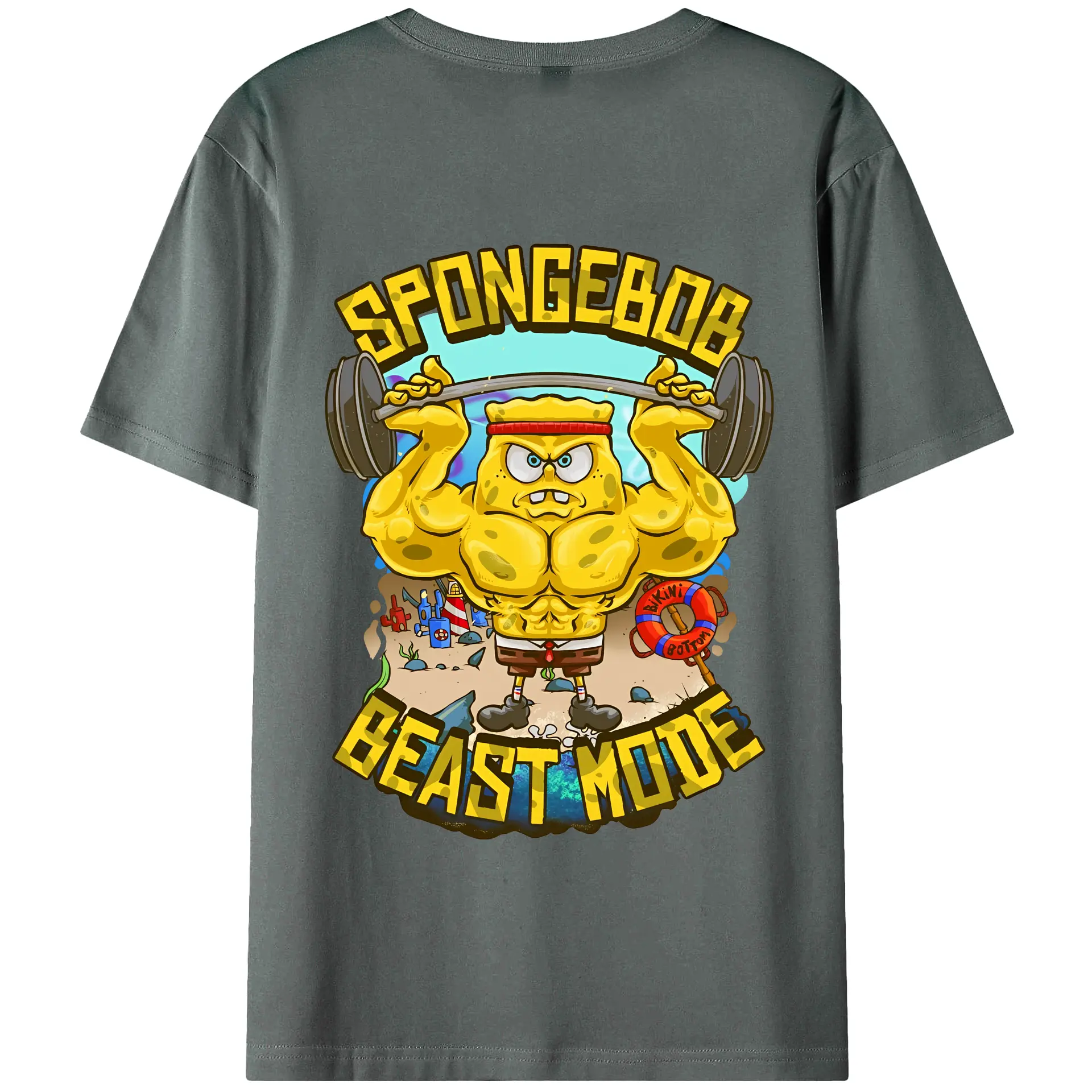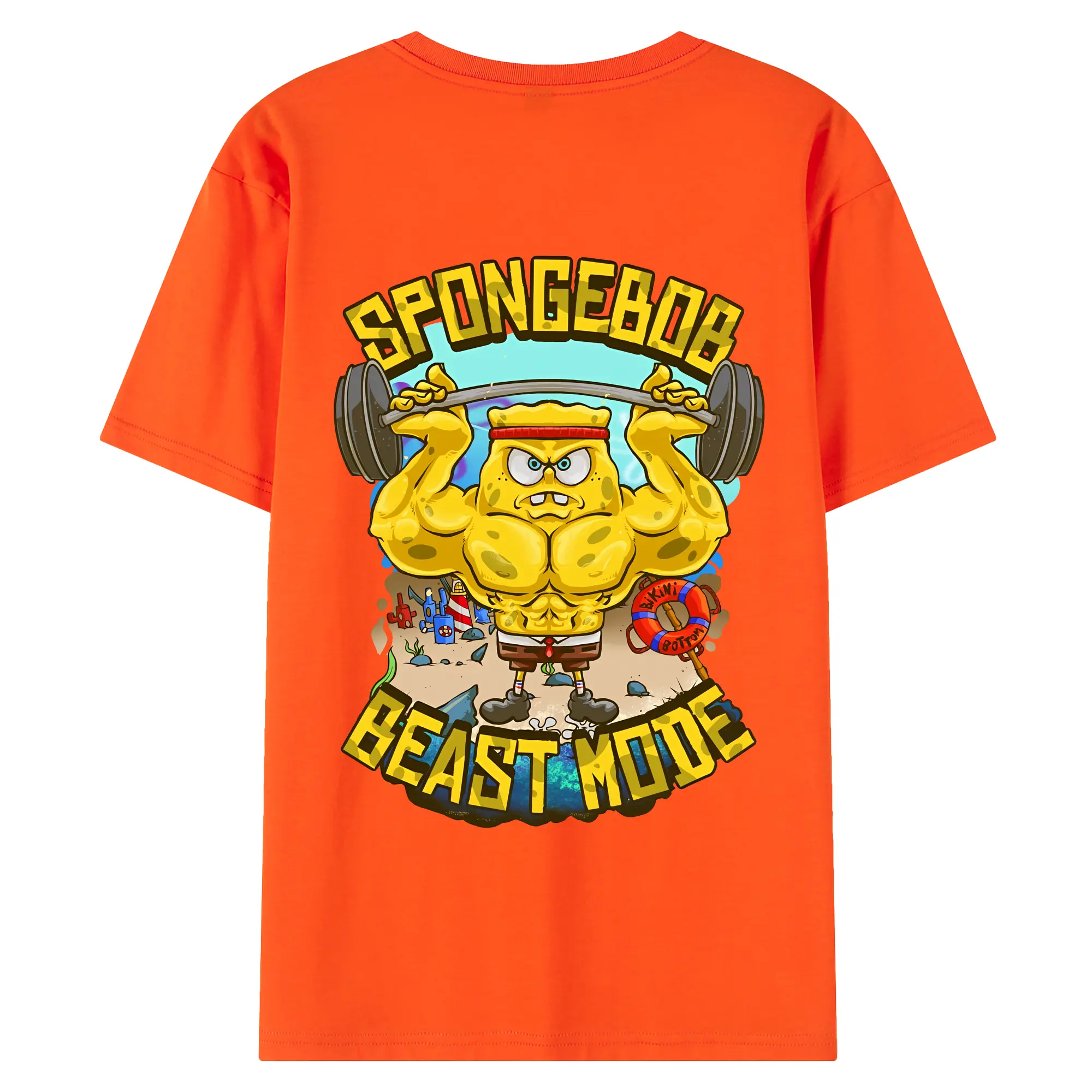 スポンジボブ グッズ スポンジボブ - 綿100% 半袖Tシャツ ・ バックプリント ・ 快適 通気性 ・ 日常使い 散歩 スポーツ用