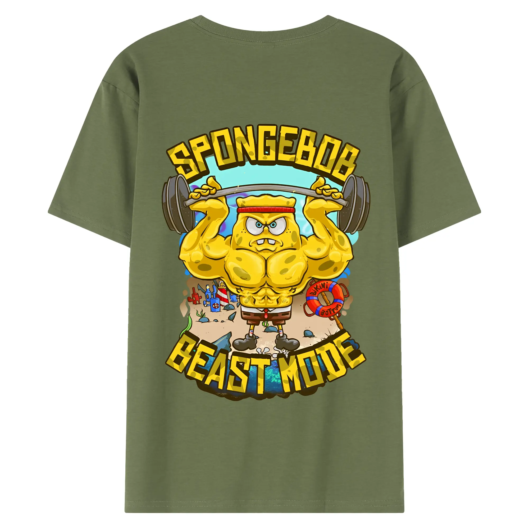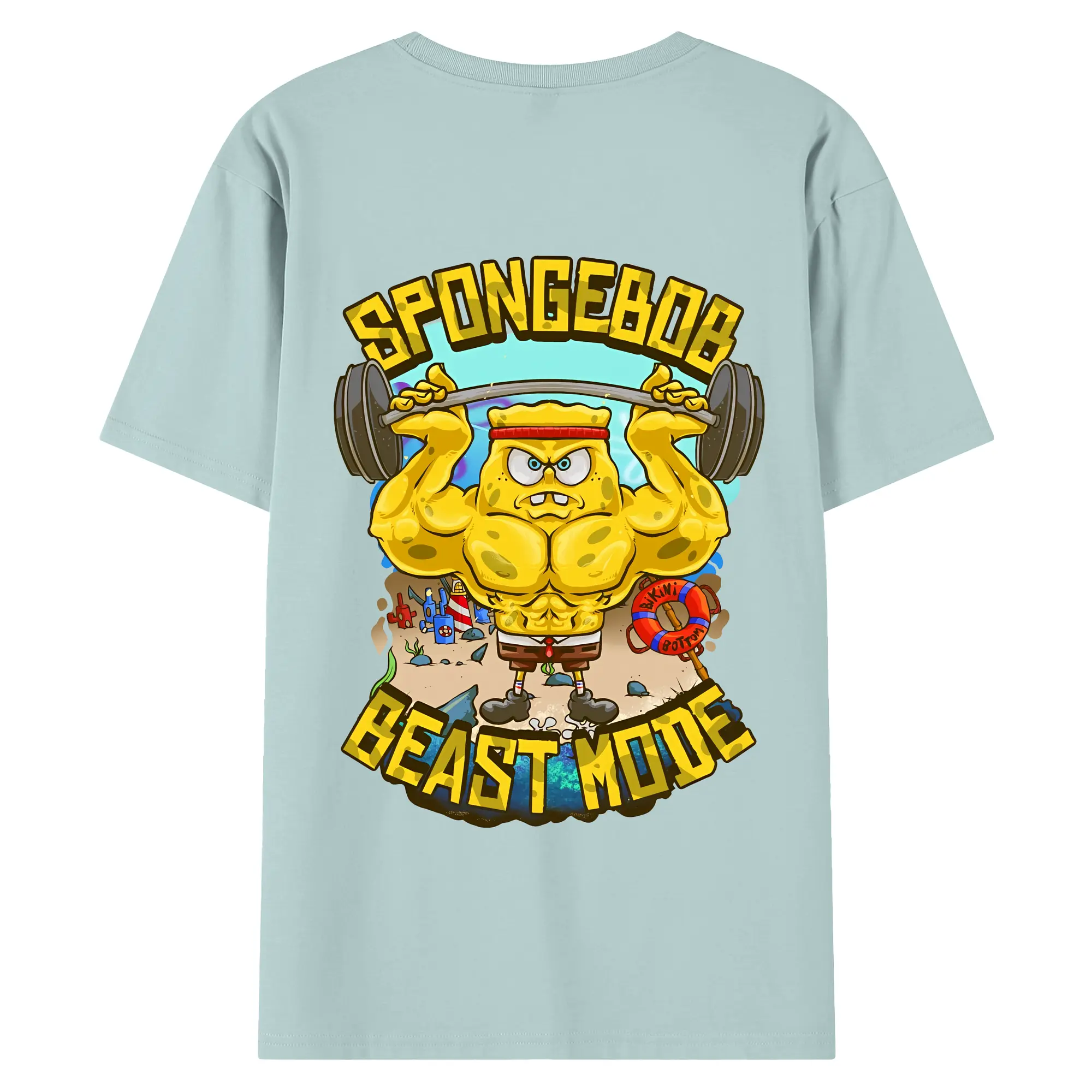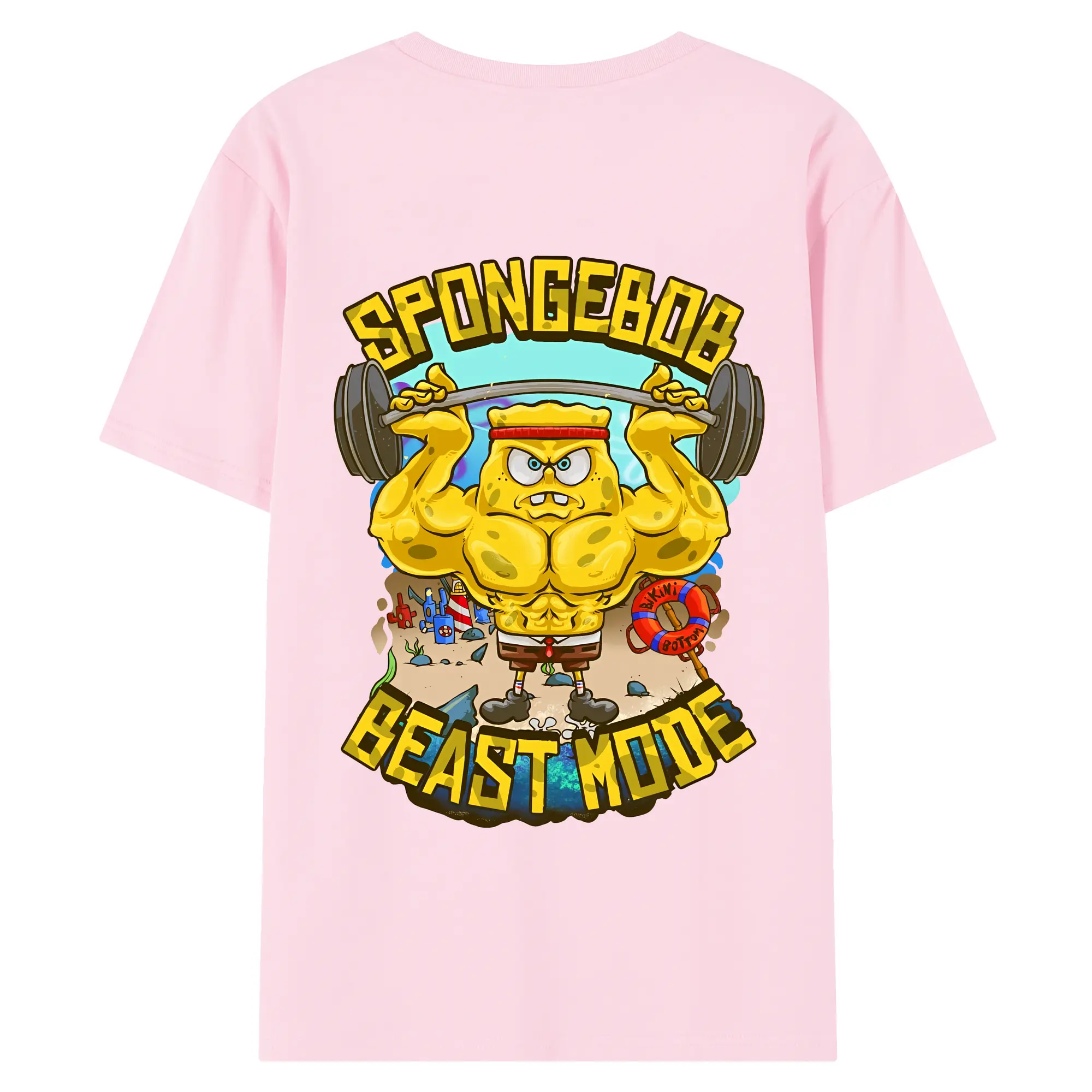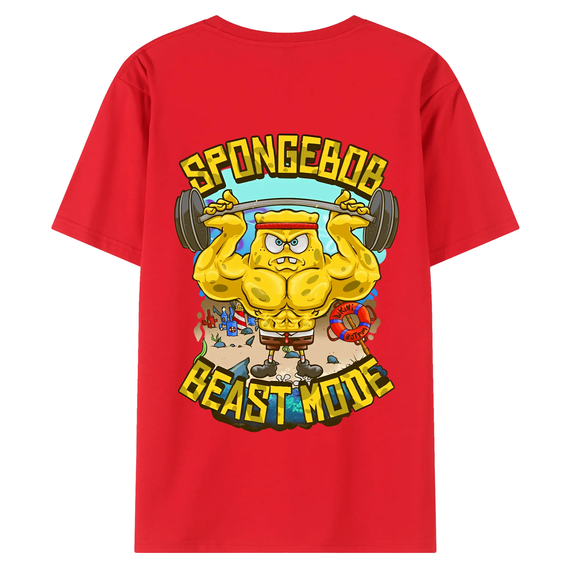 スポンジボブ グッズ スポンジボブ - 綿100% 半袖Tシャツ ・ バックプリント ・ 快適 通気性 ・ 日常使い 散歩 スポーツ用