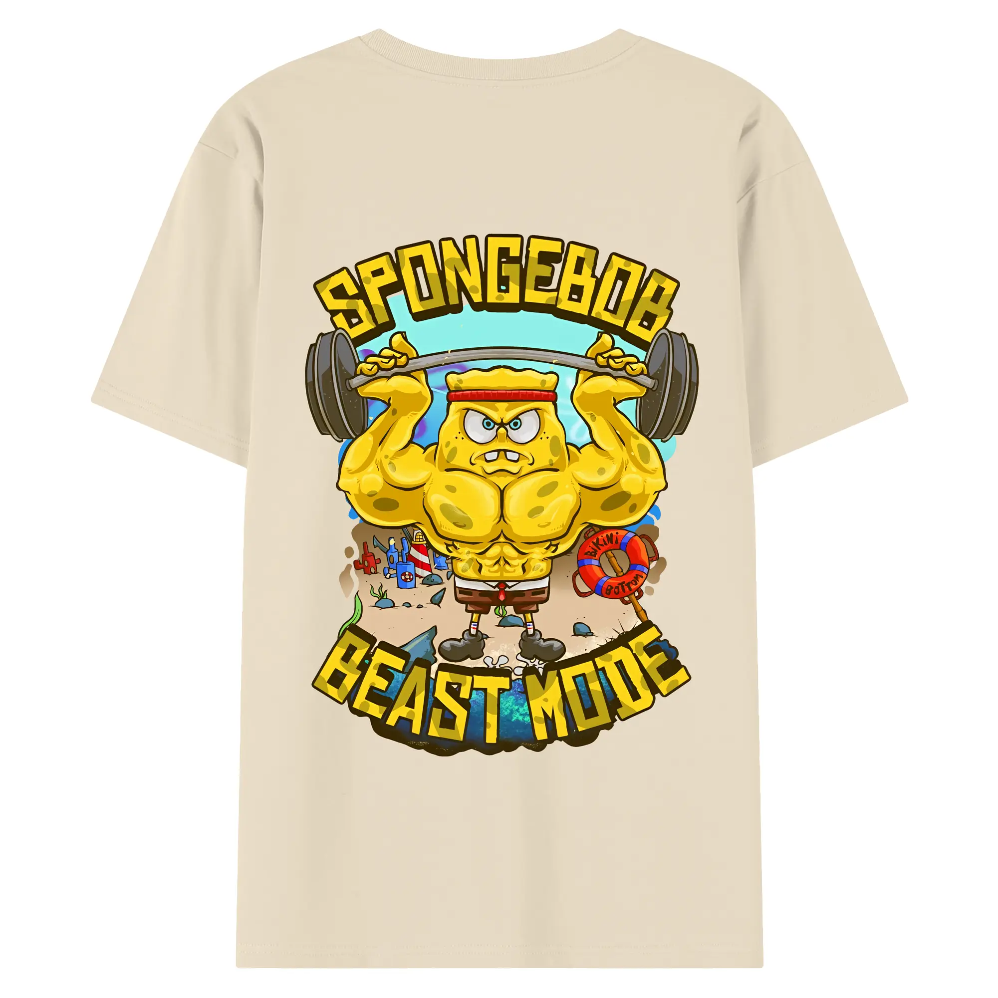 スポンジボブ グッズ スポンジボブ - 綿100% ヴィンテージ風 半袖Tシャツ ・ 背面プリント ・ 柔らか肌触り ・ 通気性 快適 ・ スポーツ カジュアル 外出用