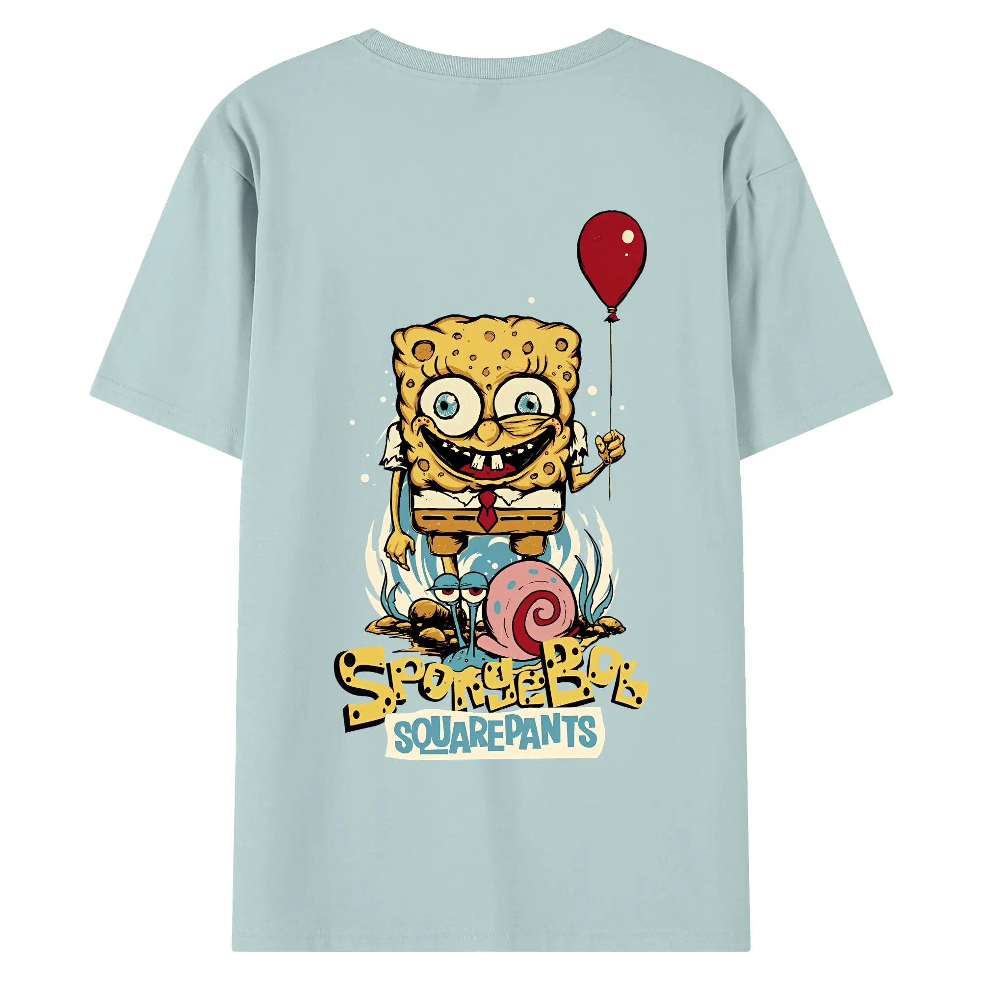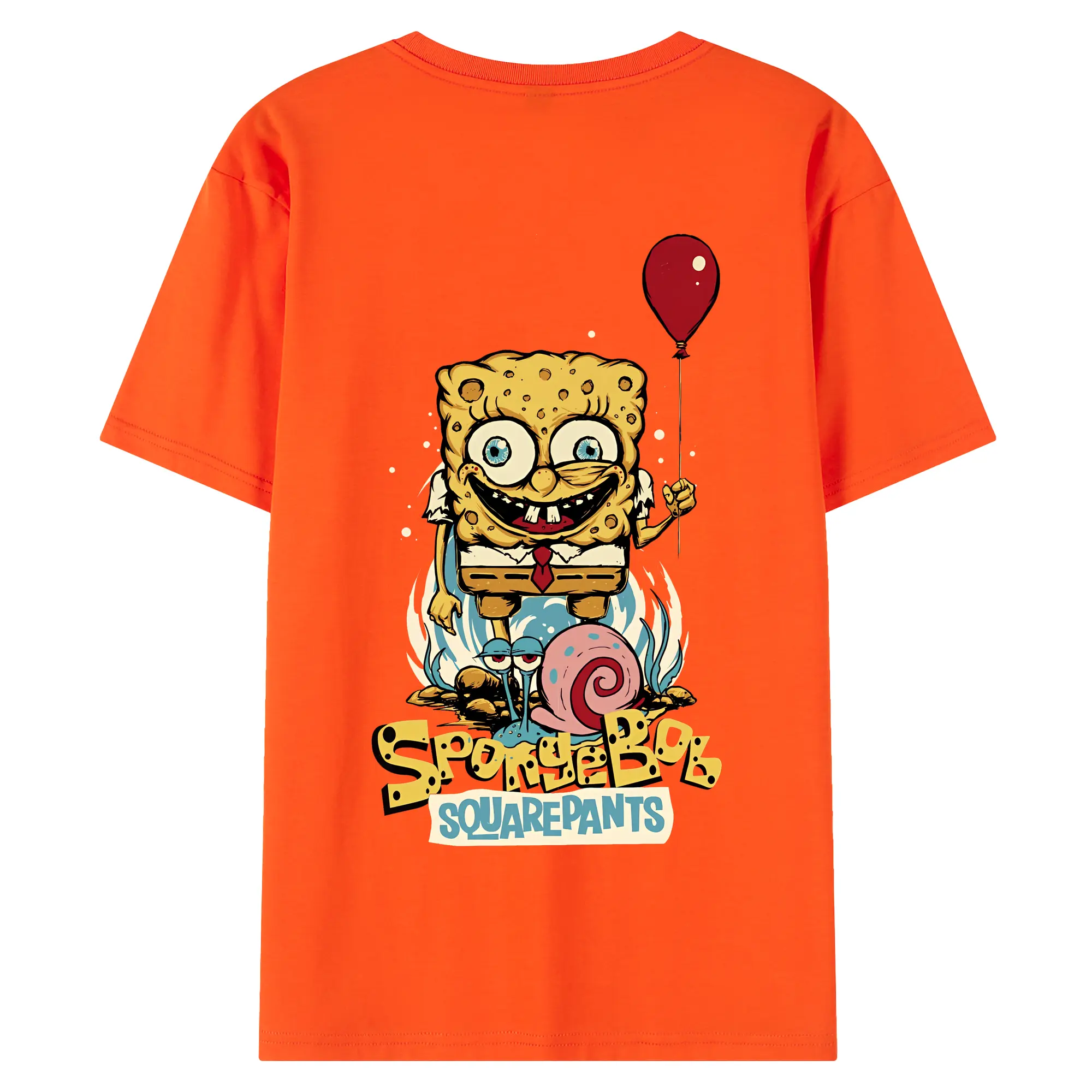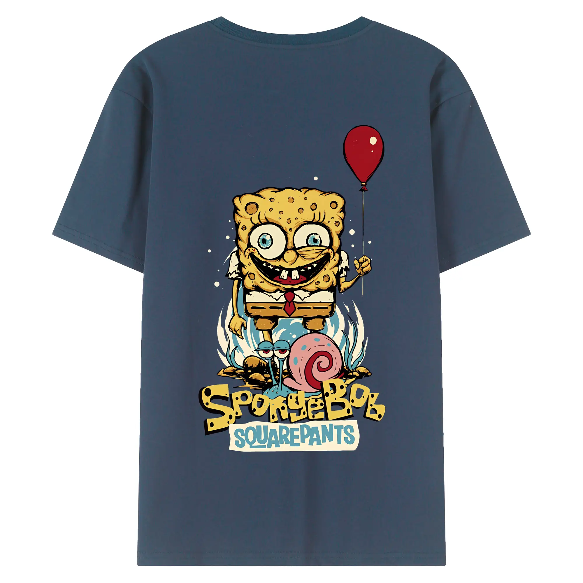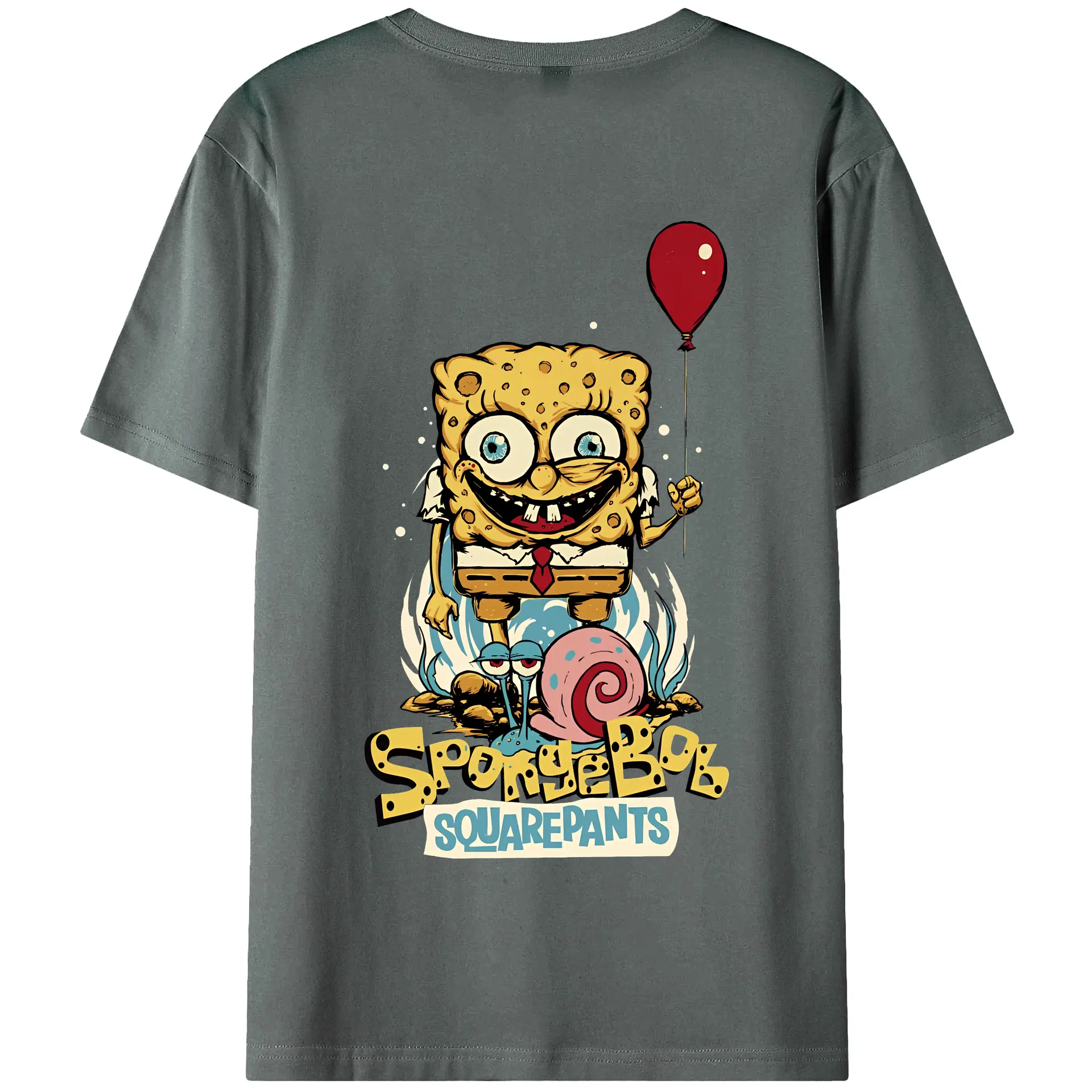 スポンジボブ グッズ スポンジボブ - 綿100% ヴィンテージ風 半袖Tシャツ ・ 背面プリント ・ 柔らか肌触り ・ 通気性 快適 ・ スポーツ カジュアル 外出用