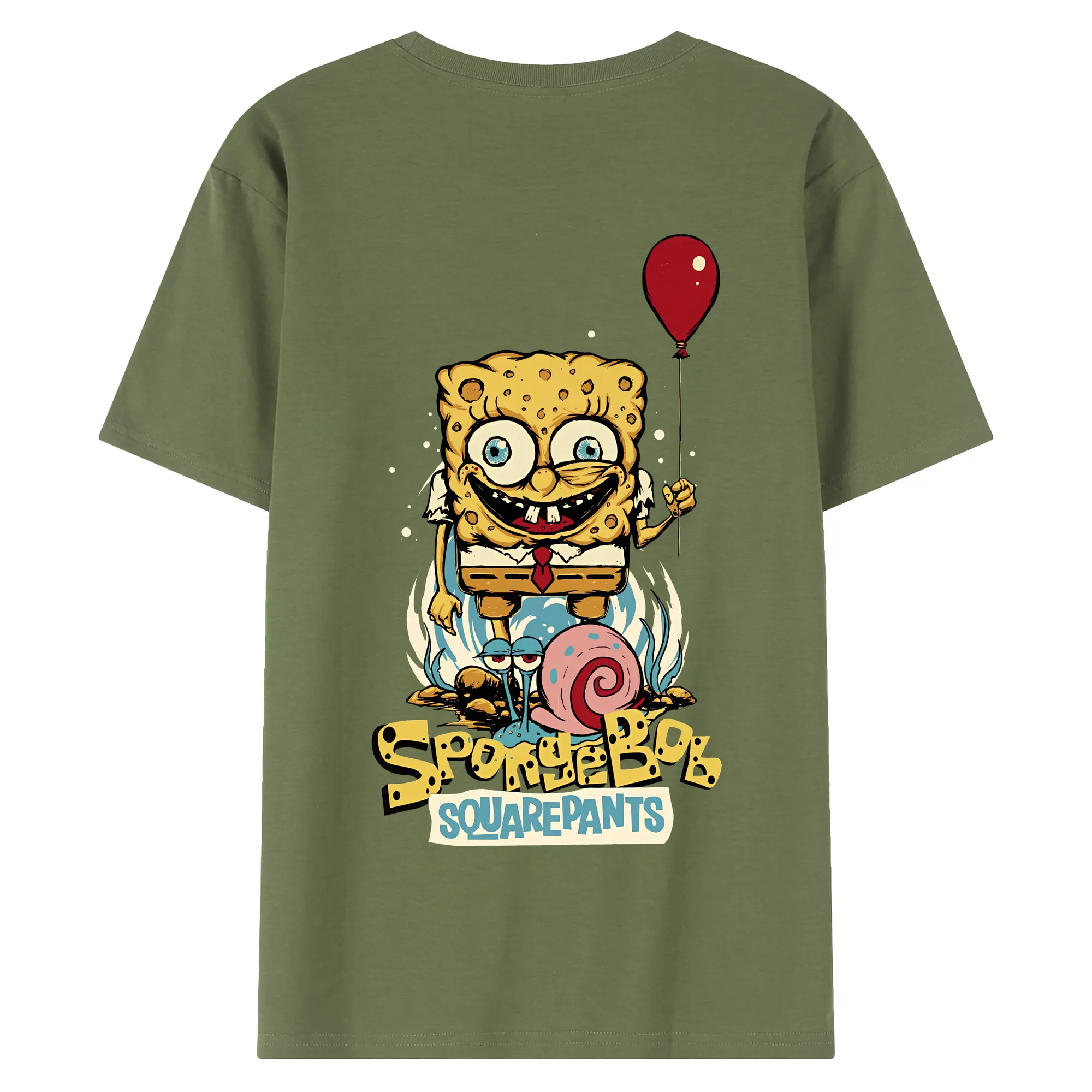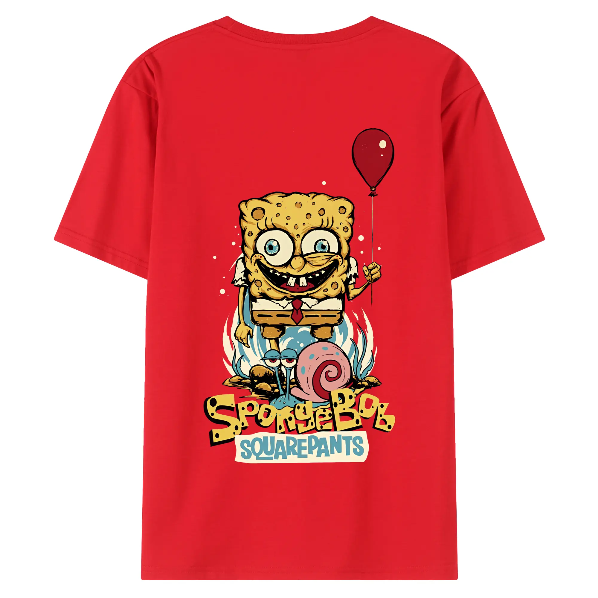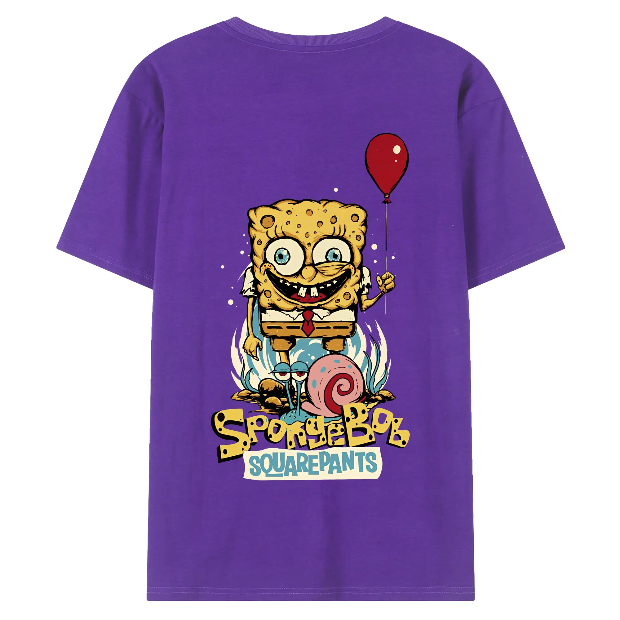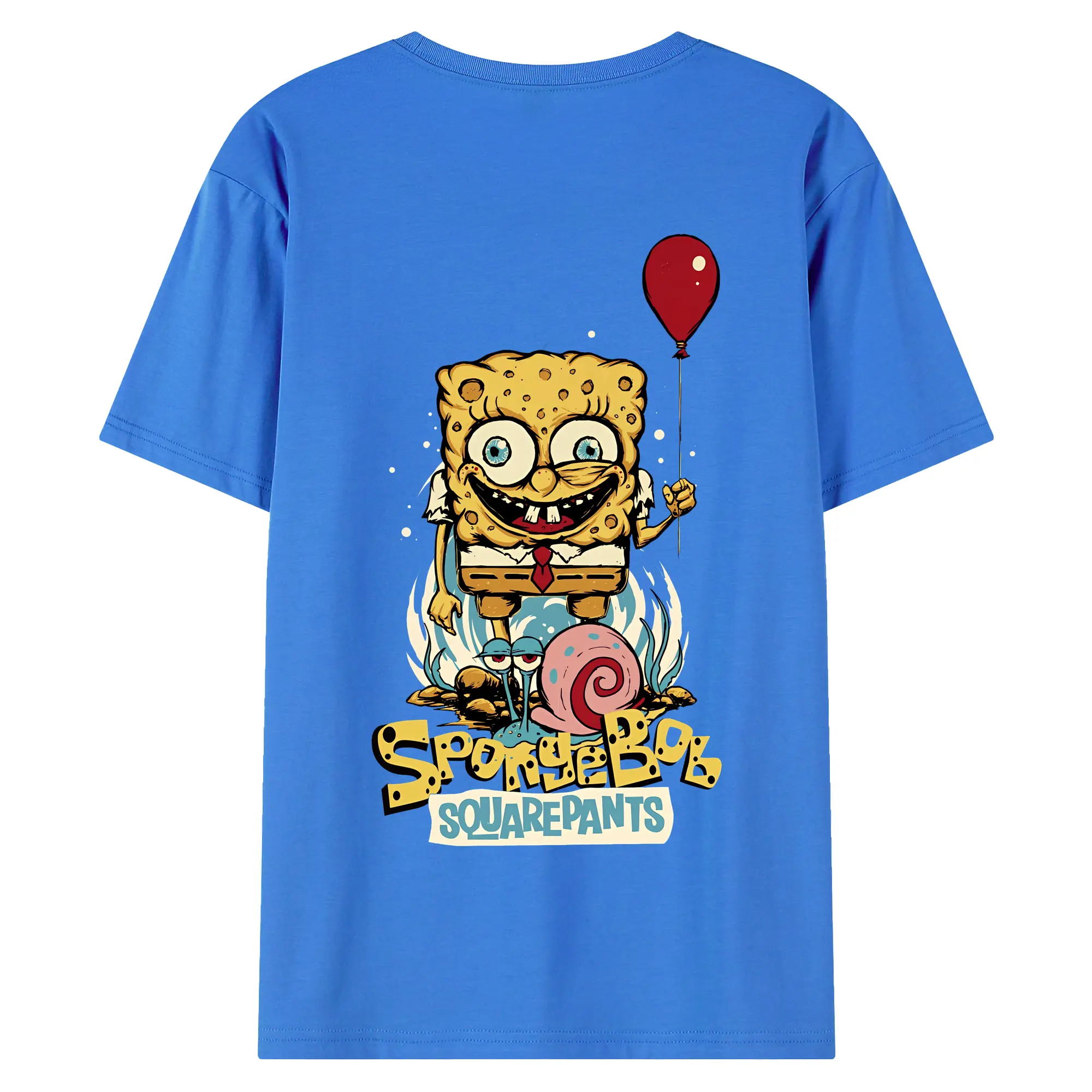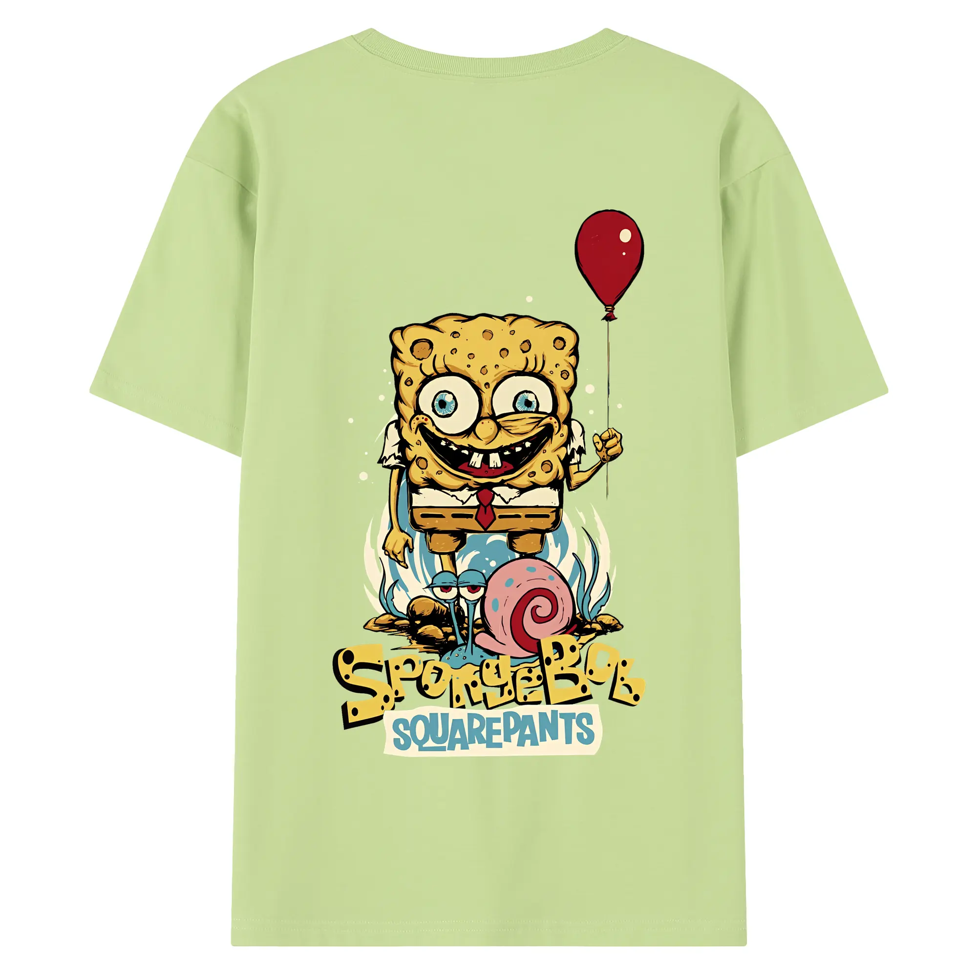スポンジボブ グッズ スポンジボブ - 綿100% ヴィンテージ風 半袖Tシャツ ・ 背面プリント ・ 柔らか肌触り ・ 通気性 快適 ・ スポーツ カジュアル 外出用