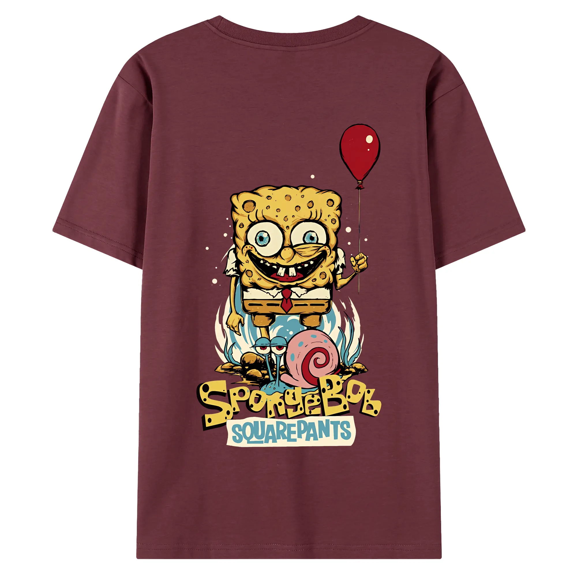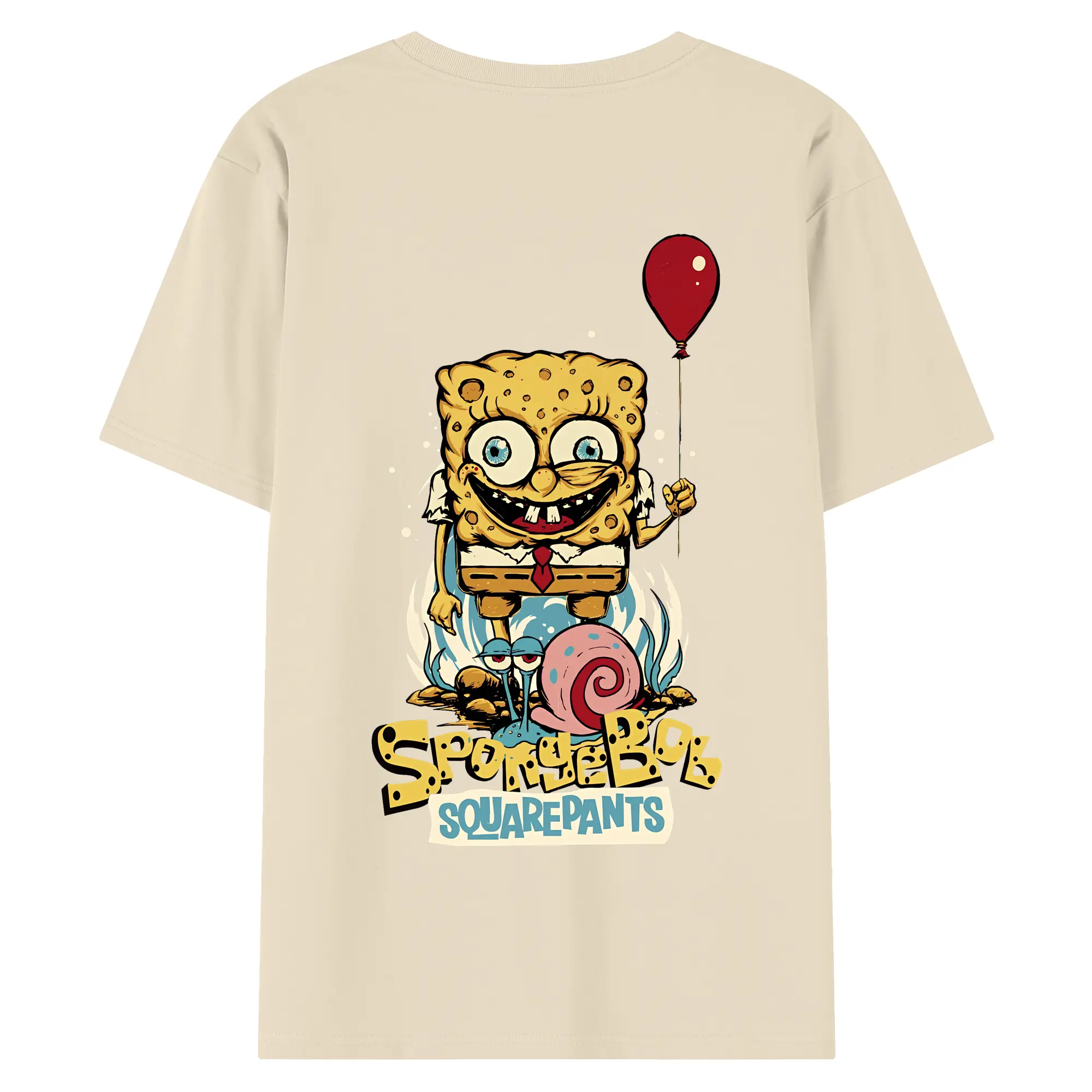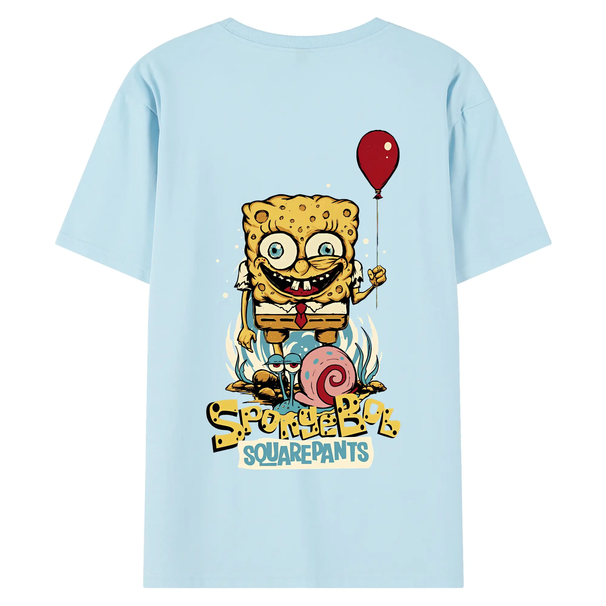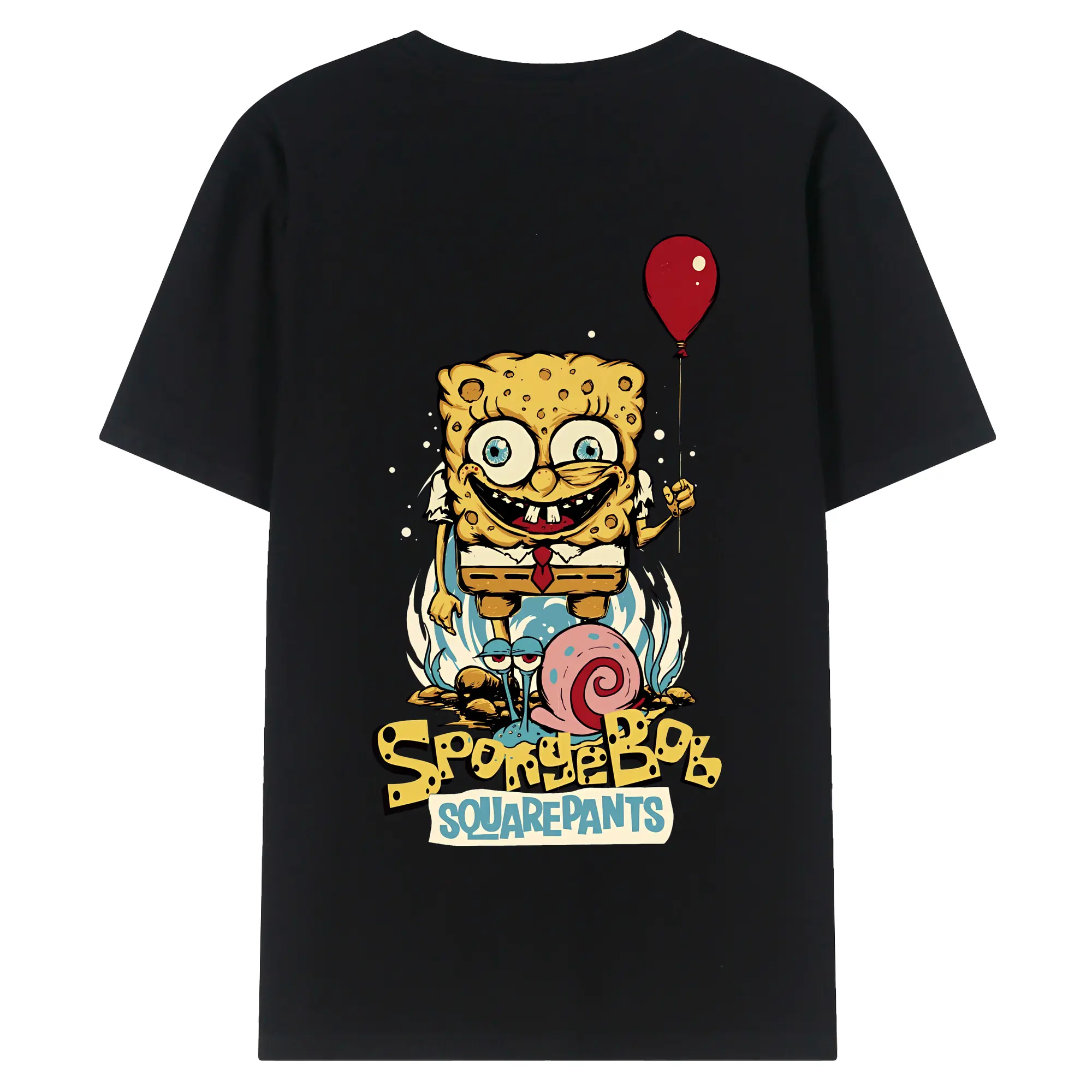 スポンジボブ グッズ スポンジボブ - 綿100% ヴィンテージ風 半袖Tシャツ ・ 背面プリント ・ 柔らか肌触り ・ 通気性 快適 ・ スポーツ カジュアル 外出用