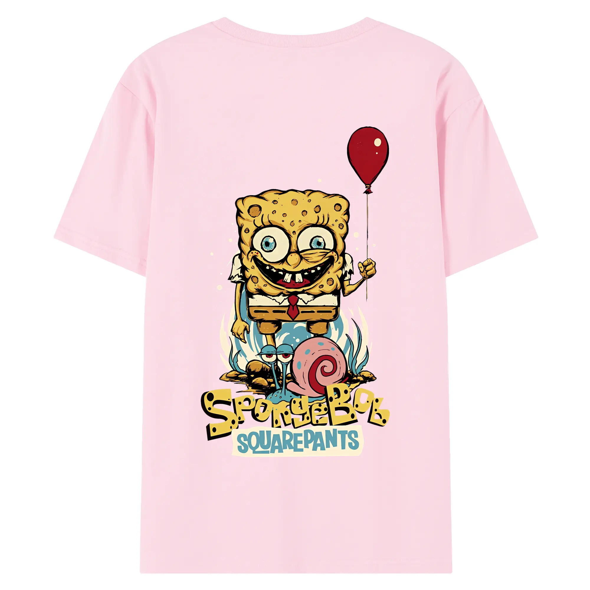 スポンジボブ グッズ スポンジボブ - 綿100% 半袖Tシャツ ・ フロントプリント ・ 快適 通気性 ・ 日常使い 散歩 スポーツ用