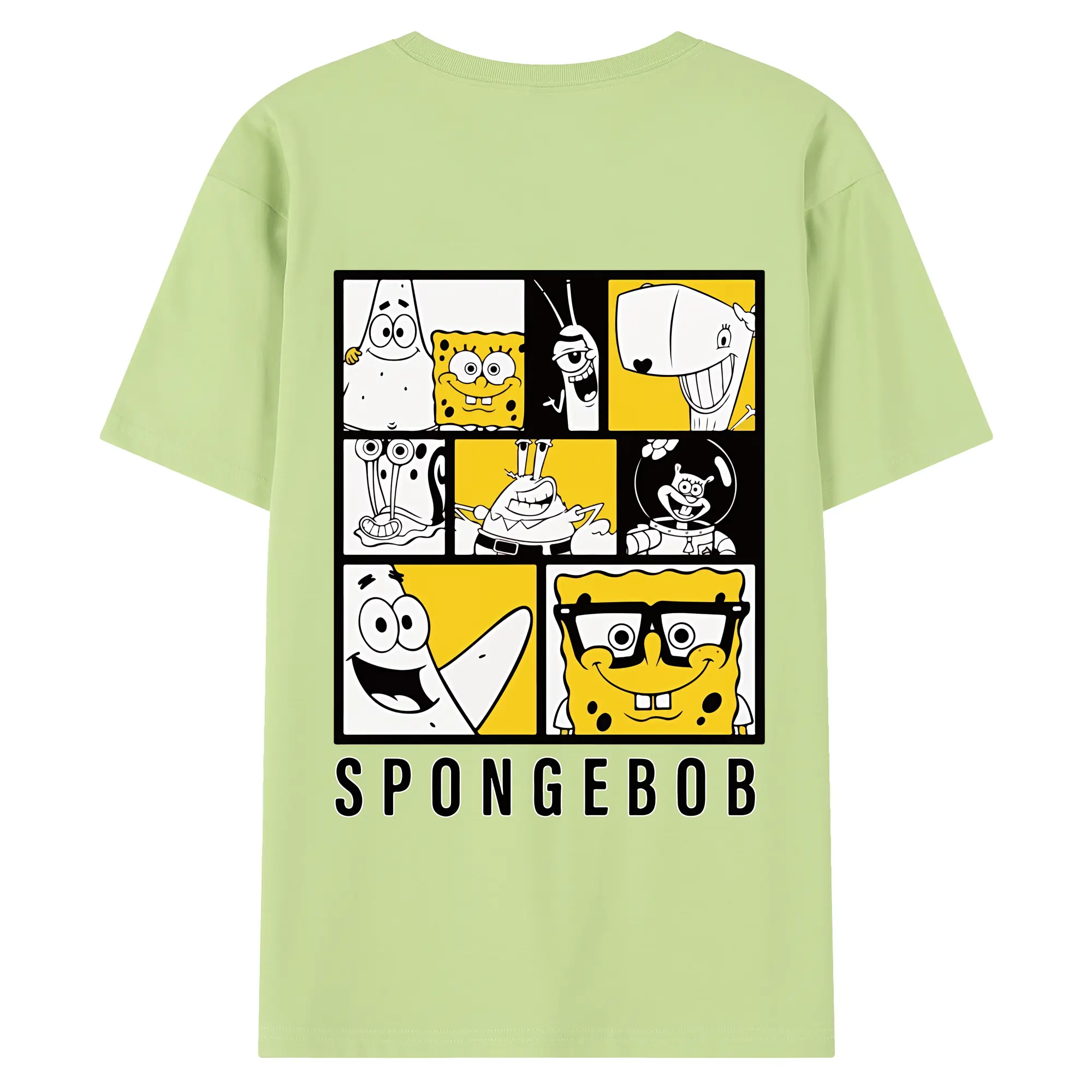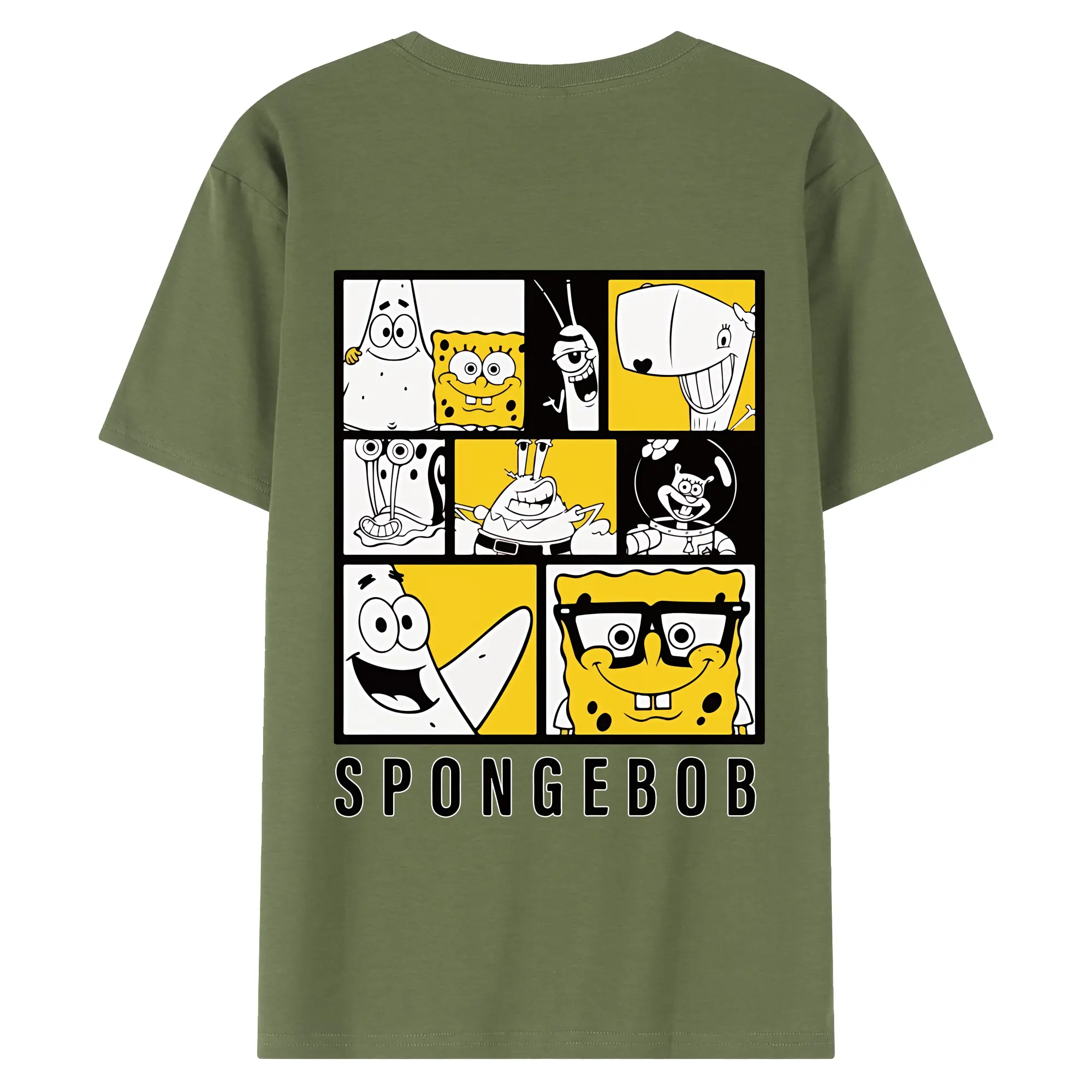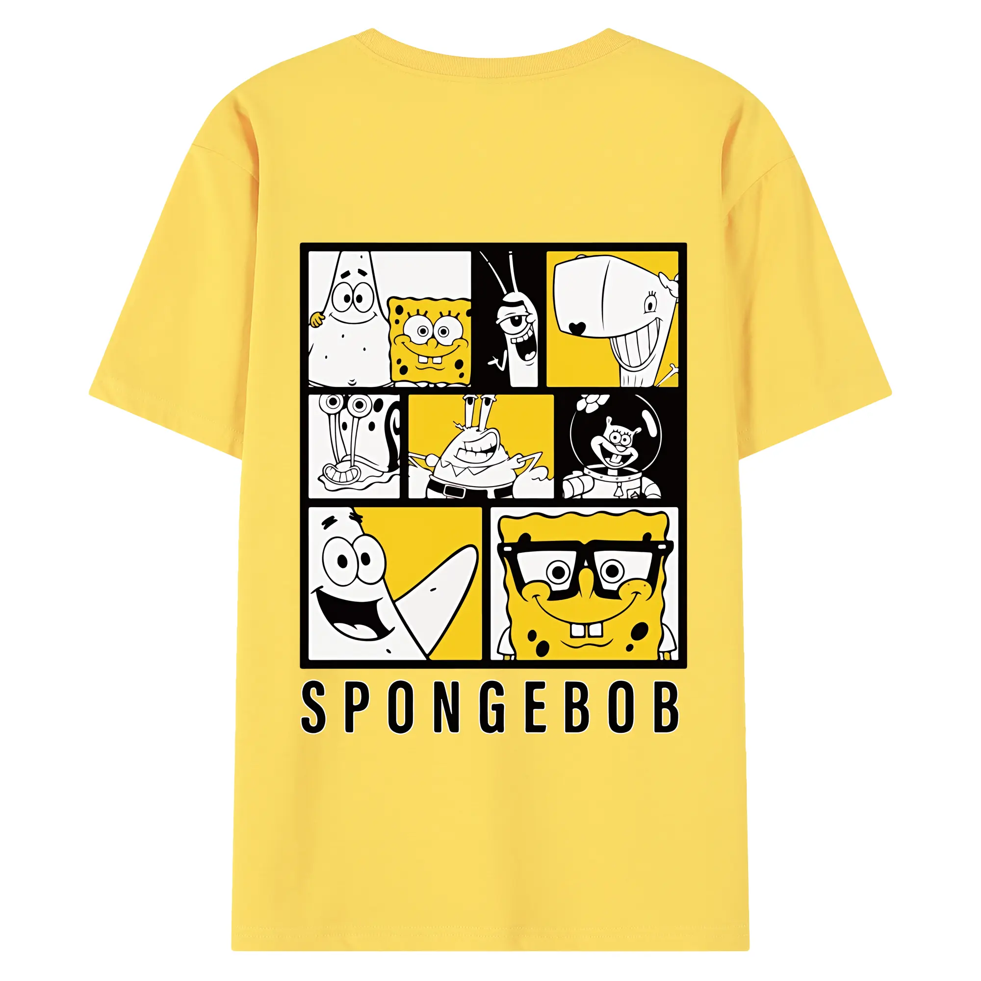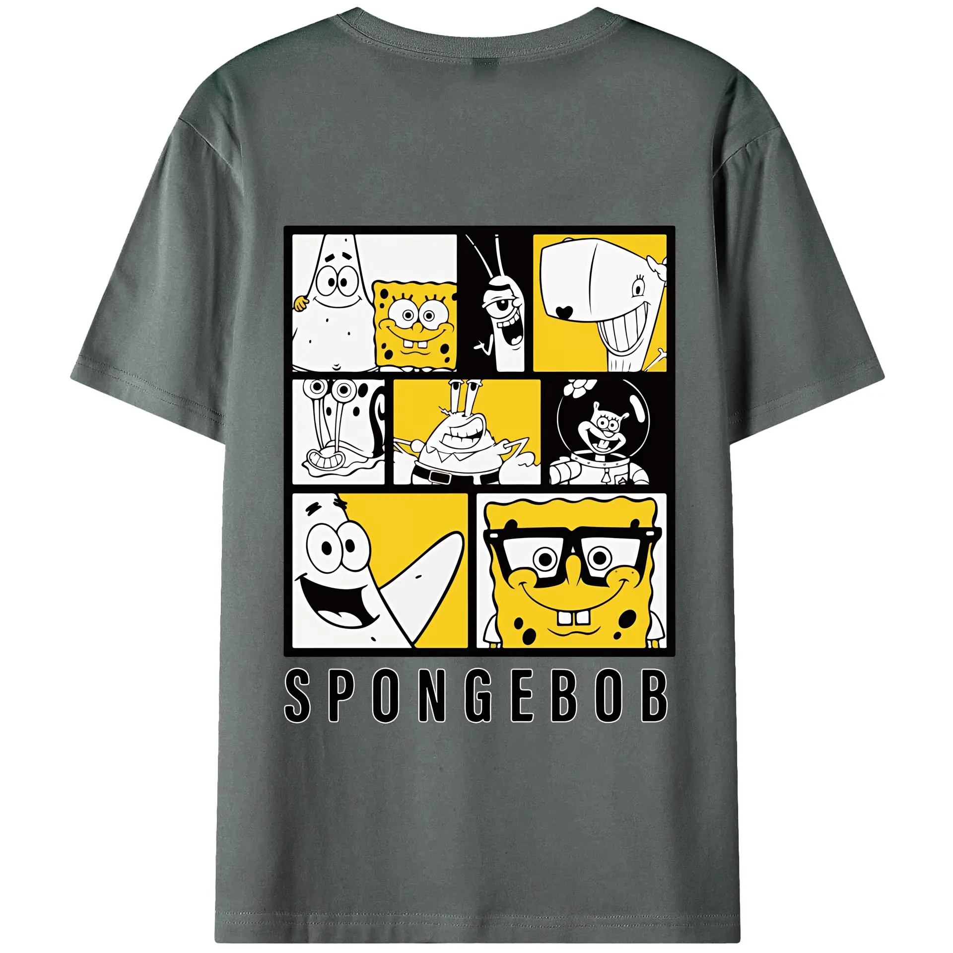 スポンジボブ グッズ スポンジボブ - 綿100% ヴィンテージ風 半袖Tシャツ ・ 背面プリント ・ 柔らか肌触り ・ 通気性 快適 ・ スポーツ カジュアル 外出用