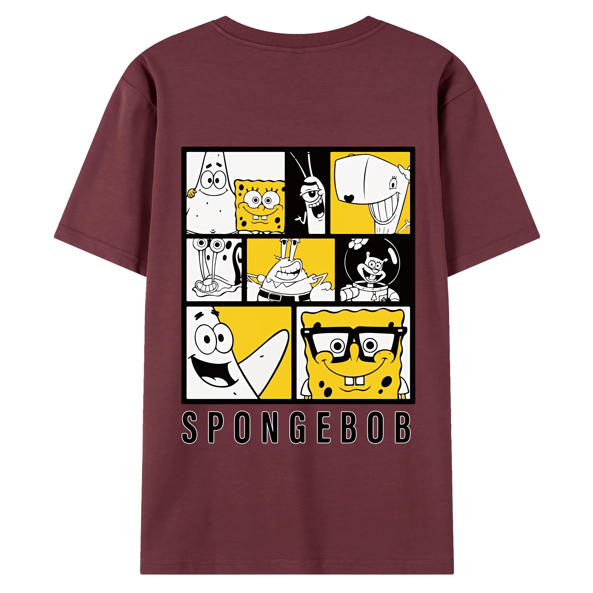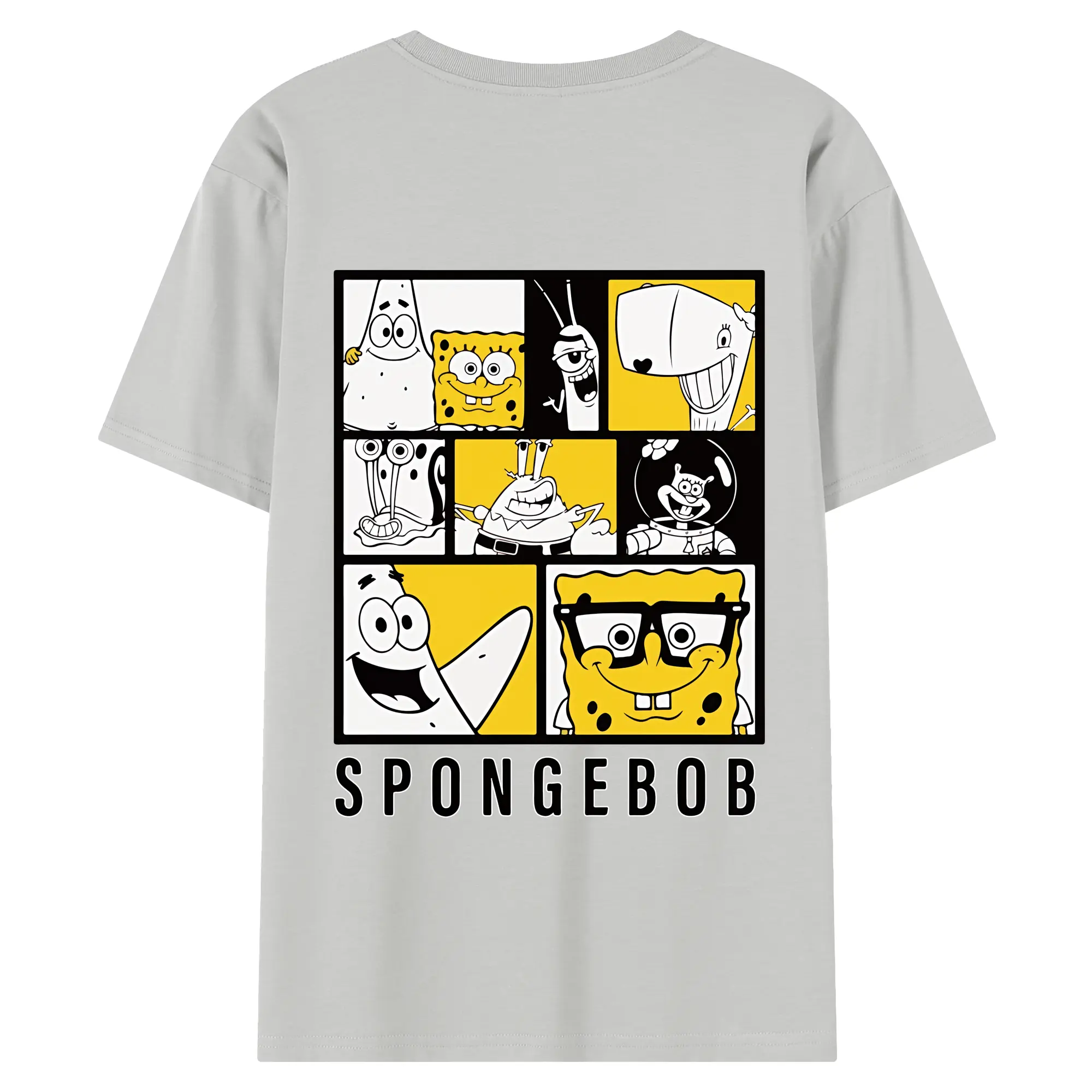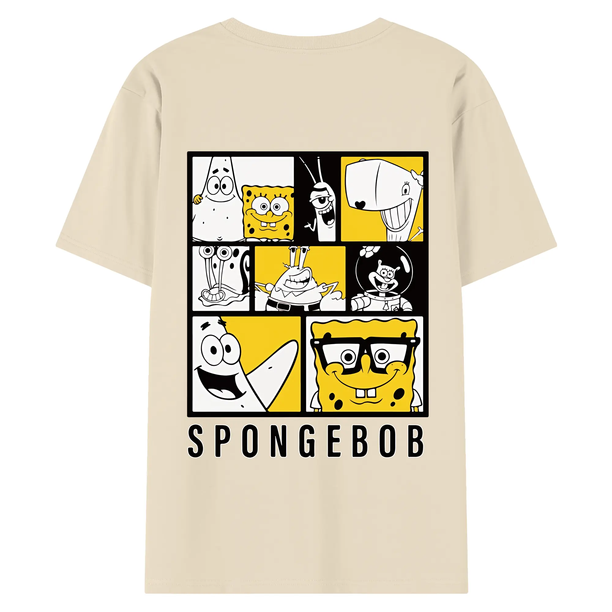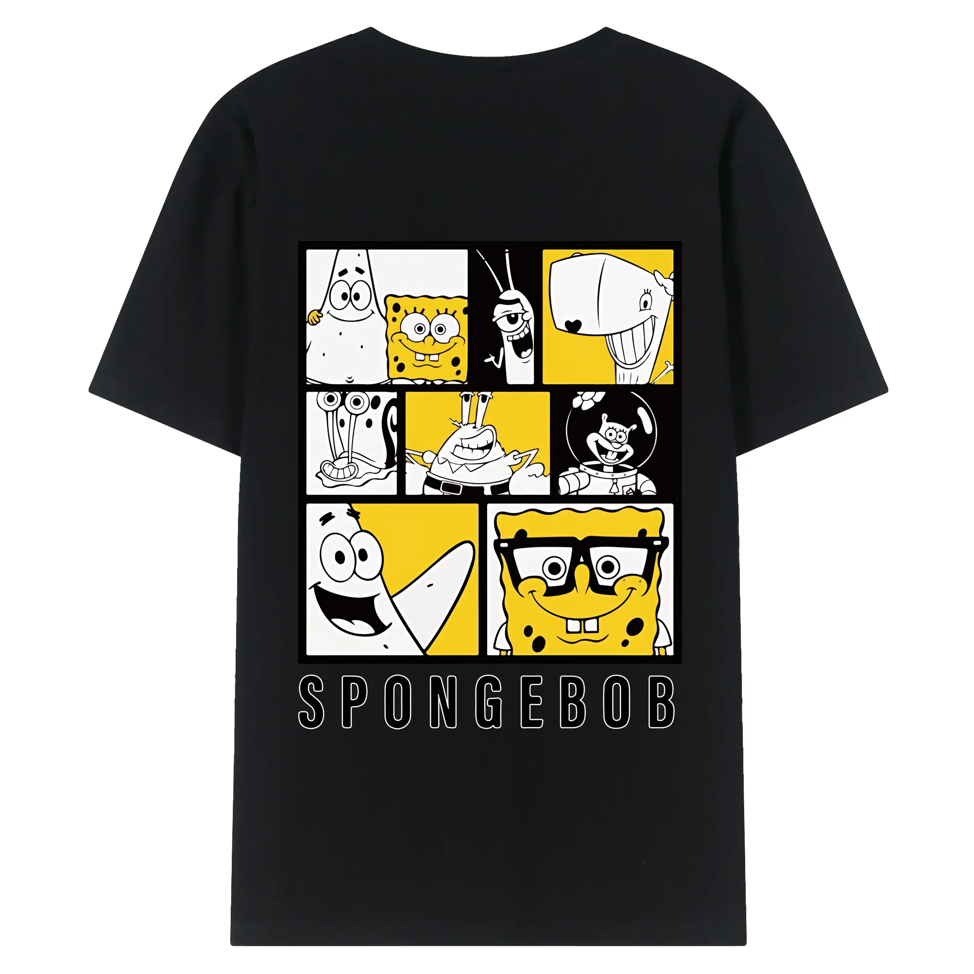 スポンジボブ グッズ スポンジボブ - 綿100% ヴィンテージ風 半袖Tシャツ ・ 背面プリント ・ 柔らか肌触り ・ 通気性 快適 ・ スポーツ カジュアル 外出用