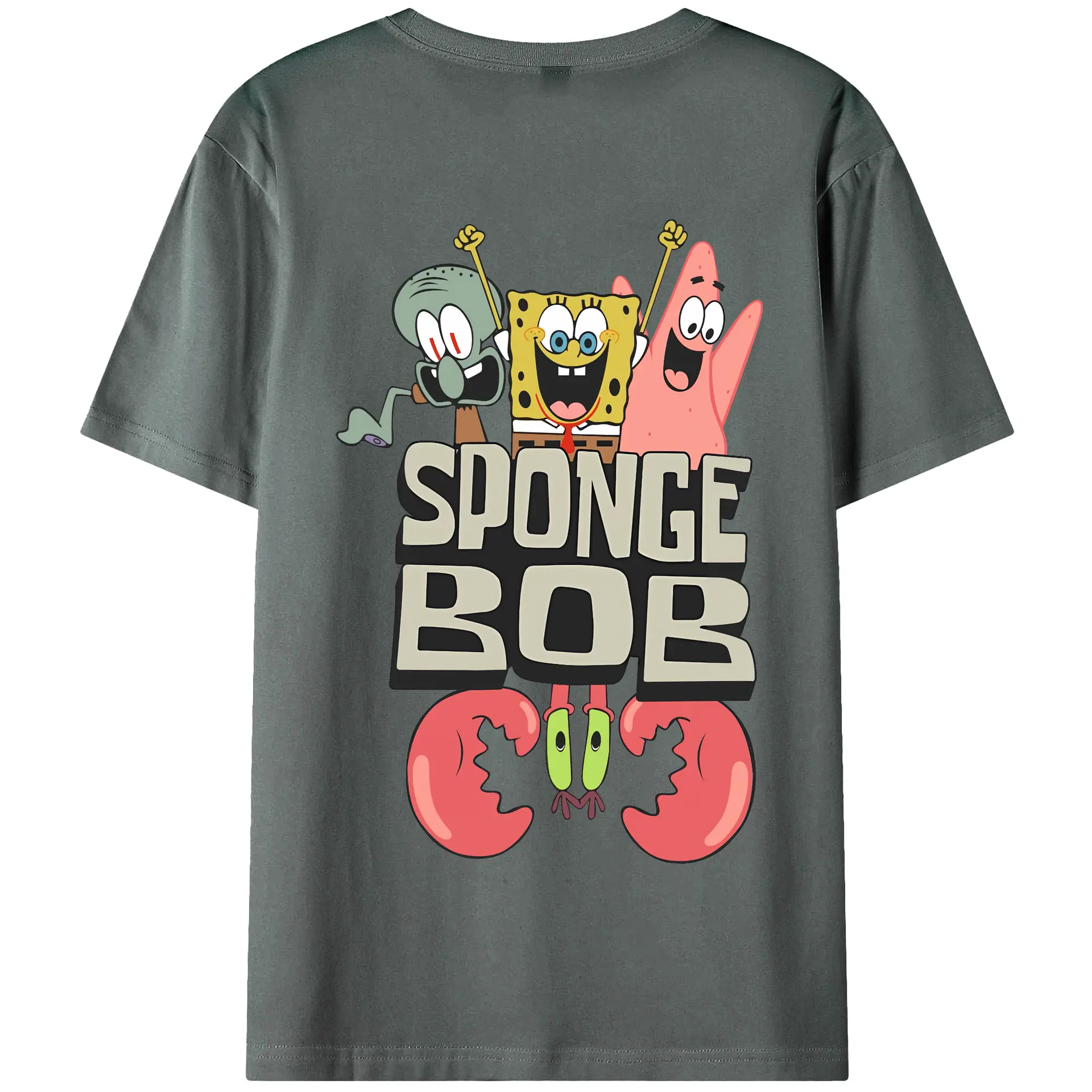 スポンジボブ グッズ スポンジボブ - 綿100% ヴィンテージ風 半袖Tシャツ ・ 背面プリント ・ 柔らか肌触り ・ 通気性 快適 ・ スポーツ カジュアル 外出用