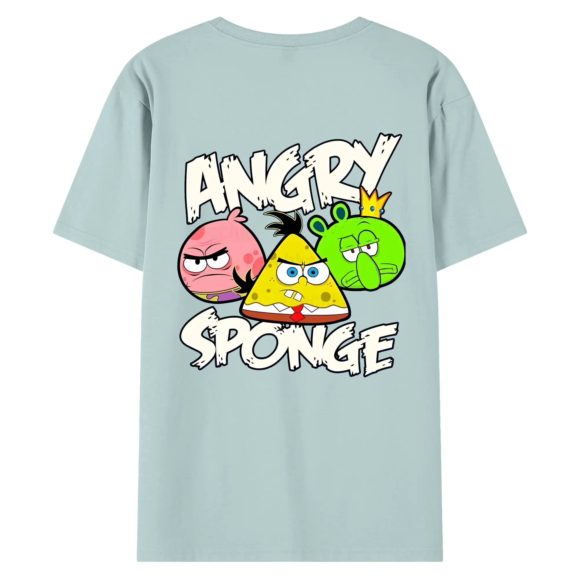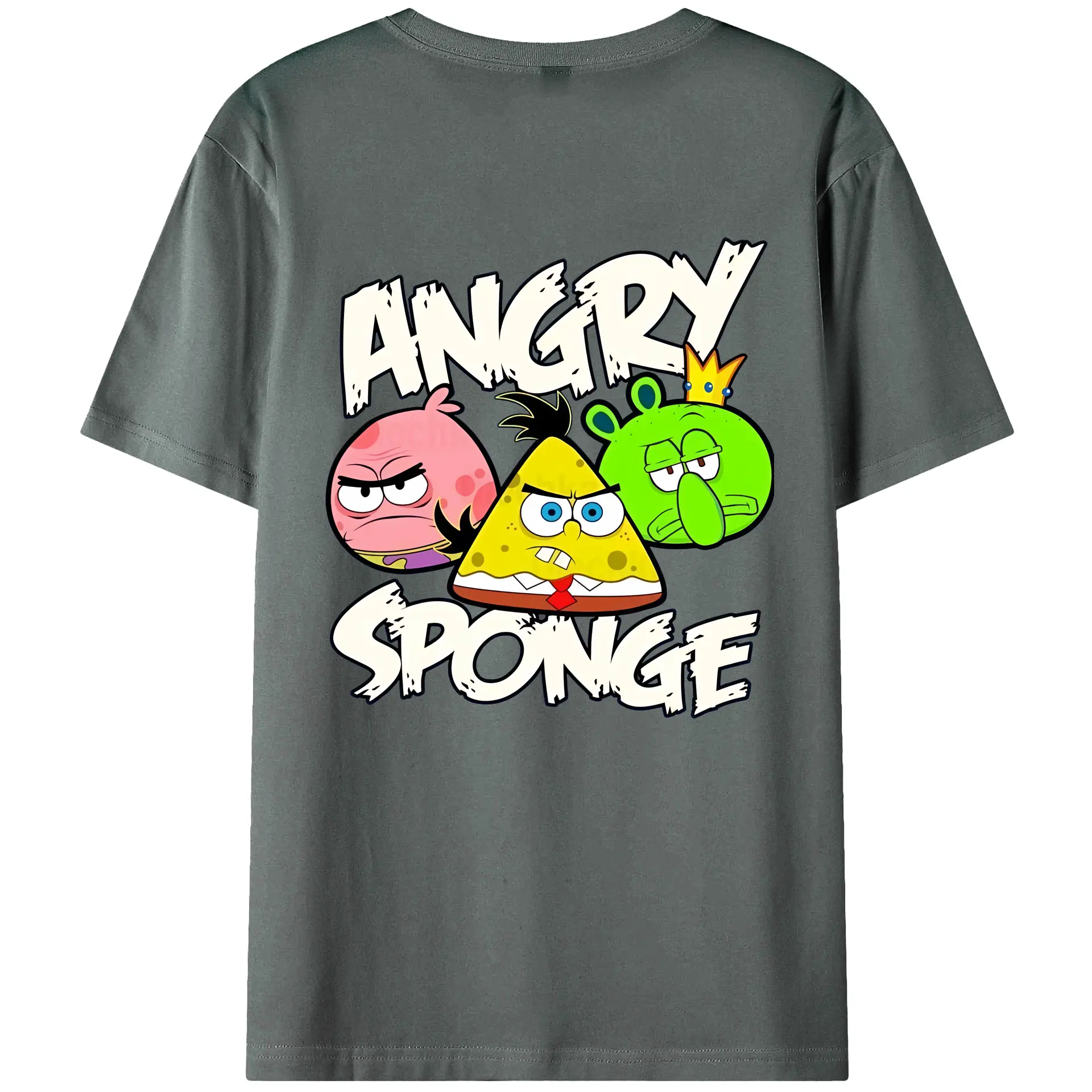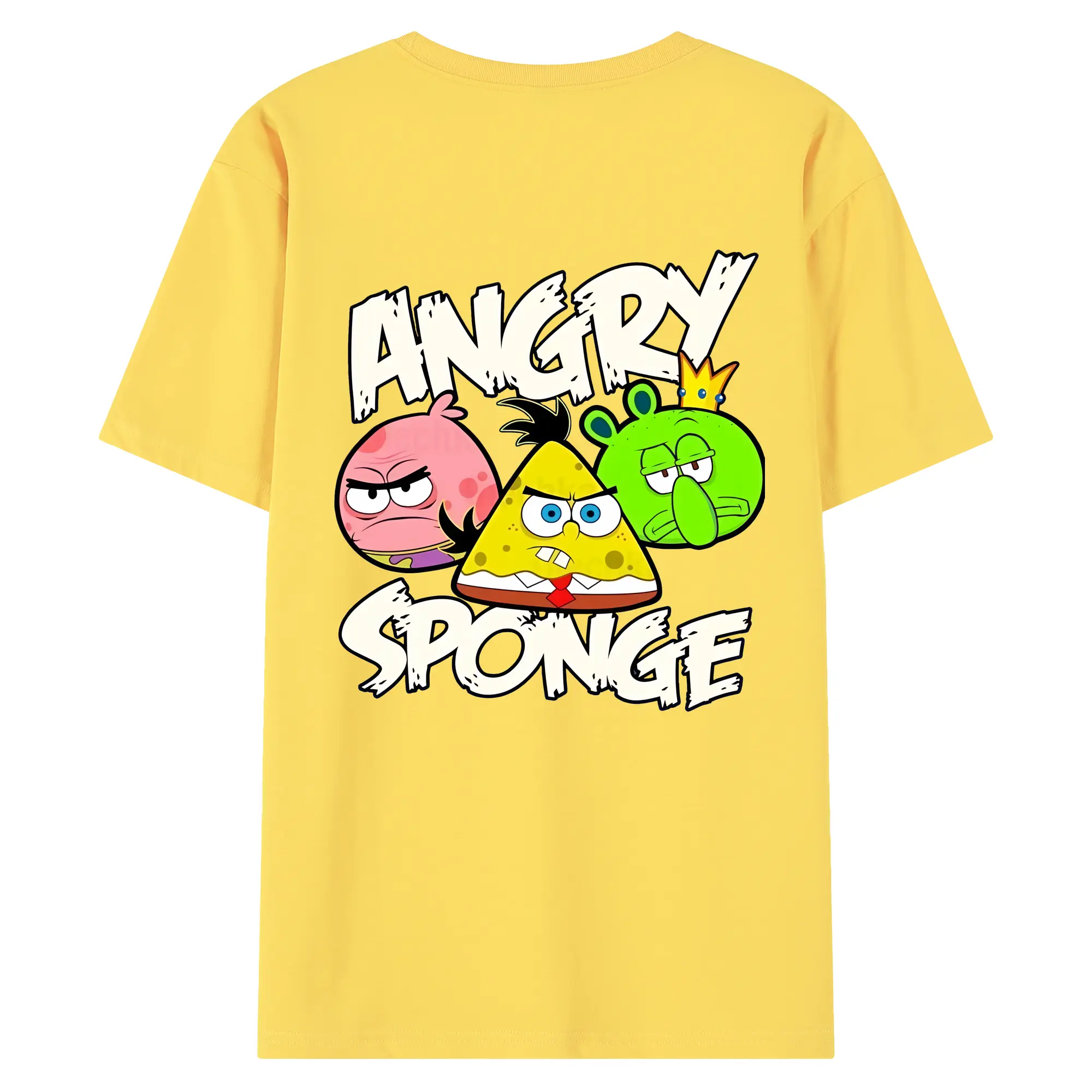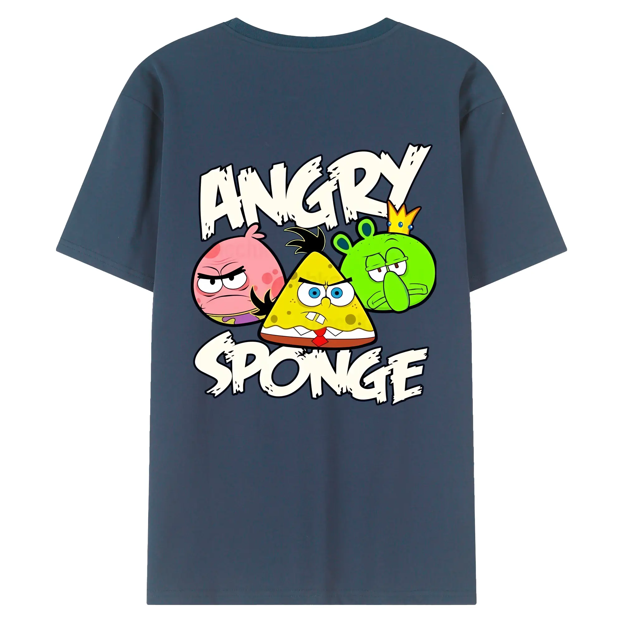 スポンジボブ グッズ スポンジボブ - 綿100% ヴィンテージ風 半袖Tシャツ ・ 背面プリント ・ 柔らか肌触り ・ 通気性 快適 ・ スポーツ カジュアル 外出用