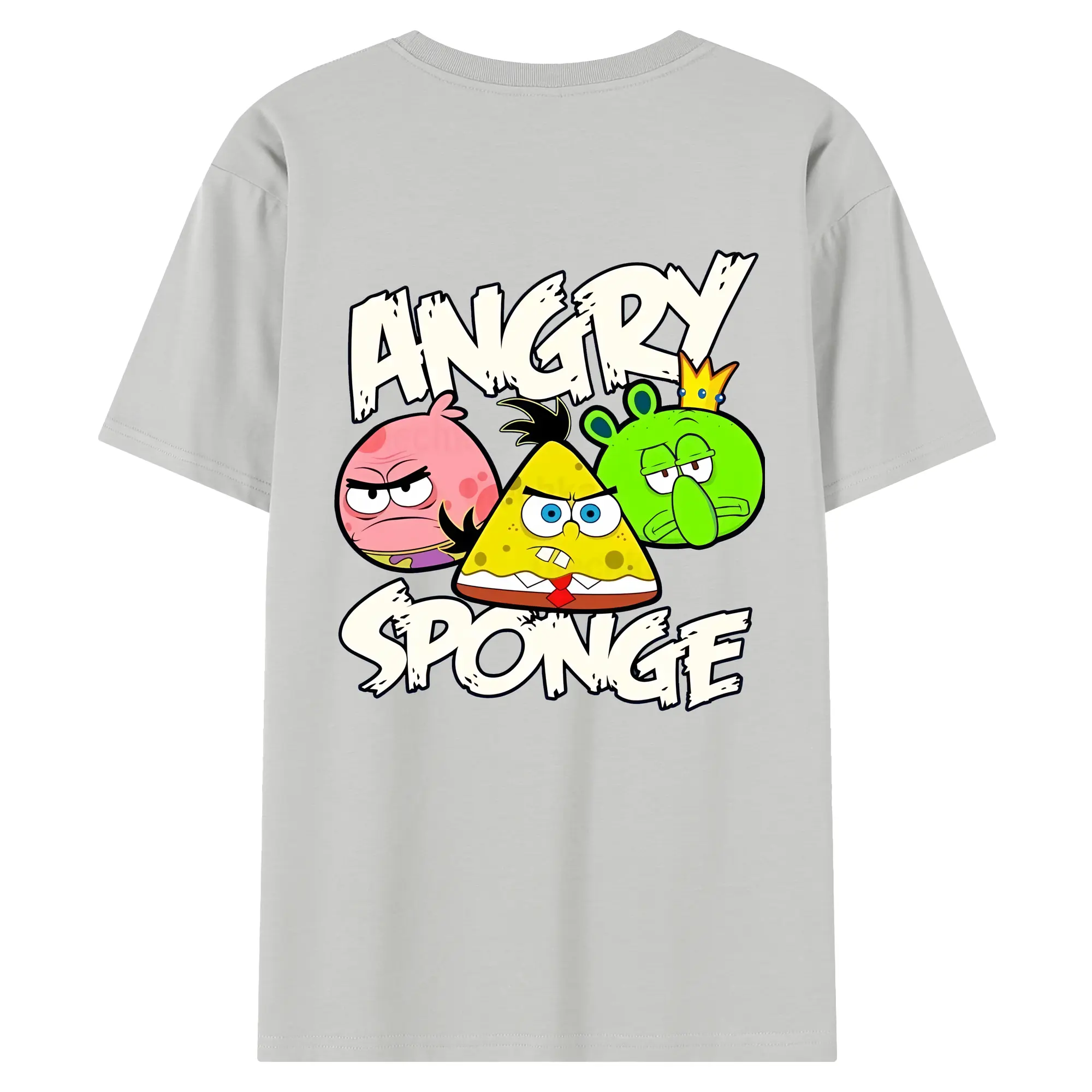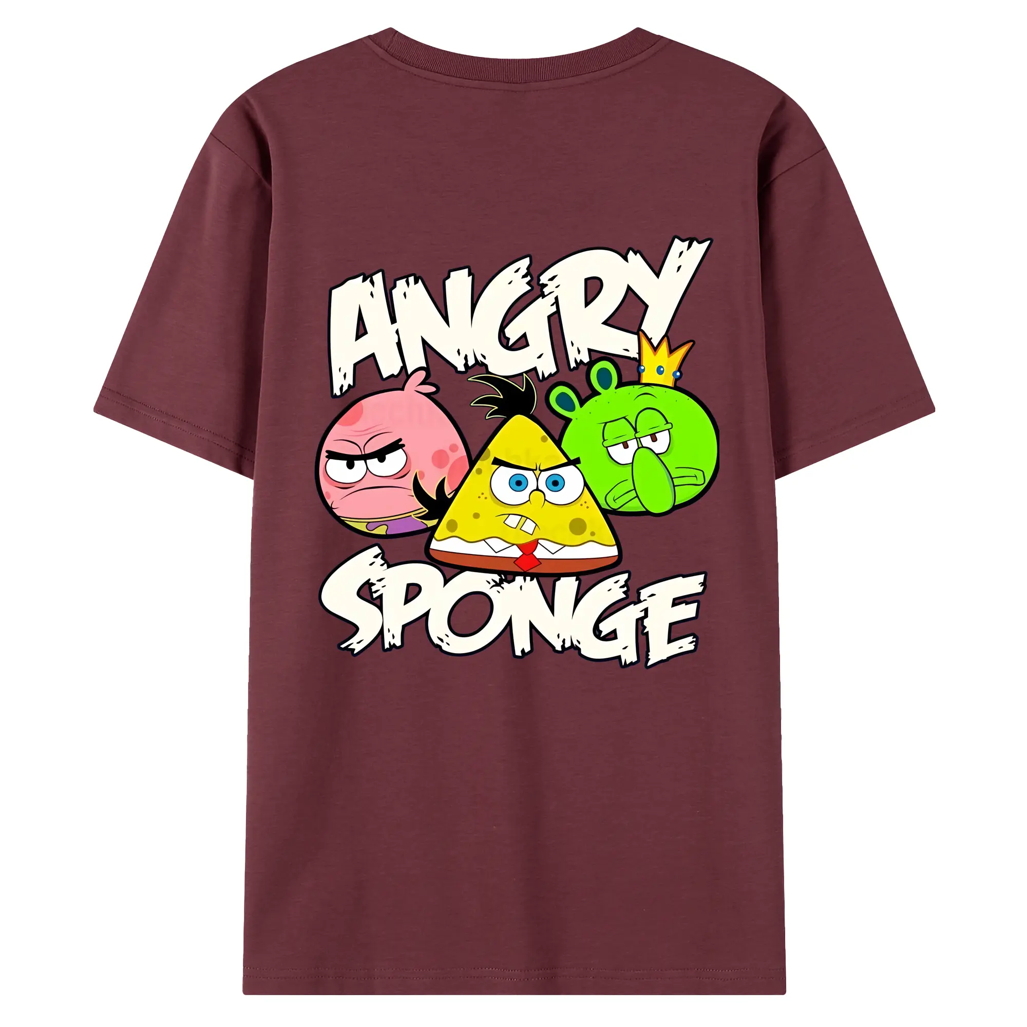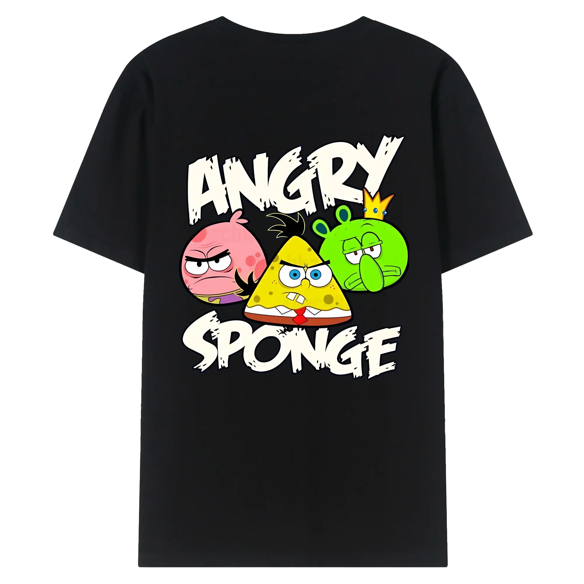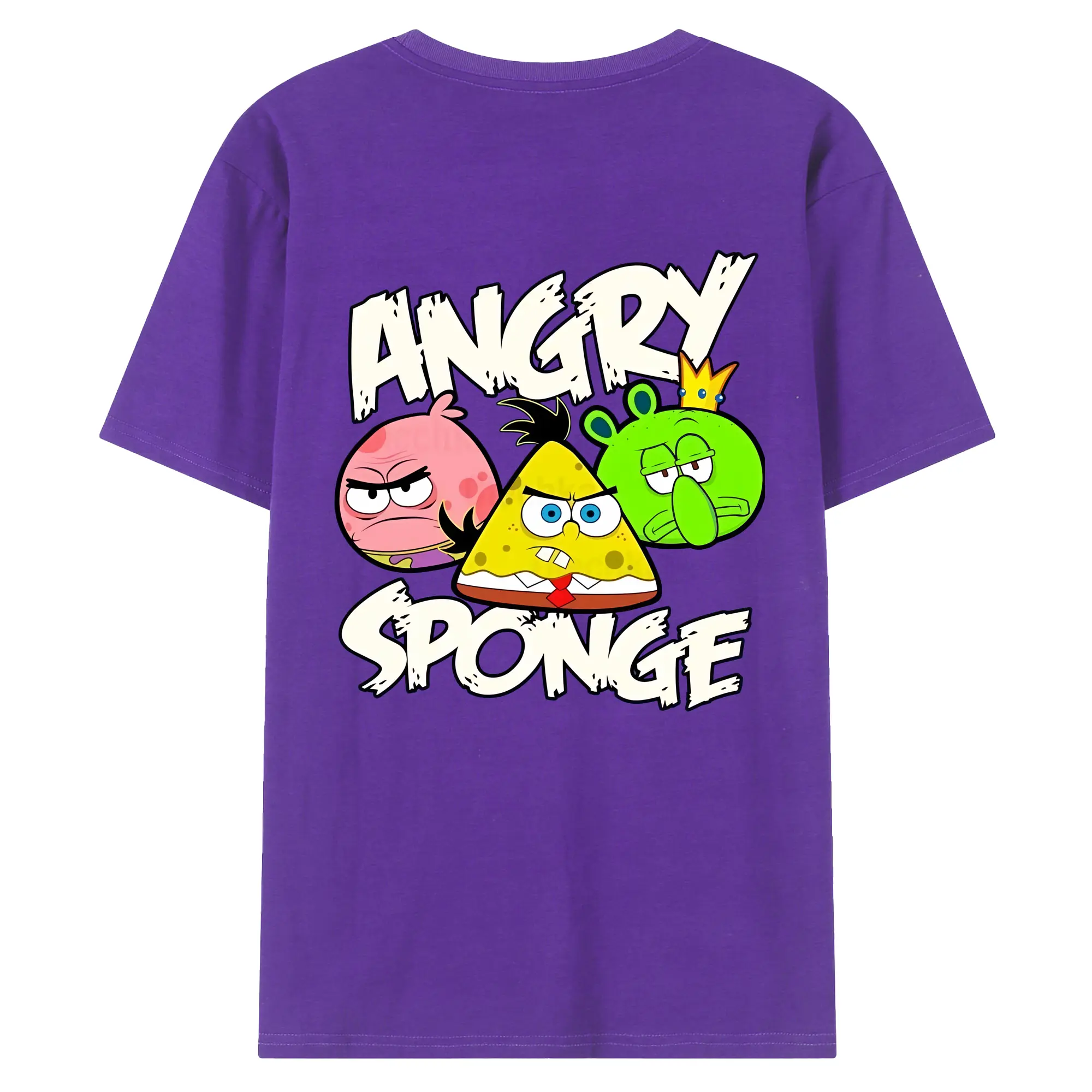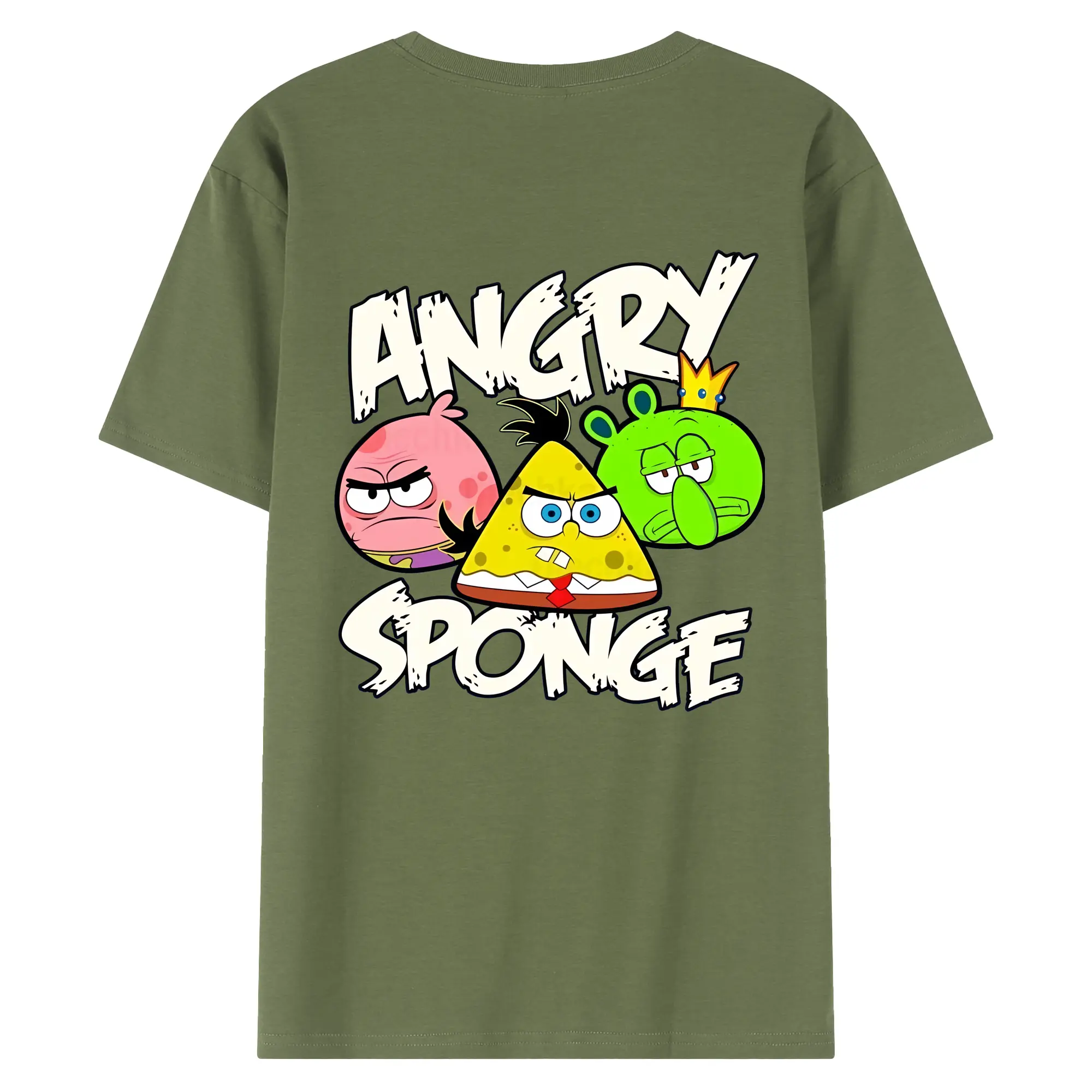 スポンジボブ グッズ スポンジボブ - 綿100% ヴィンテージ風 半袖Tシャツ ・ 背面プリント ・ 柔らか肌触り ・ 通気性 快適 ・ スポーツ カジュアル 外出用