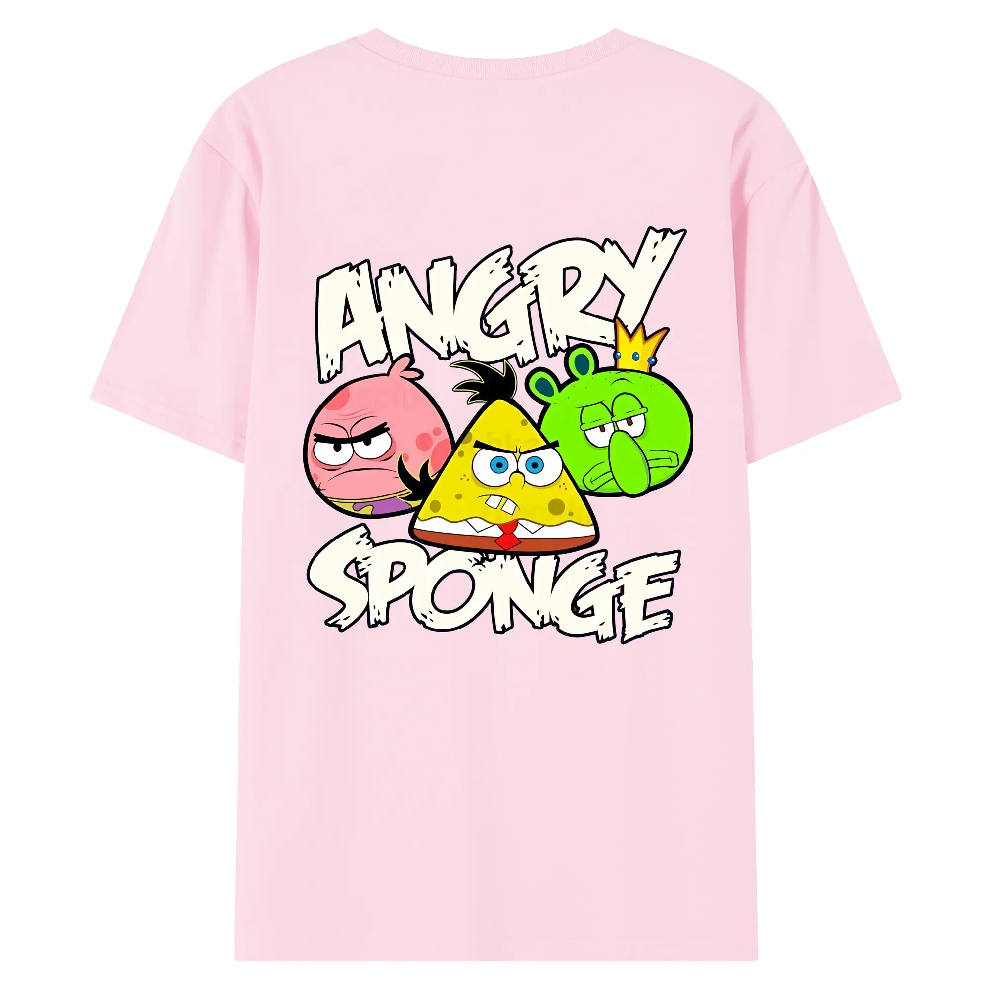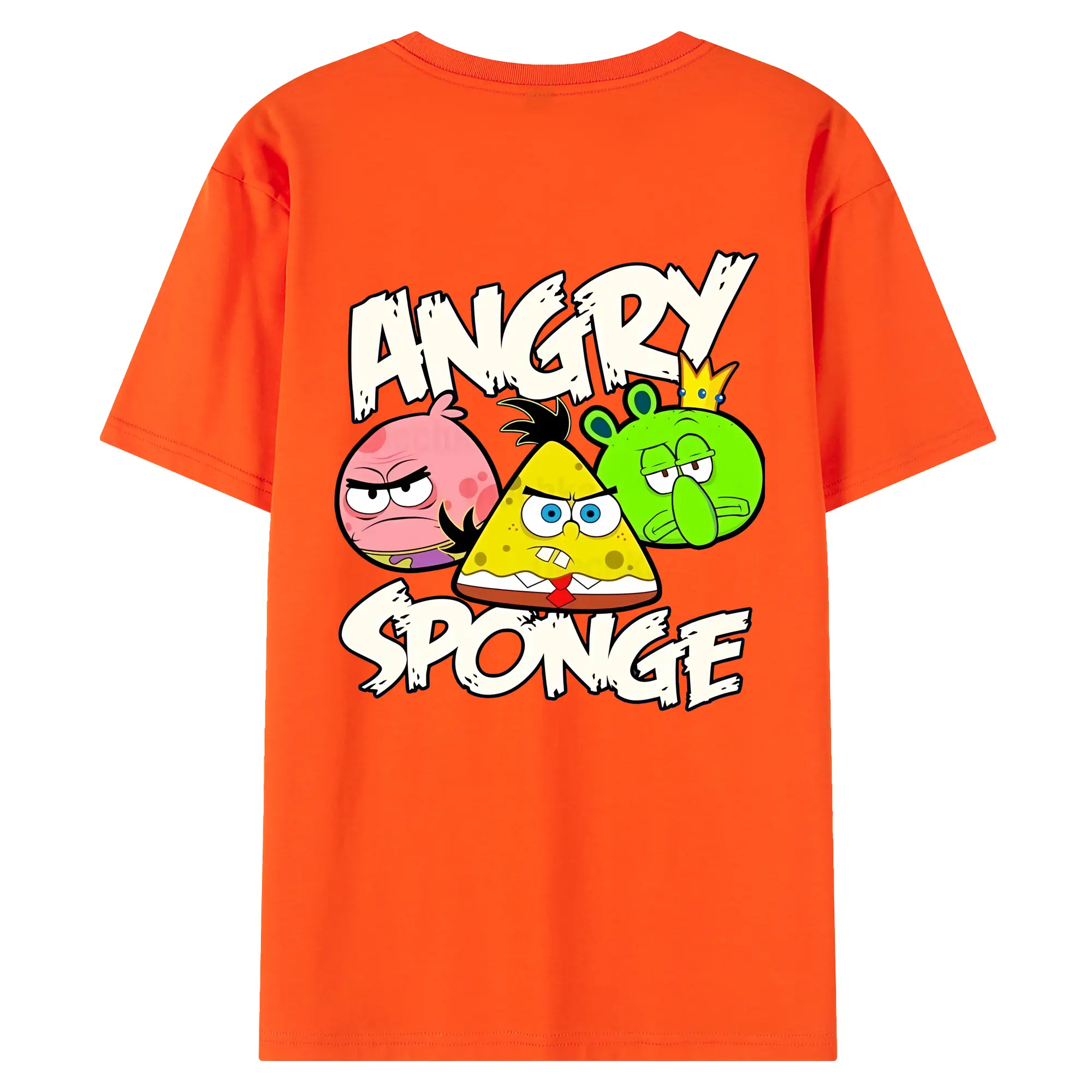 スポンジボブ グッズ スポンジボブ - 綿100% 半袖Tシャツ ・ フロントプリント ・ 快適 通気性 ・ 日常使い 散歩 スポーツ用