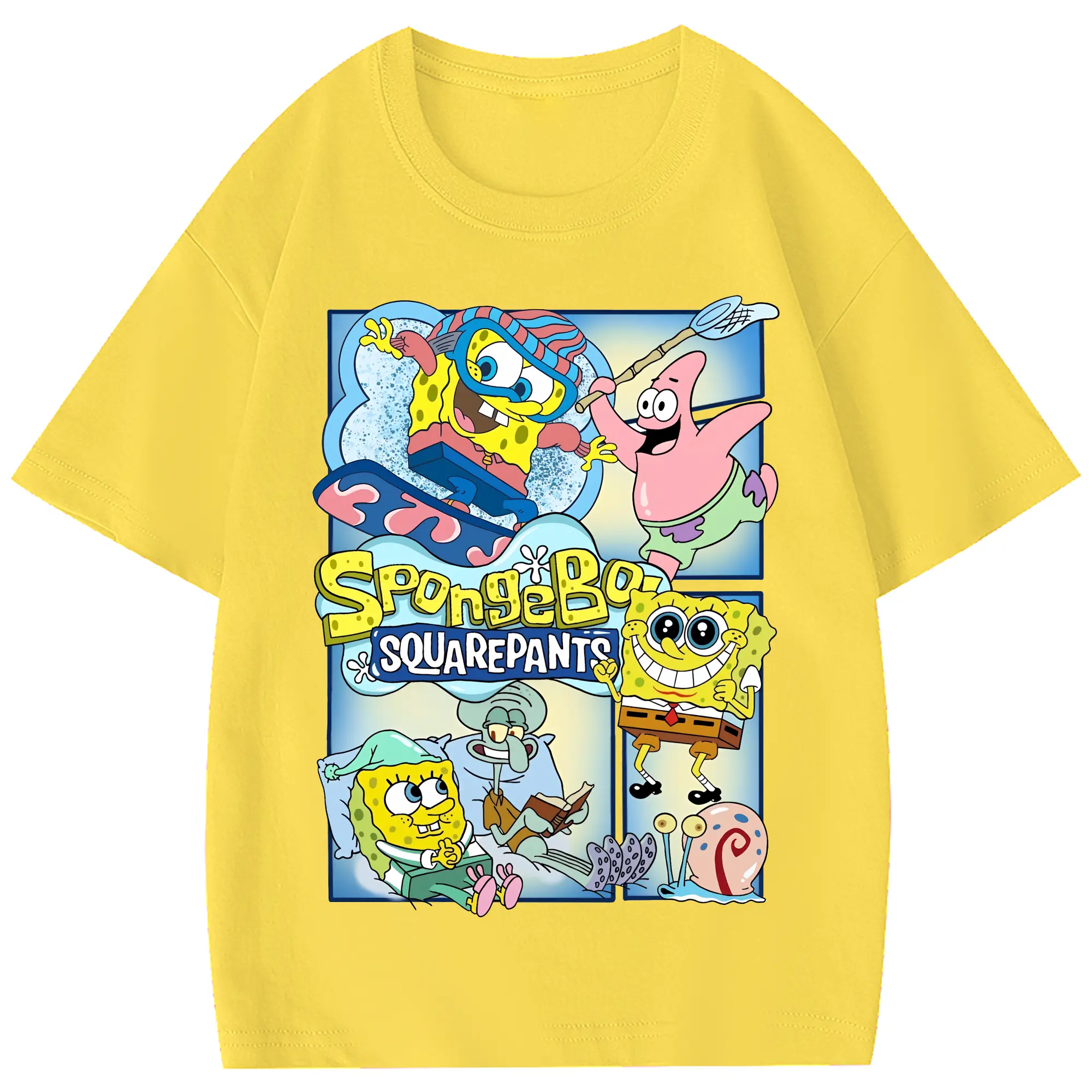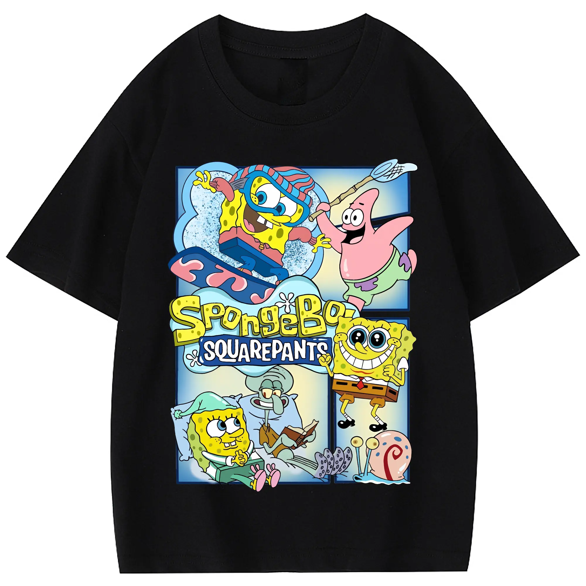 スポンジボブ グッズ スポンジボブ - 綿100% 半袖Tシャツ ・ フロントプリント ・ 快適 通気性 ・ 日常使い 散歩 スポーツ用