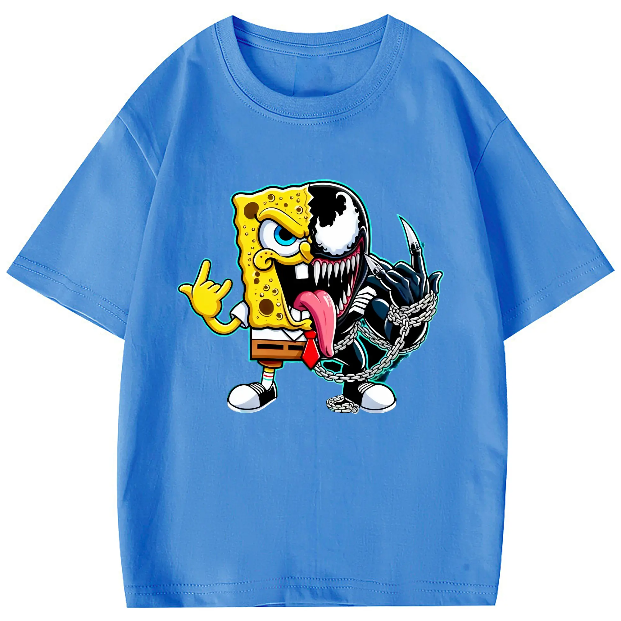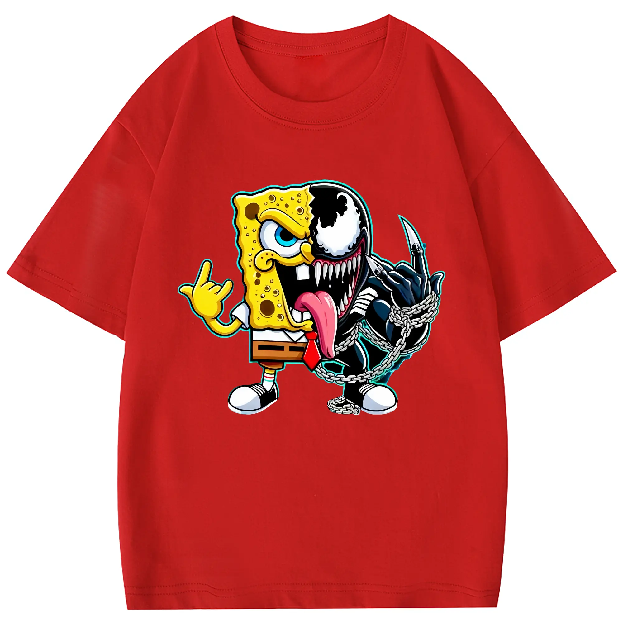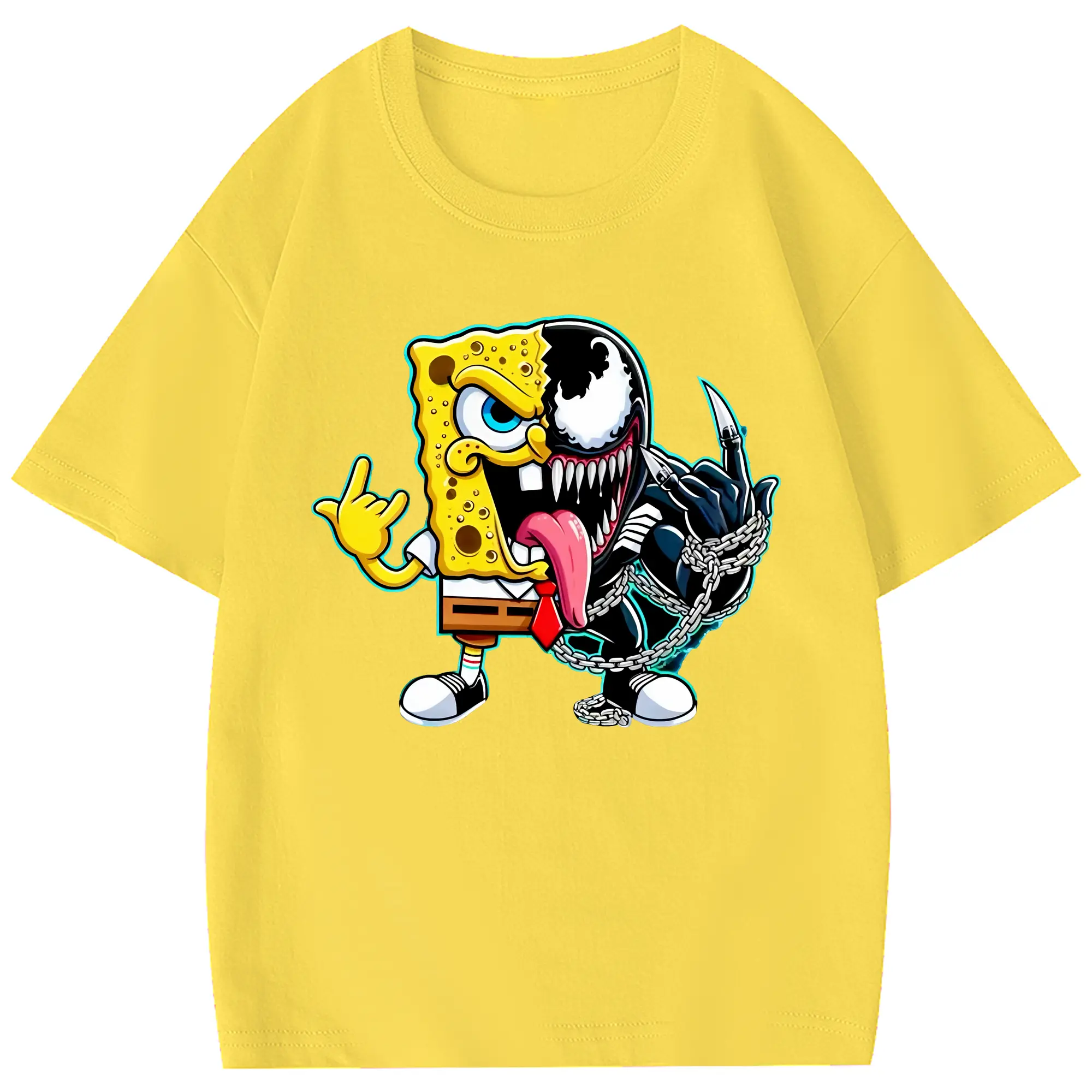 スポンジボブ グッズ スポンジボブ - 綿100% 半袖Tシャツ ・ フロントプリント ・ 快適 通気性 ・ 日常使い 散歩 スポーツ用