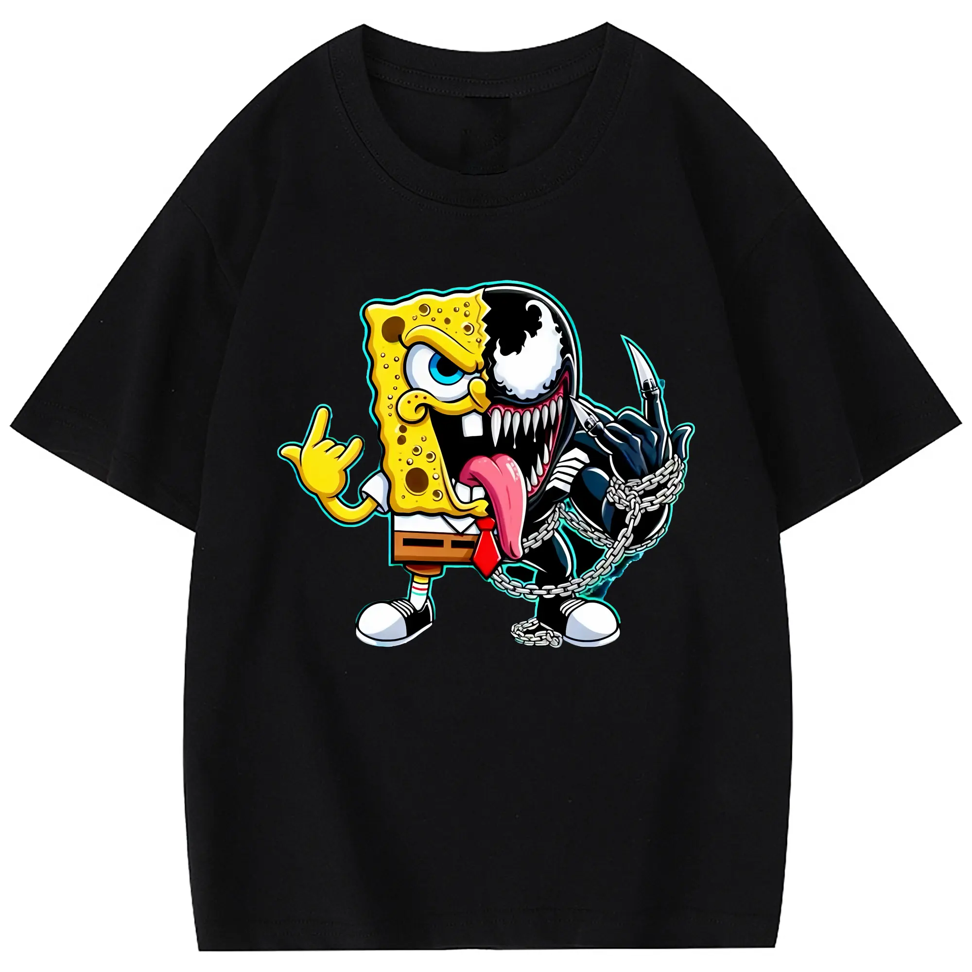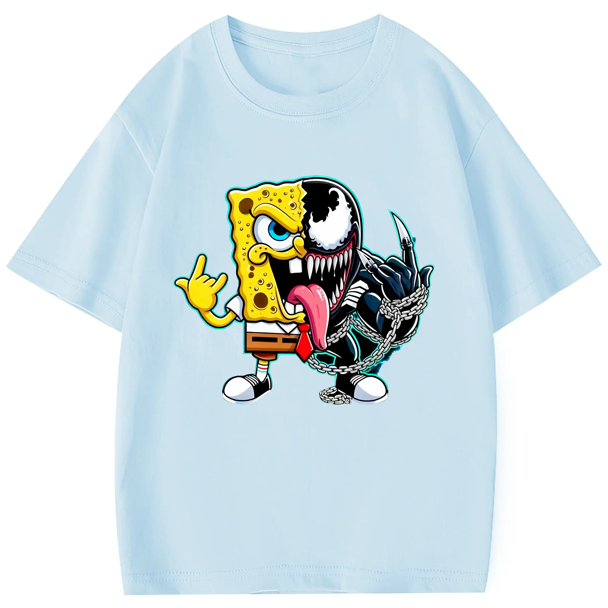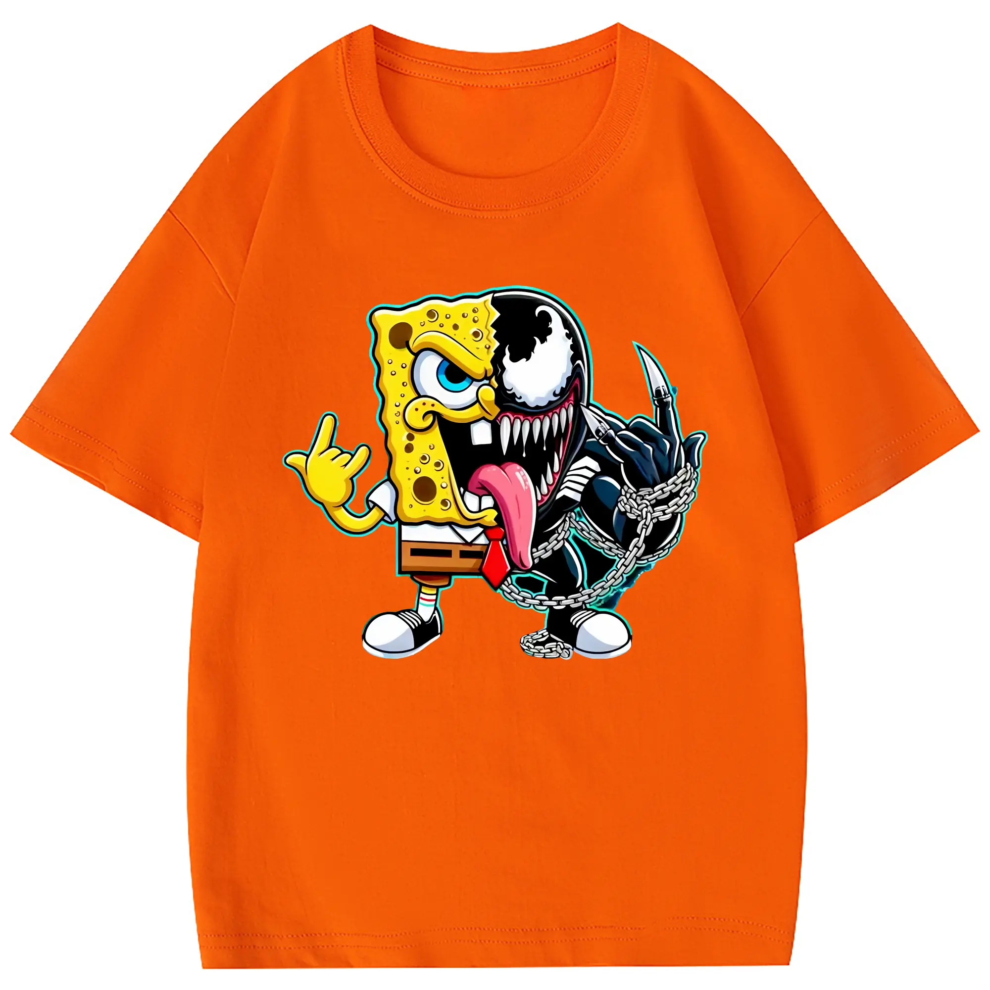 スポンジボブ グッズ スポンジボブ - 綿100% 半袖Tシャツ ・ フロントプリント ・ 快適 通気性 ・ 日常使い 散歩 スポーツ用