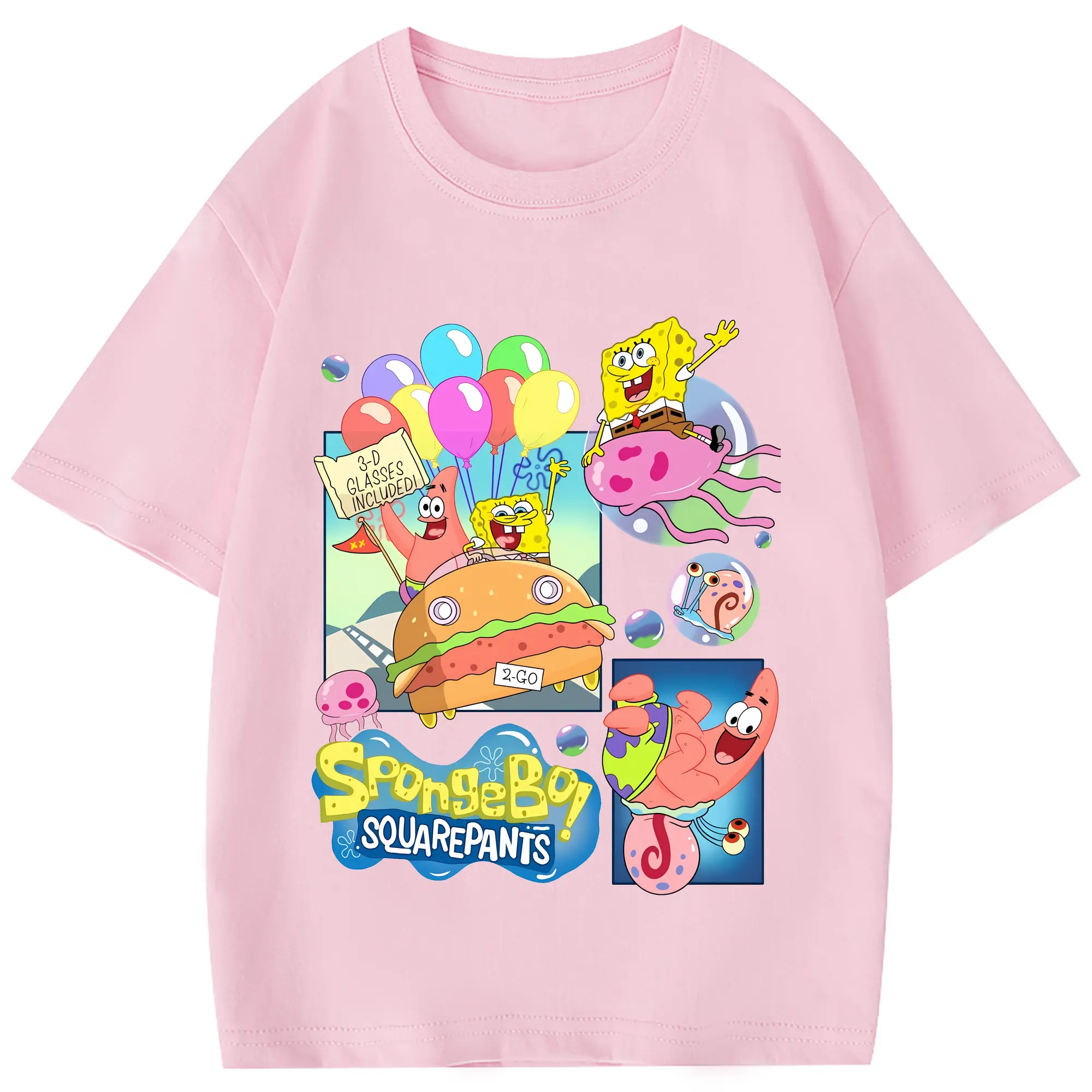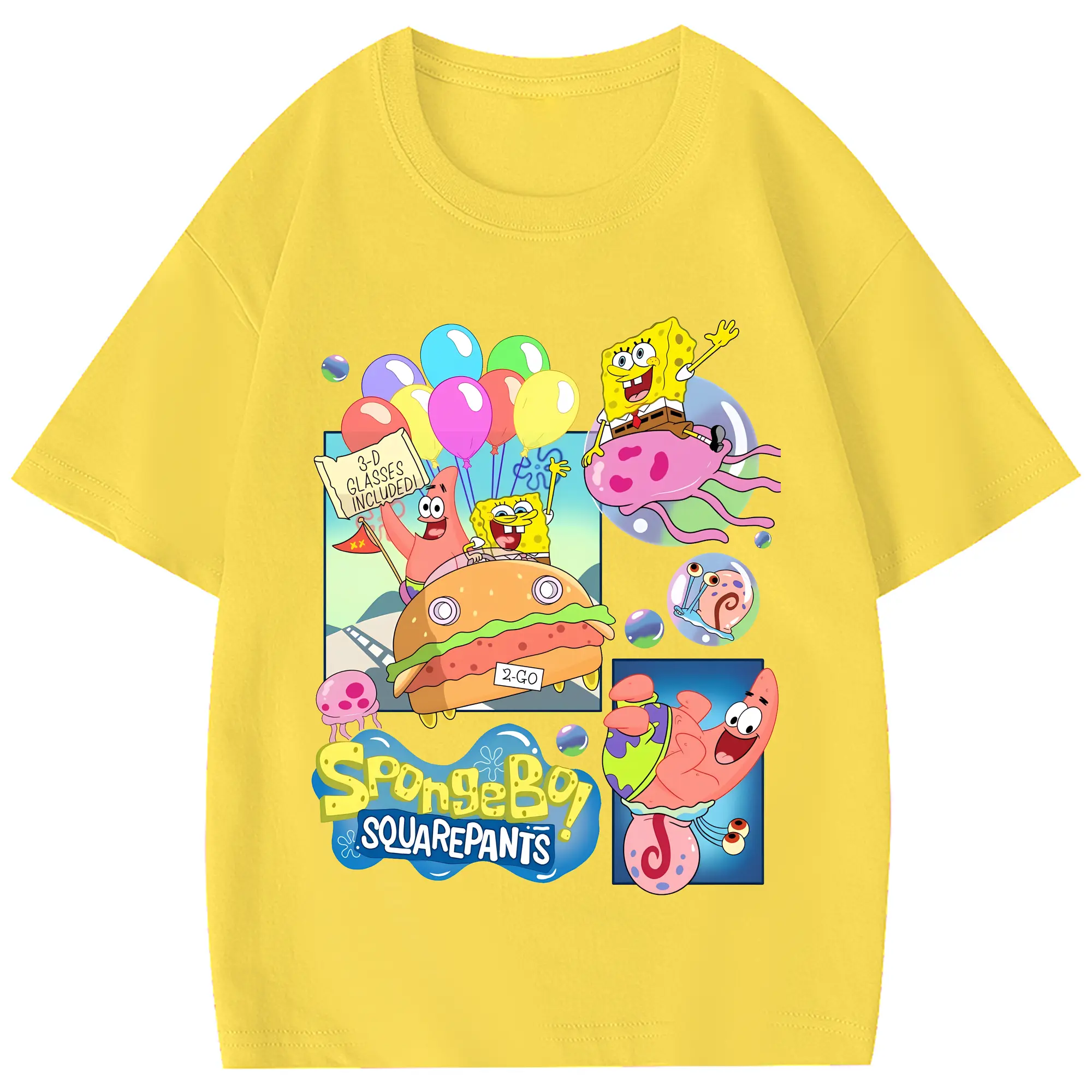 スポンジボブ グッズ スポンジボブ - 綿100% 半袖Tシャツ ・ フロントプリント ・ 快適 通気性 ・ 日常使い 散歩 スポーツ用
