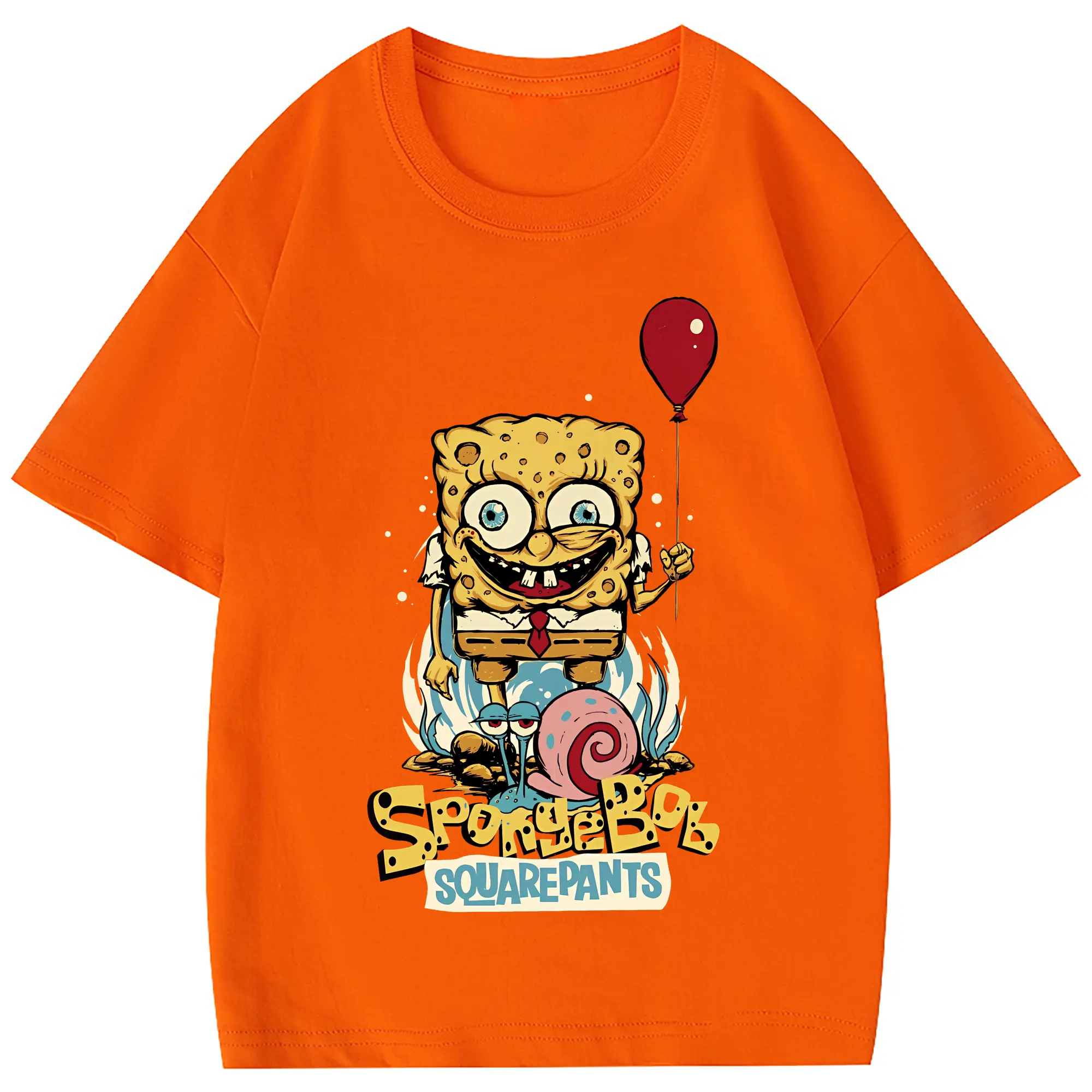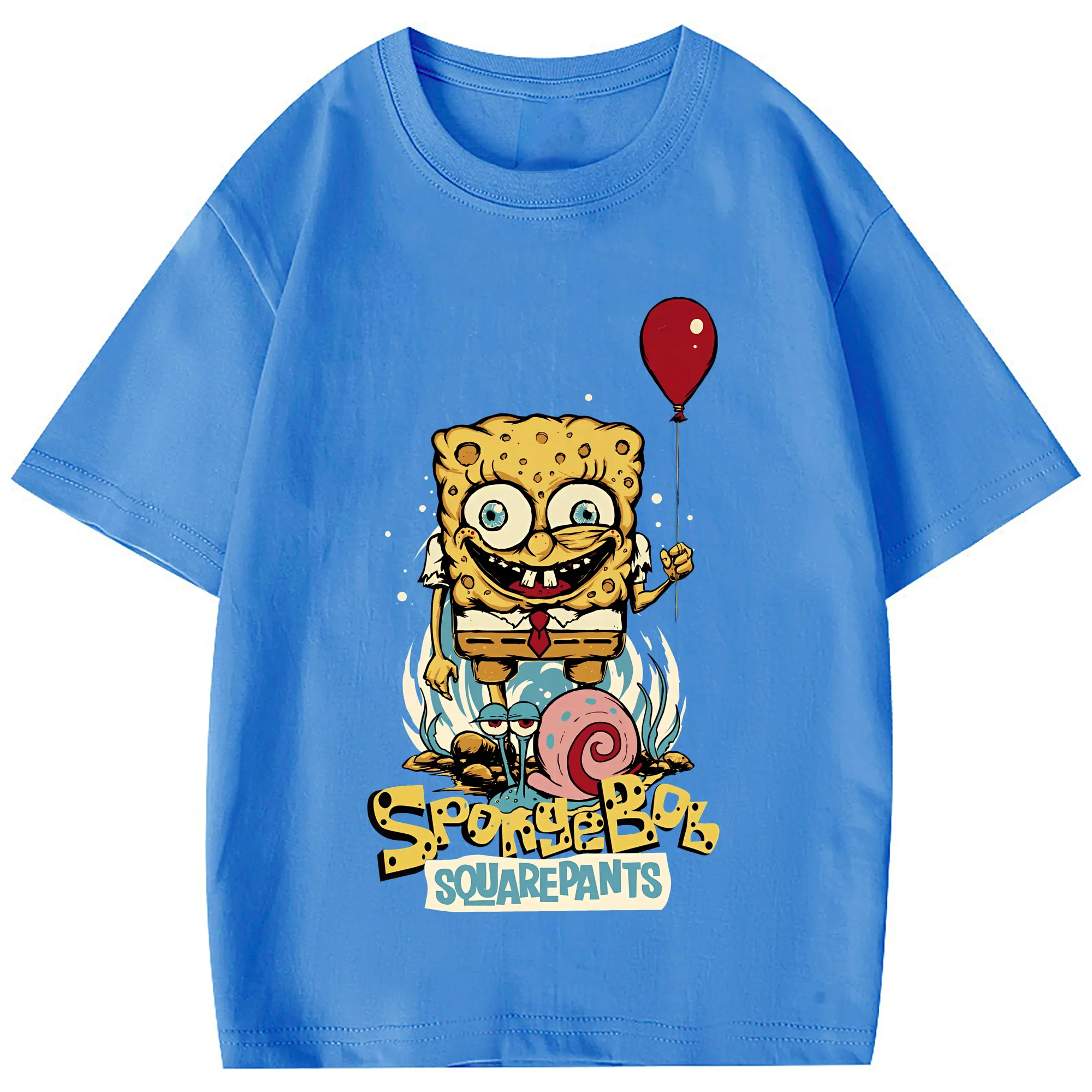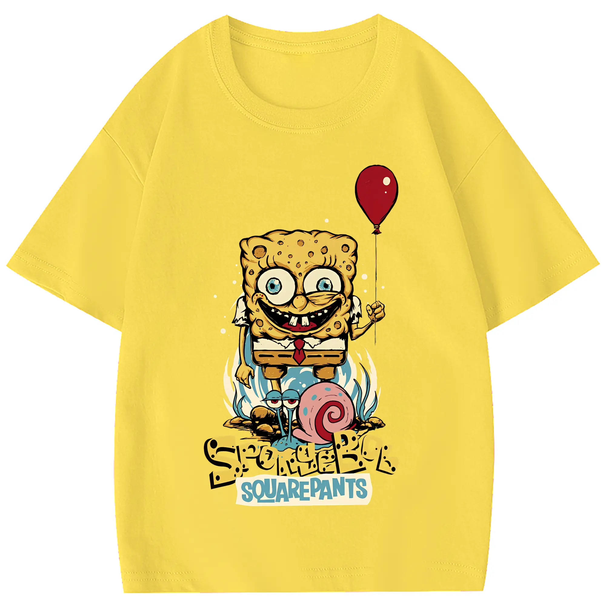 スポンジボブ グッズ スポンジボブ - 綿100% 半袖Tシャツ ・ フロントプリント ・ 快適 通気性 ・ 日常使い 散歩 スポーツ用