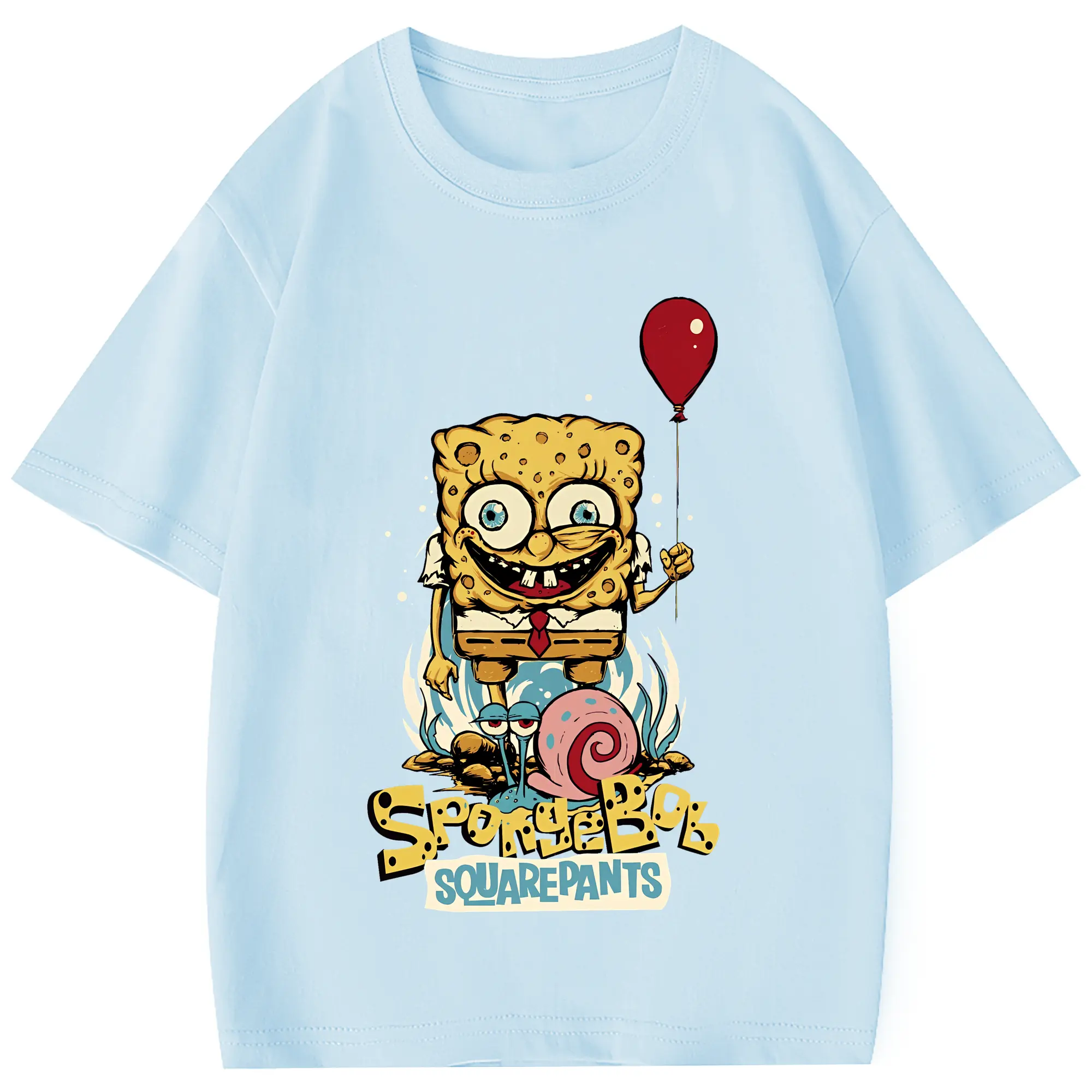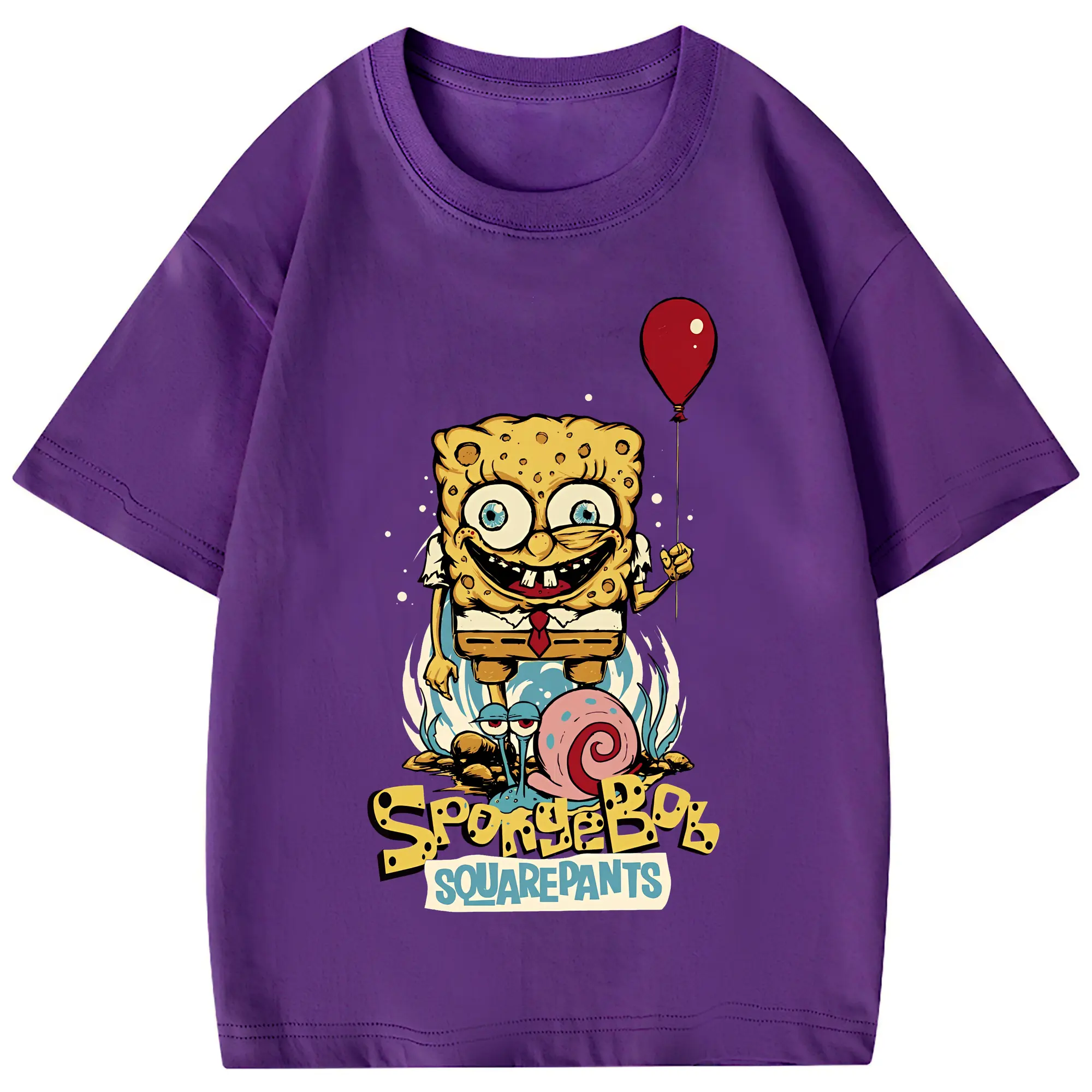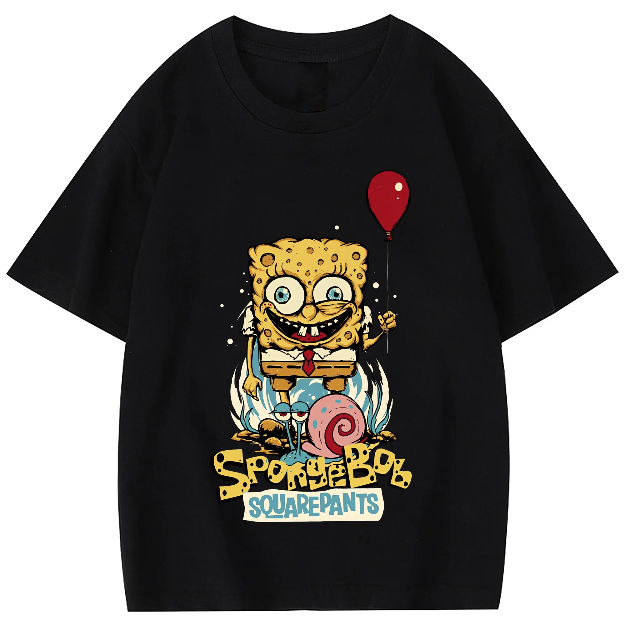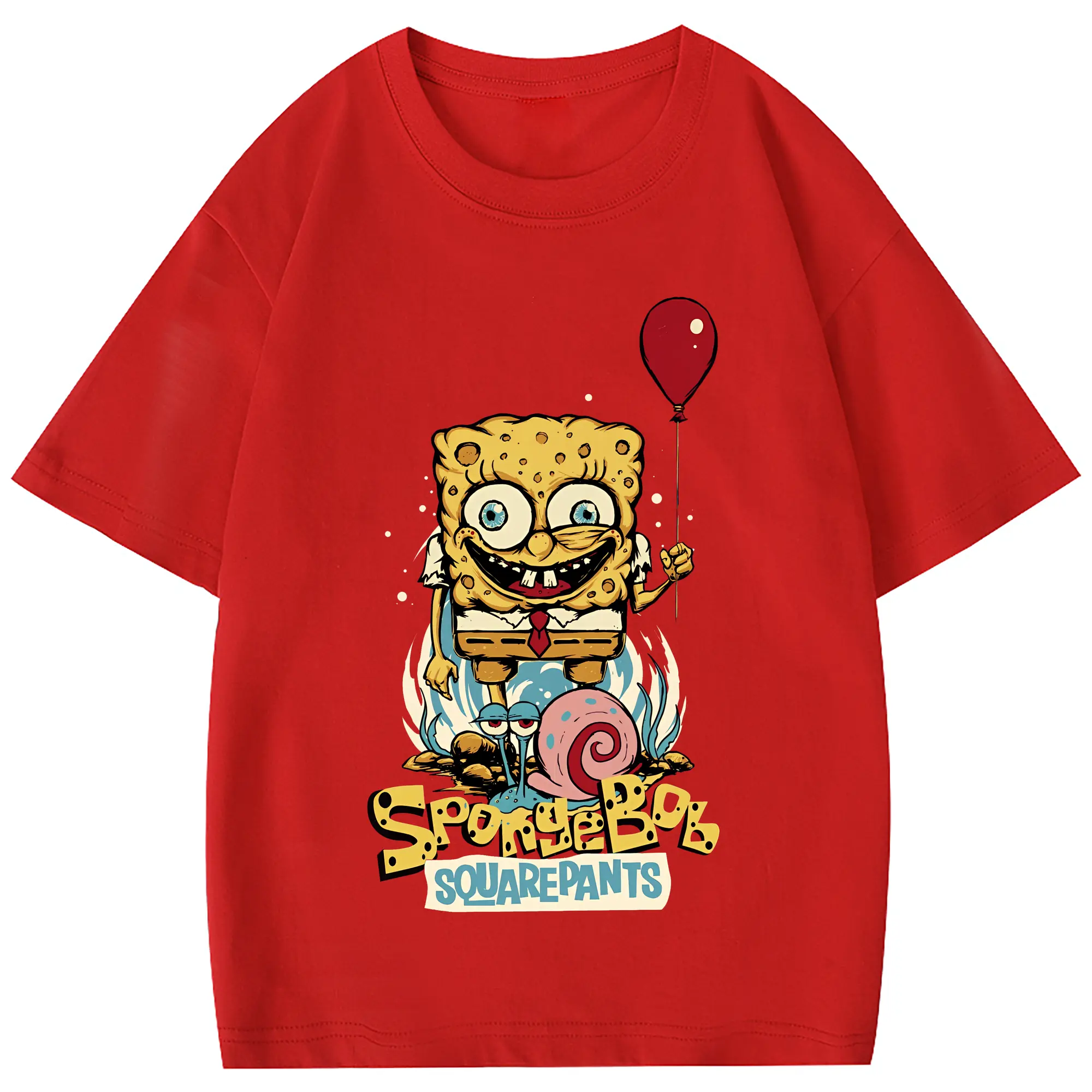 スポンジボブ グッズ スポンジボブ - 綿100% 半袖Tシャツ ・ フロントプリント ・ 快適 通気性 ・ 日常使い 散歩 スポーツ用