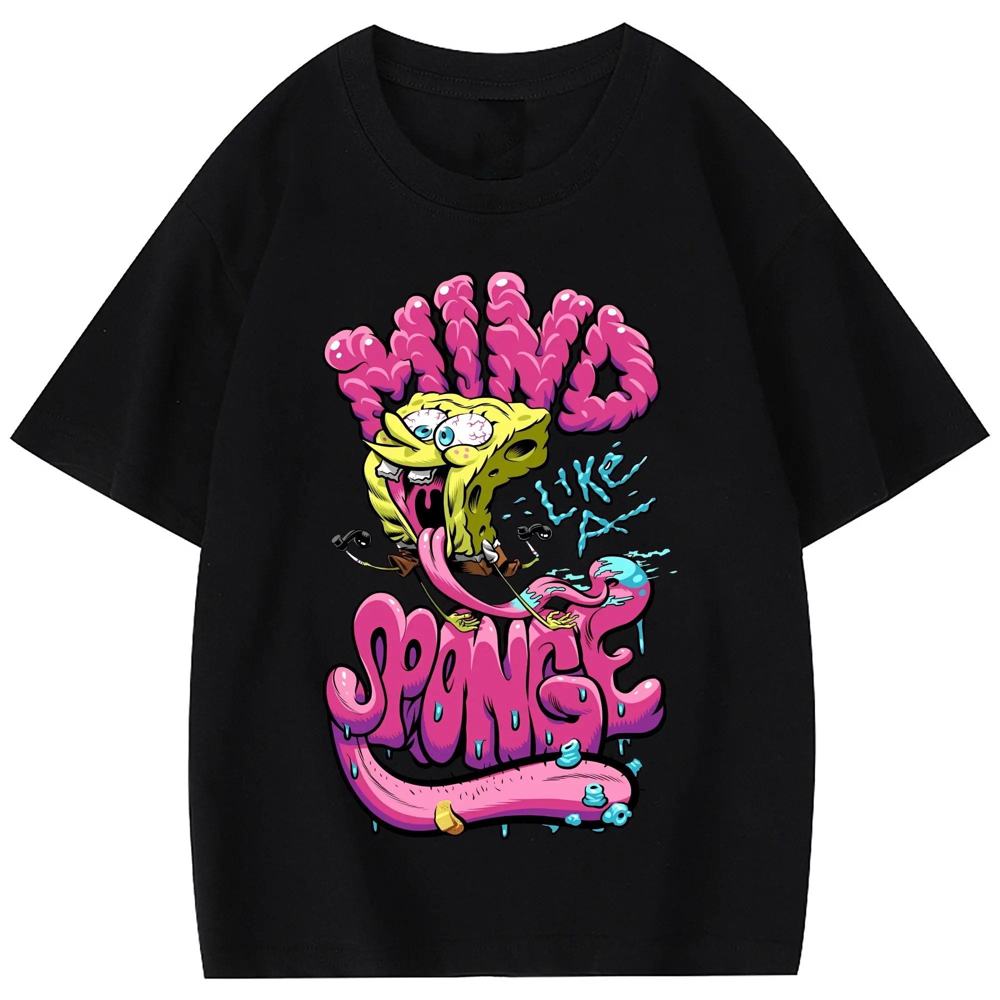 スポンジボブ グッズ スポンジボブ - 綿100% ヴィンテージ風 半袖Tシャツ ・ 背面プリント ・ 柔らか肌触り ・ 通気性 快適 ・ スポーツ カジュアル 外出用