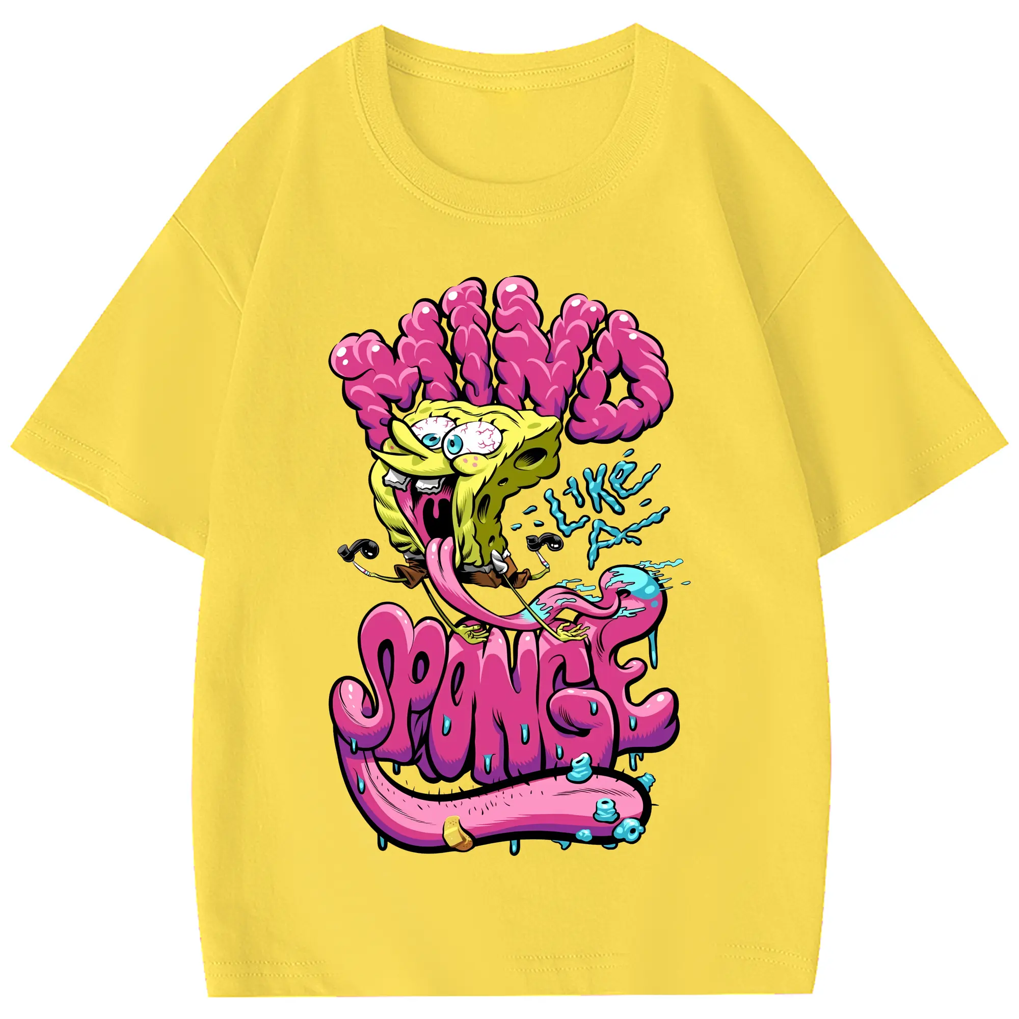 スポンジボブ グッズ スポンジボブ - 綿100% 半袖Tシャツ ・ フロントプリント ・ 快適 通気性 ・ 日常使い 散歩 スポーツ用