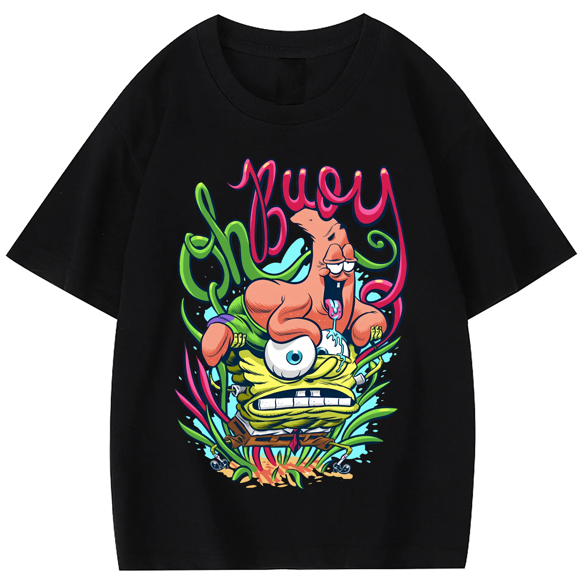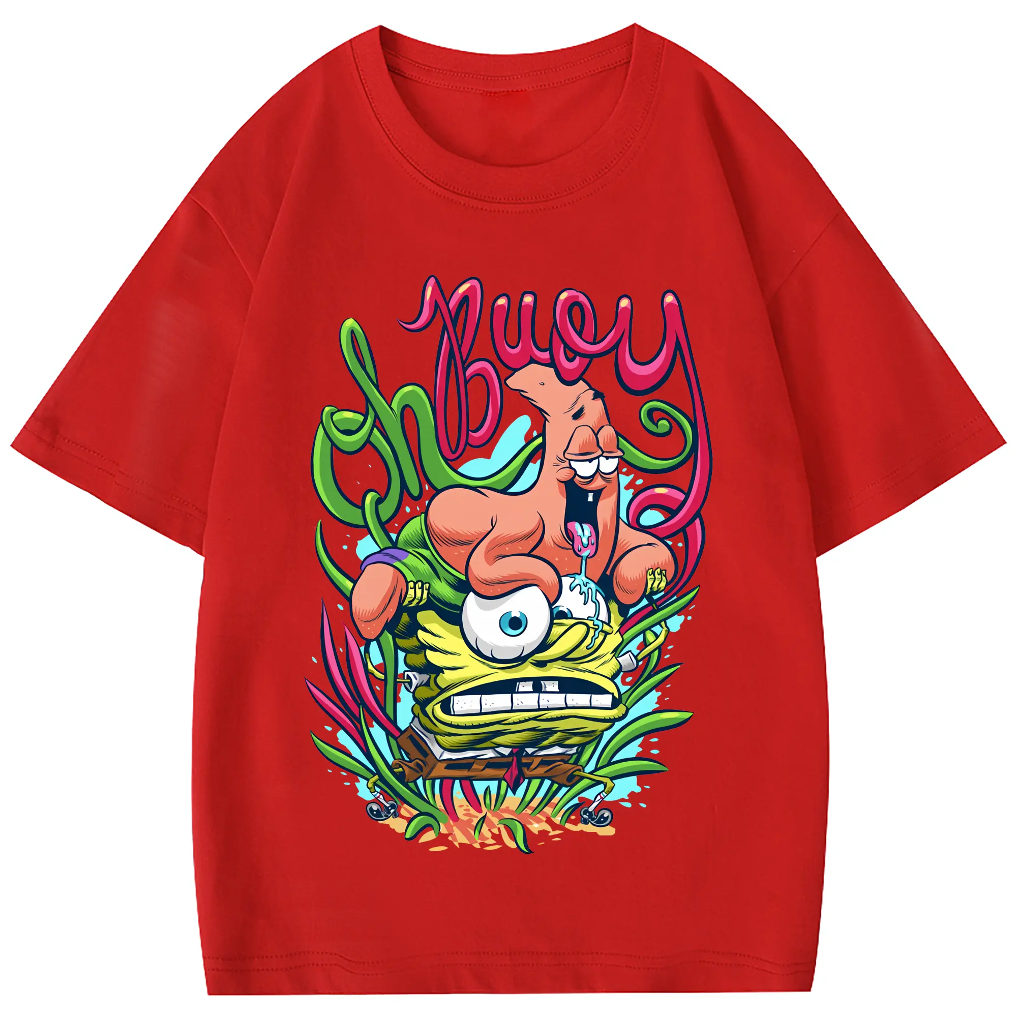 スポンジボブ グッズ スポンジボブ - 綿100% 半袖Tシャツ ・ バックプリント ・ 快適 通気性 ・ 日常使い 散歩 スポーツ用