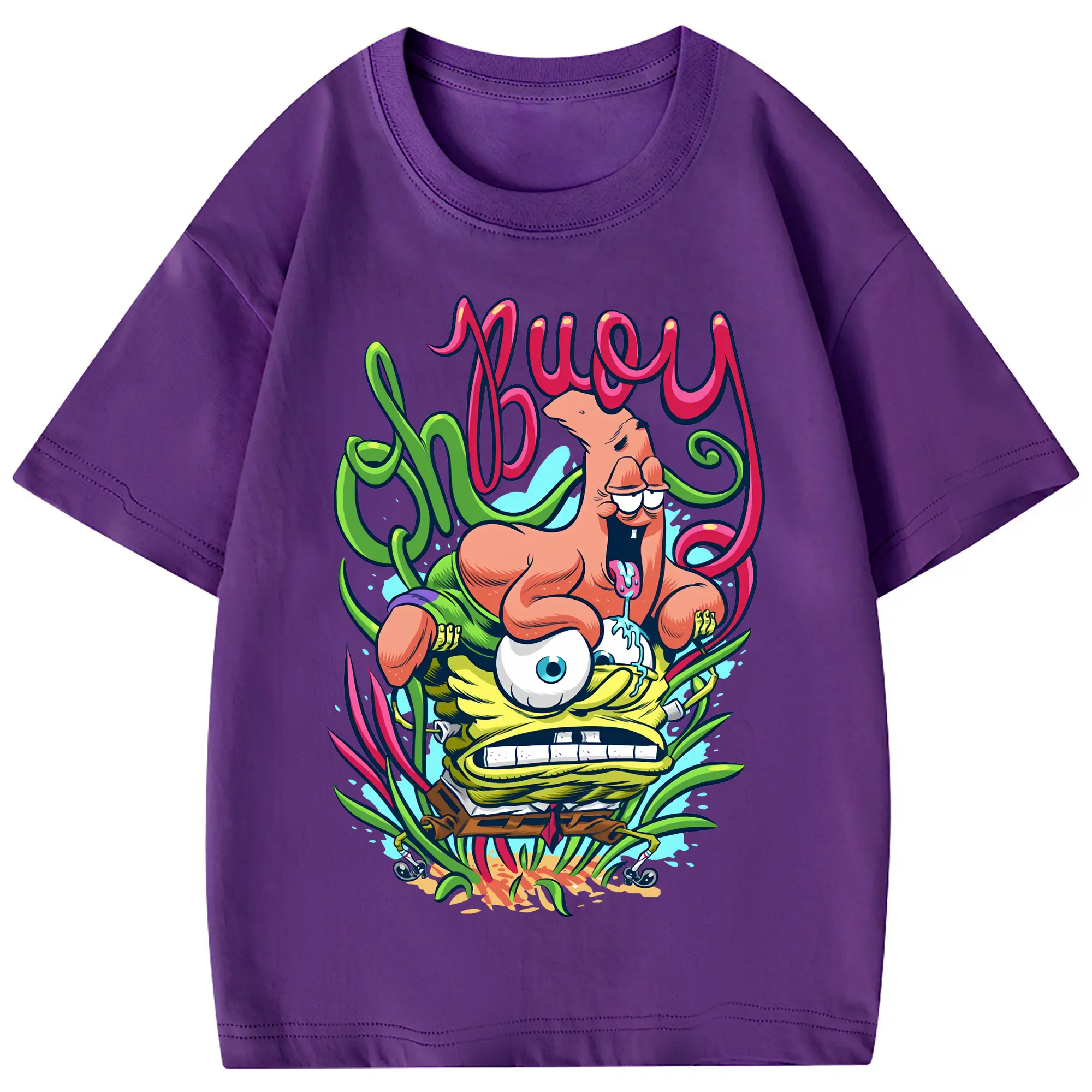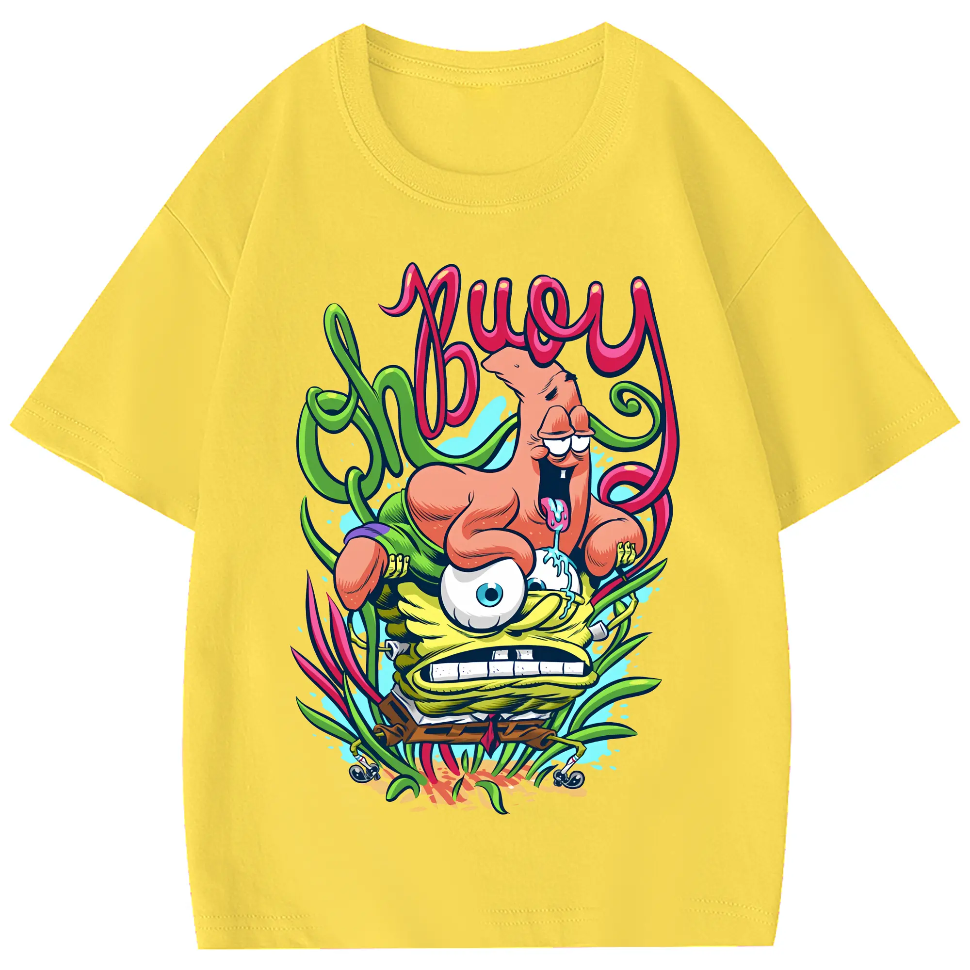 スポンジボブ グッズ スポンジボブ - 綿100% キッズTシャツ ・ フロントプリント ・ 快適 通気性 ・ スポーツ カジュアル 散歩用