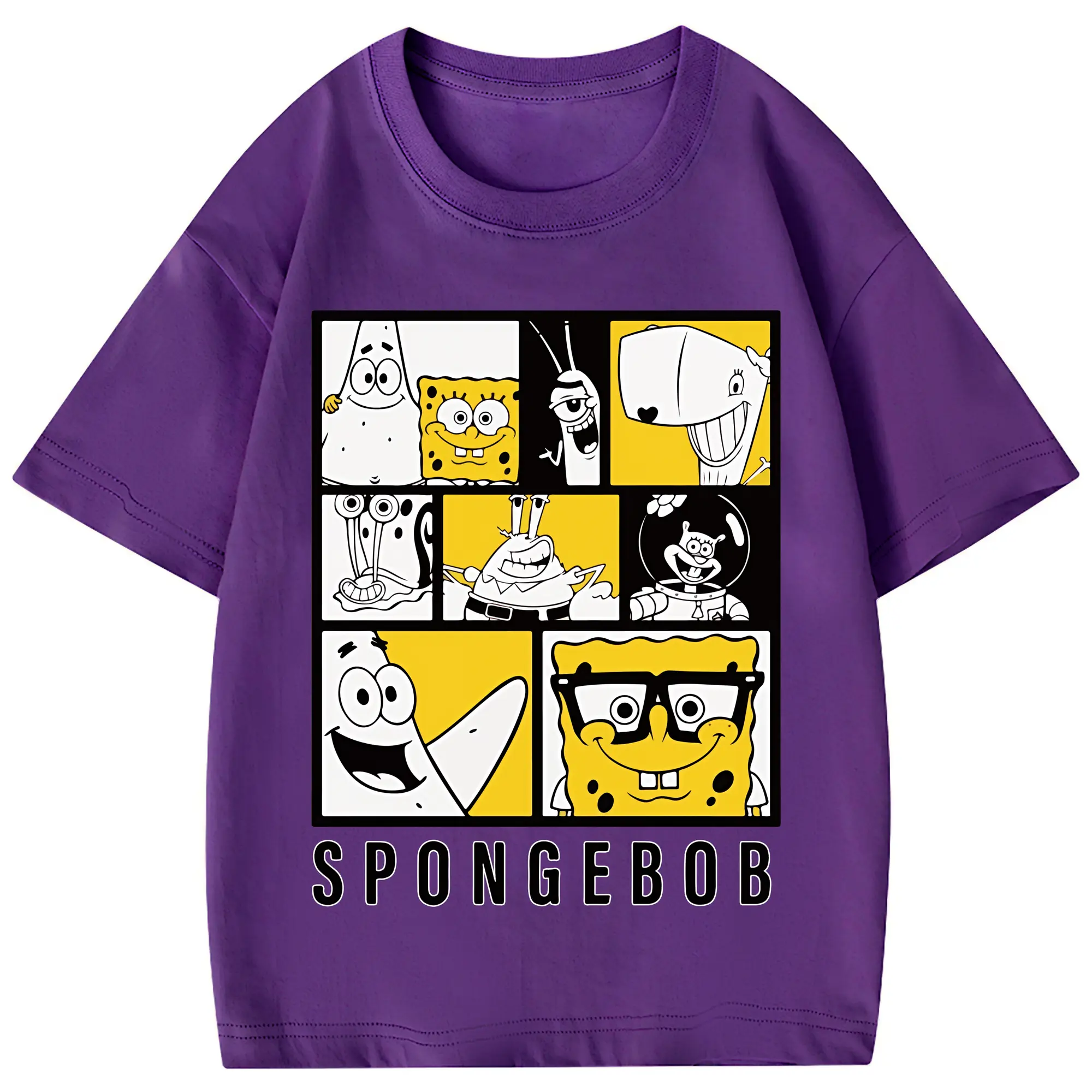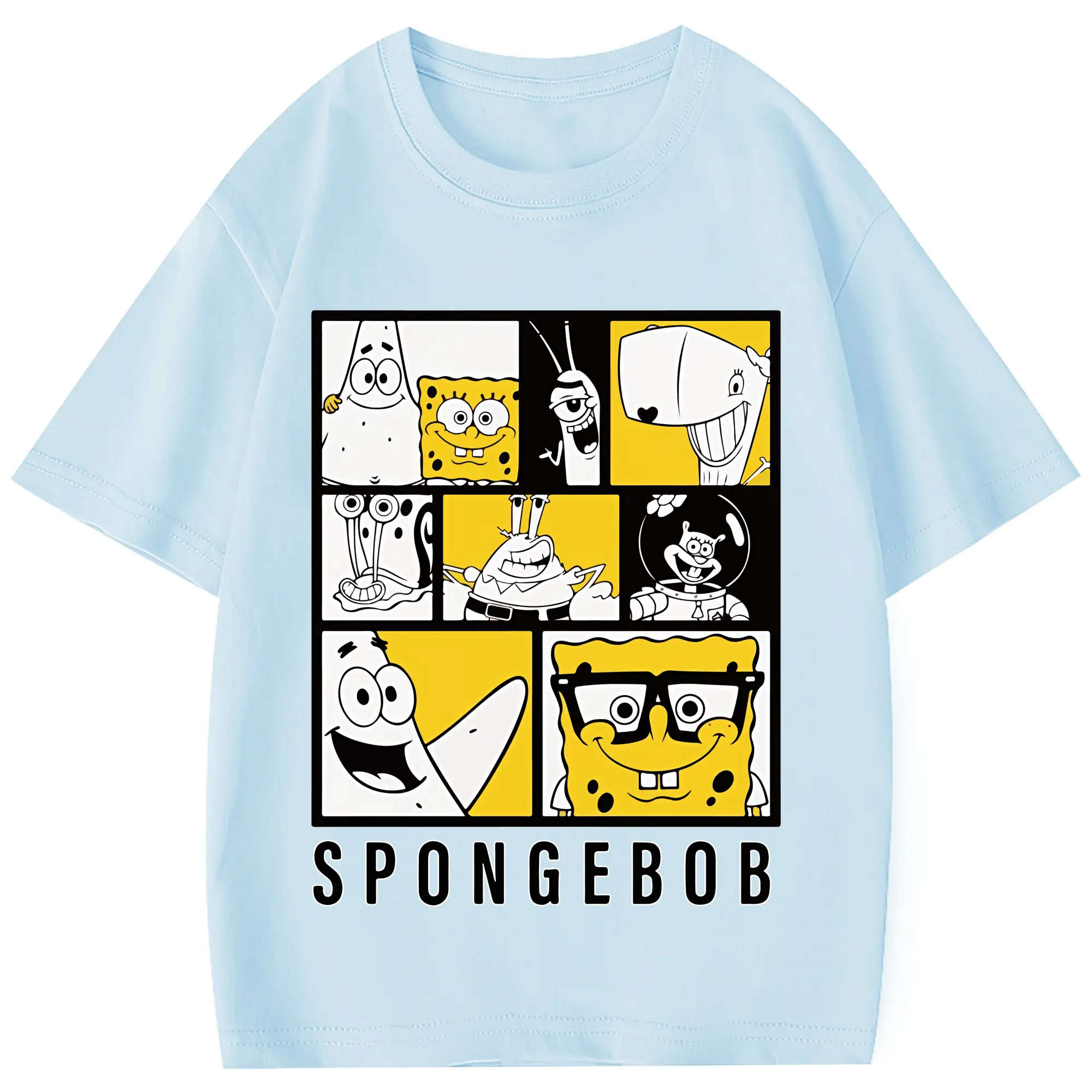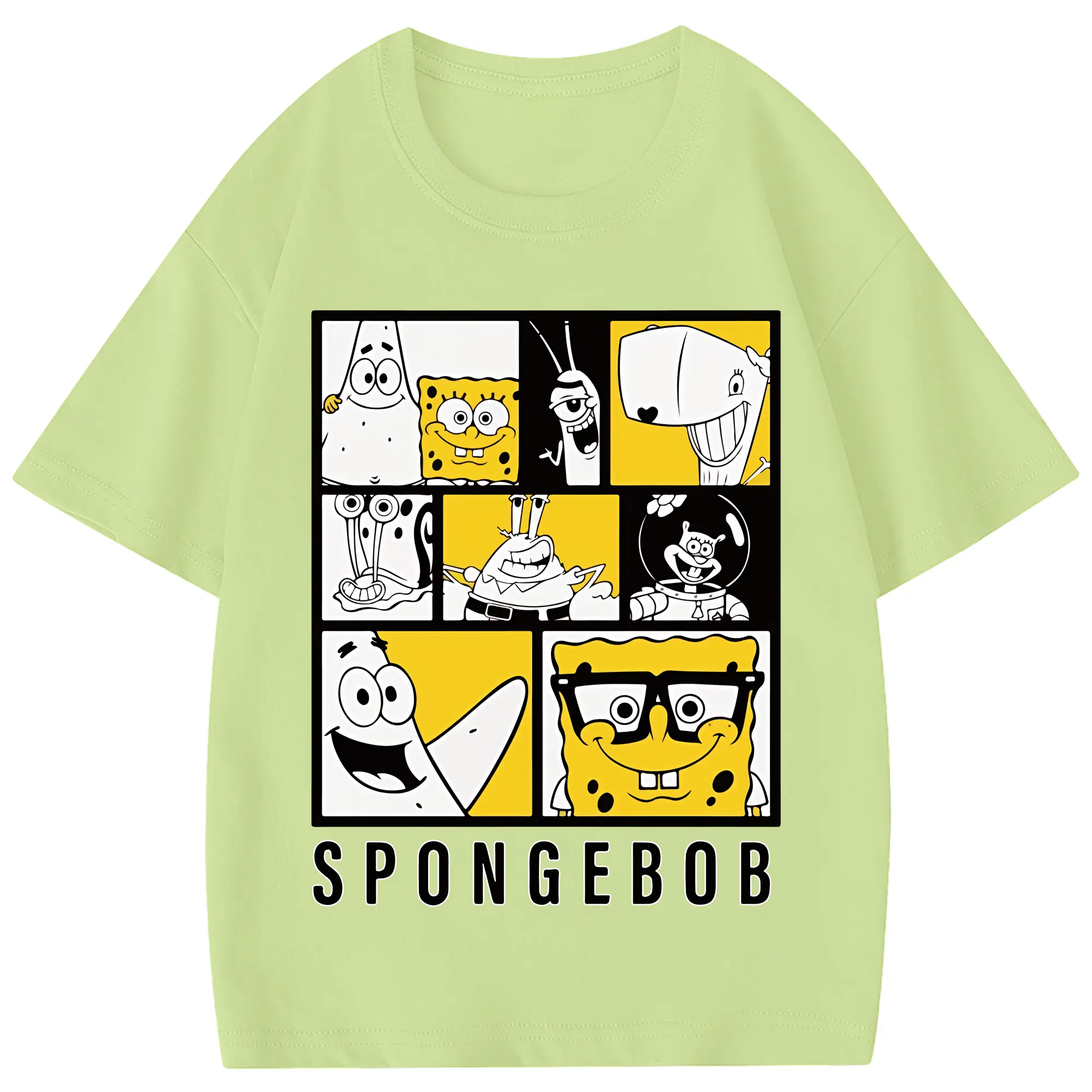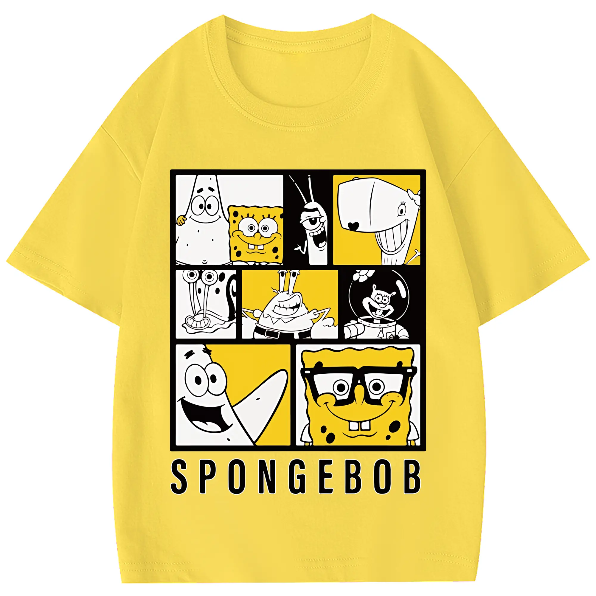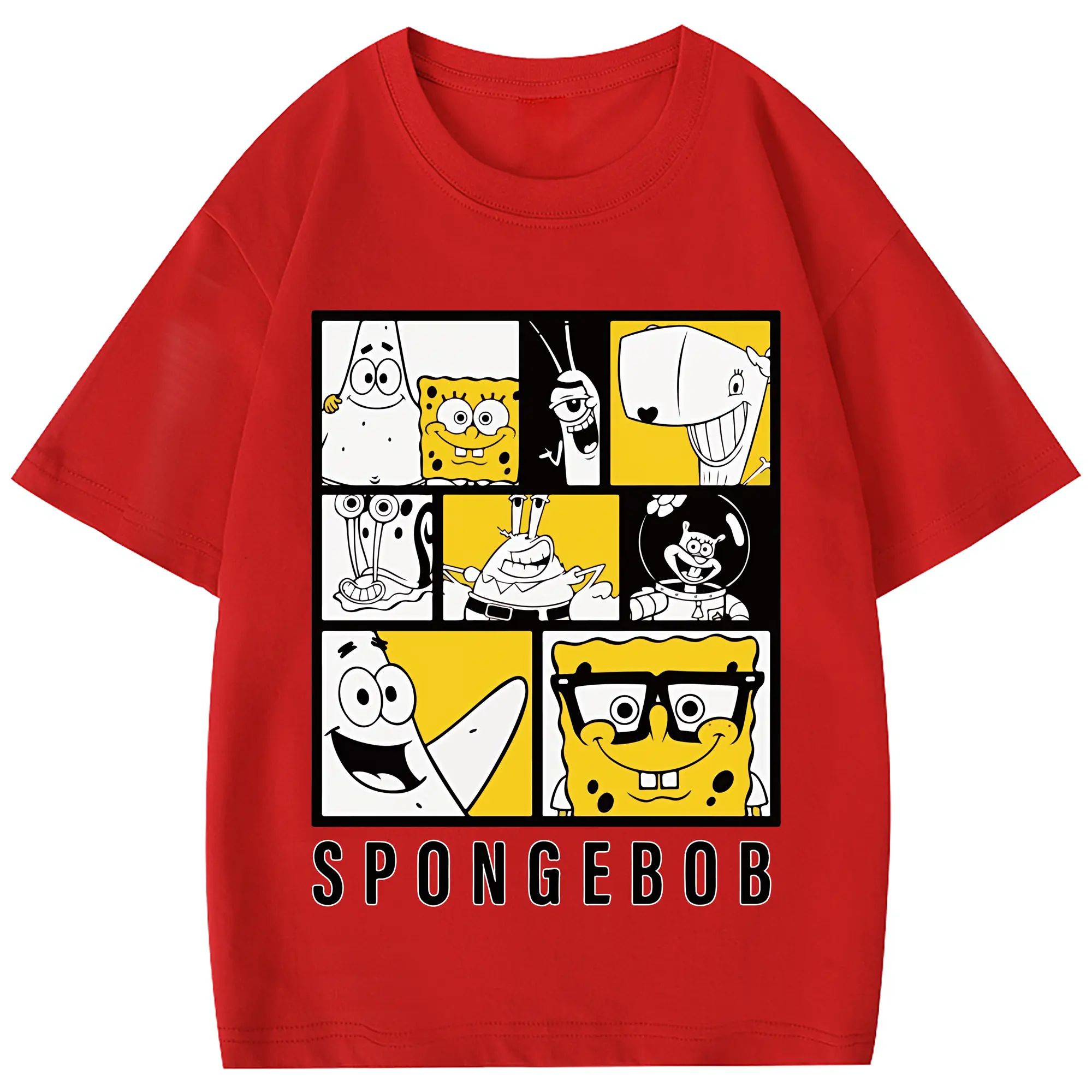 スポンジボブ グッズ スポンジボブ - 綿100% 半袖Tシャツ ・ フロントプリント ・ 快適 通気性 ・ 日常使い 散歩 スポーツ用
