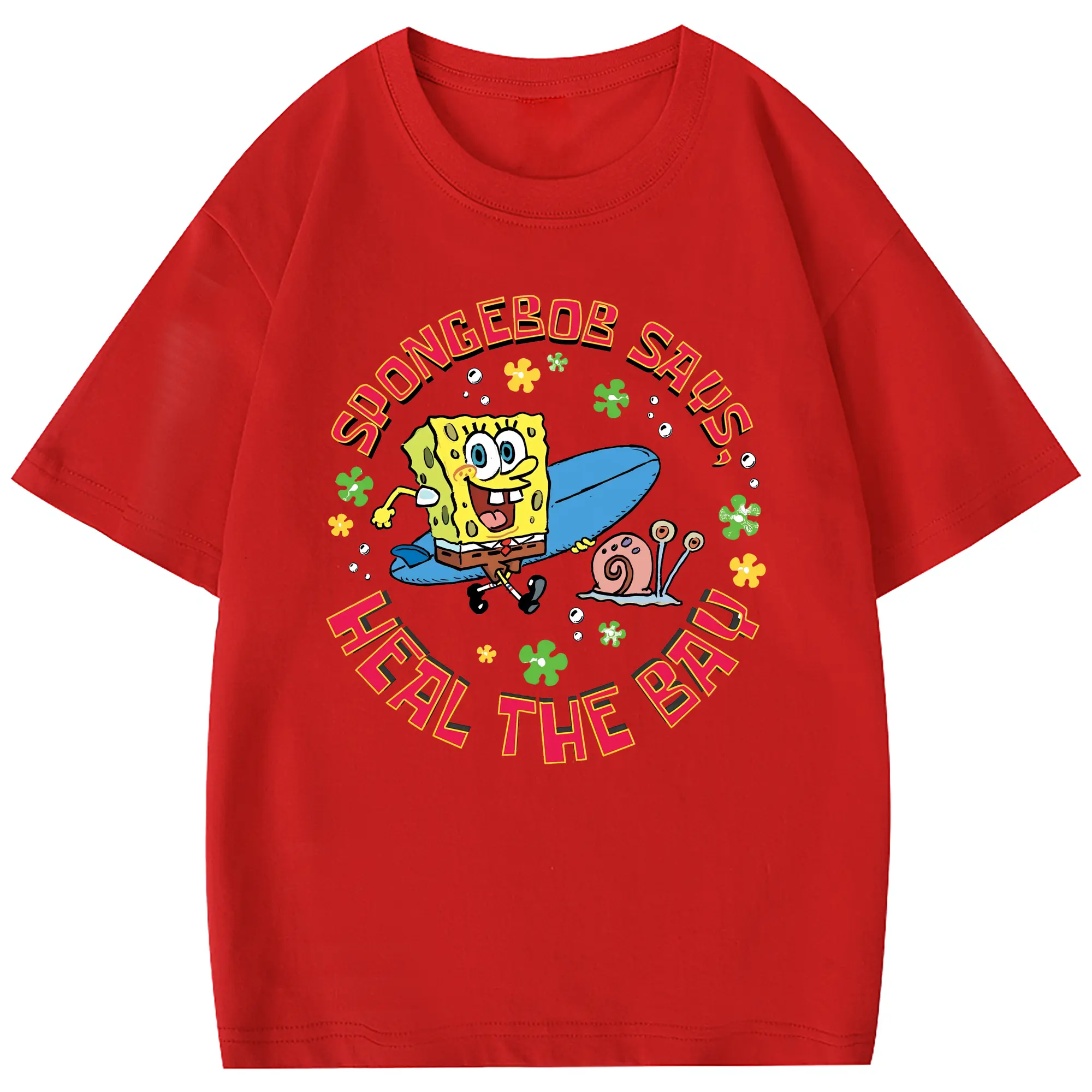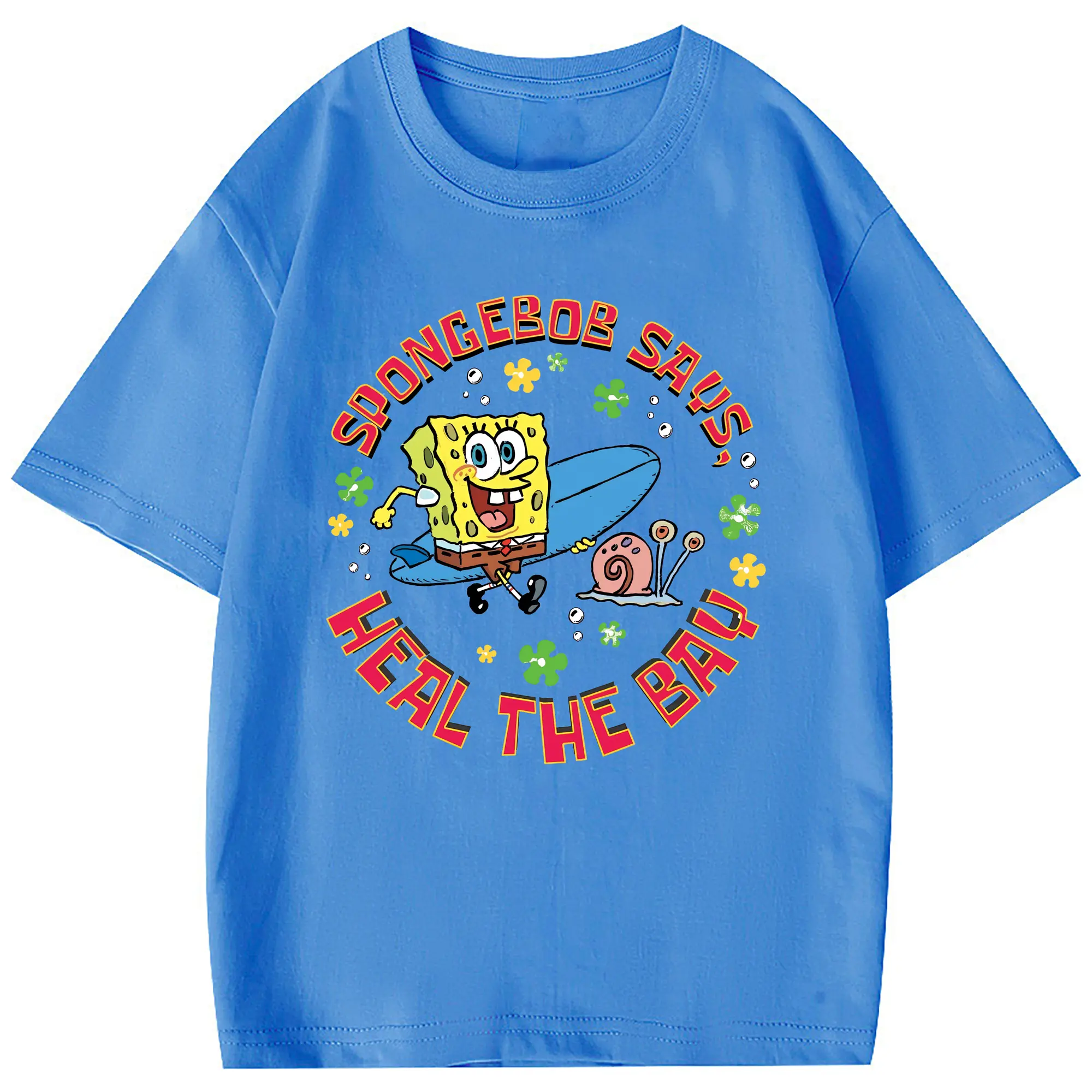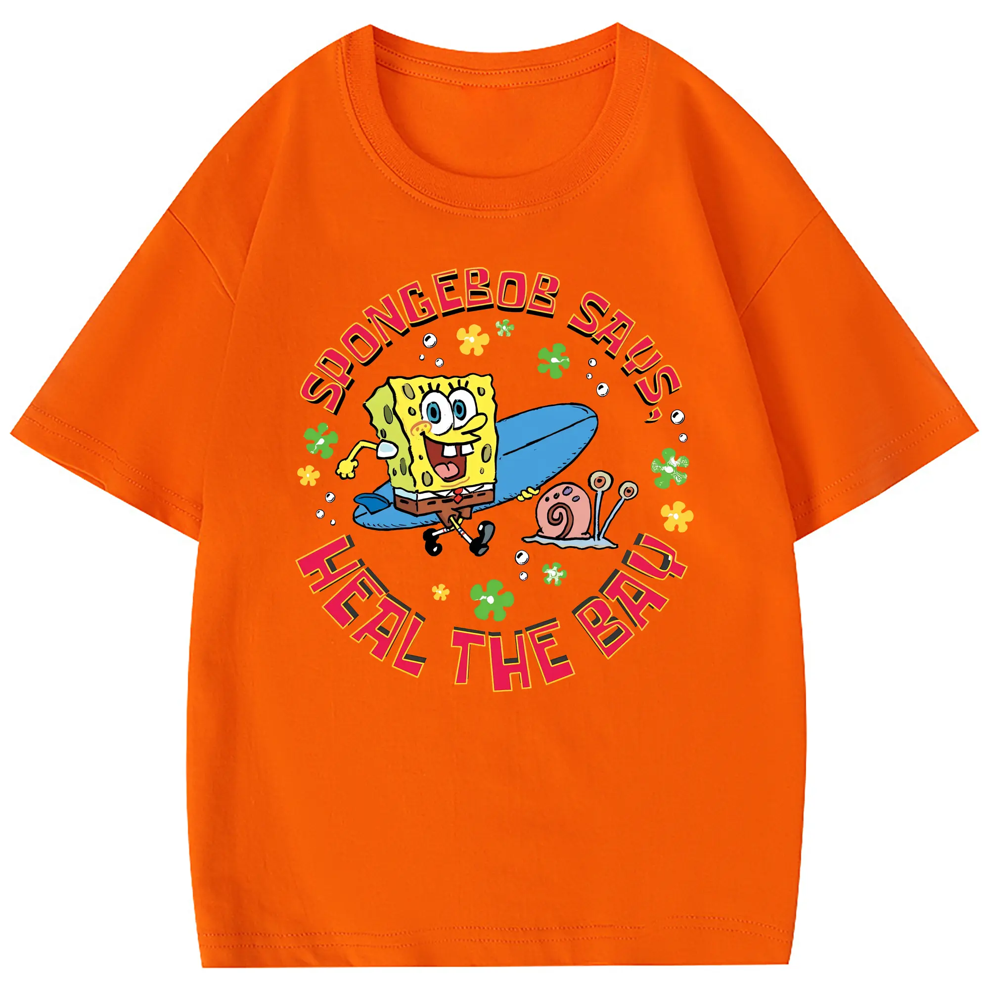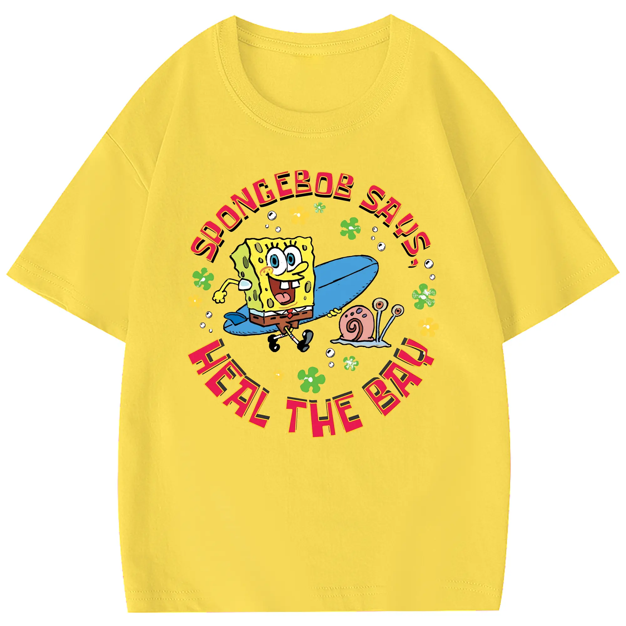 スポンジボブ グッズ スポンジボブ - 綿100% 半袖Tシャツ ・ フロントプリント ・ 快適 通気性 ・ 日常使い 散歩 スポーツ用
