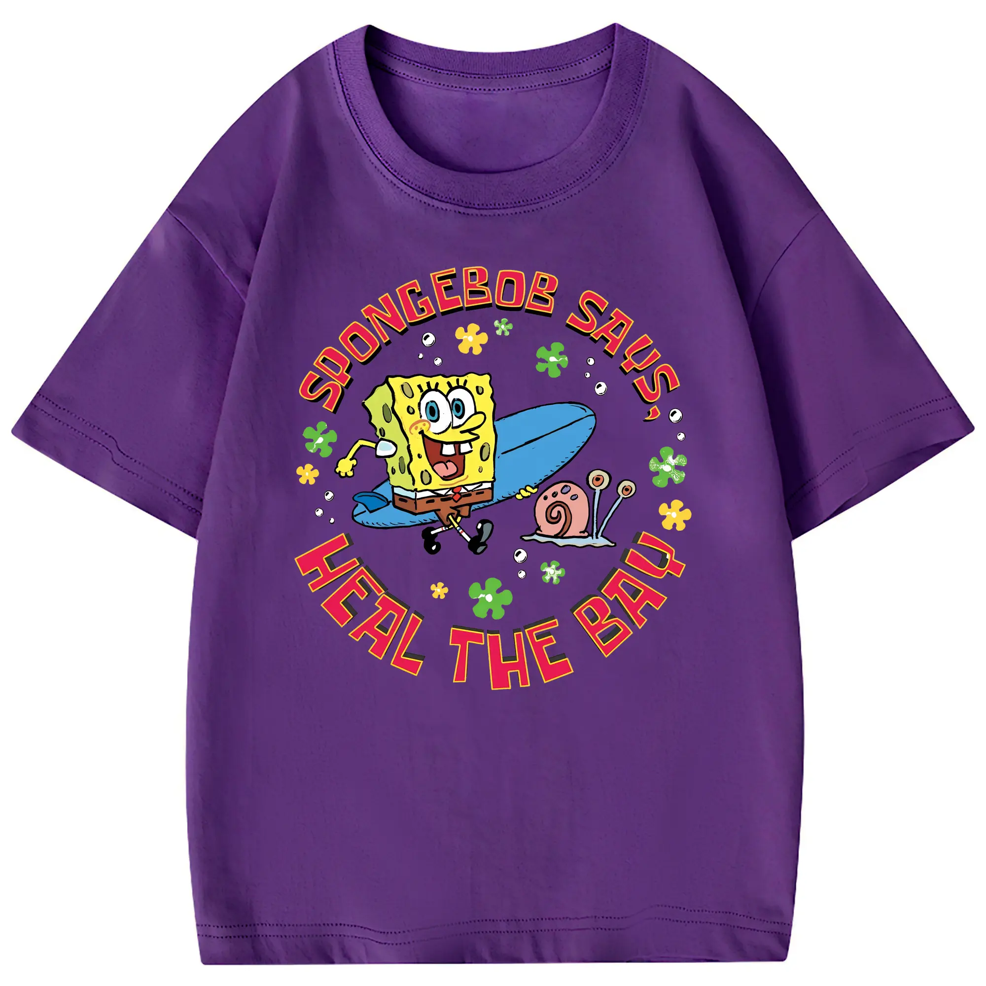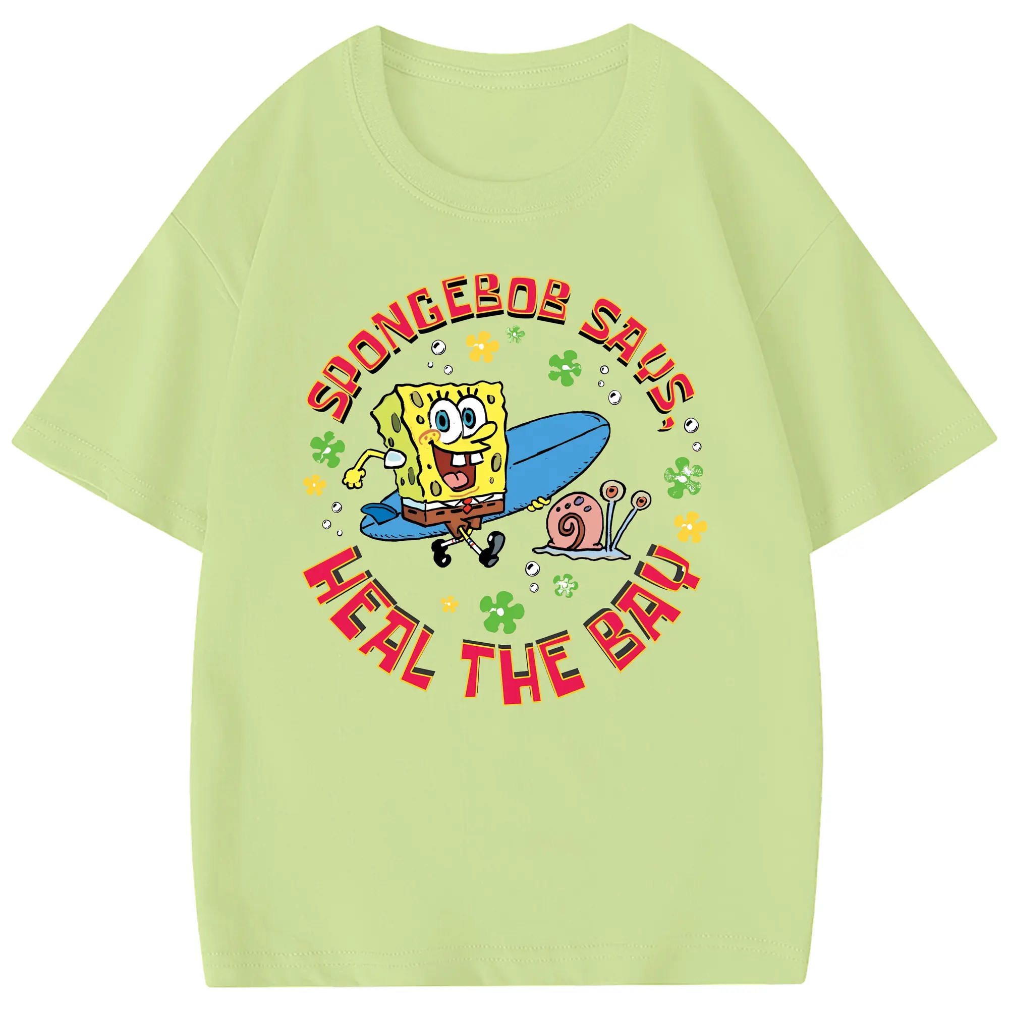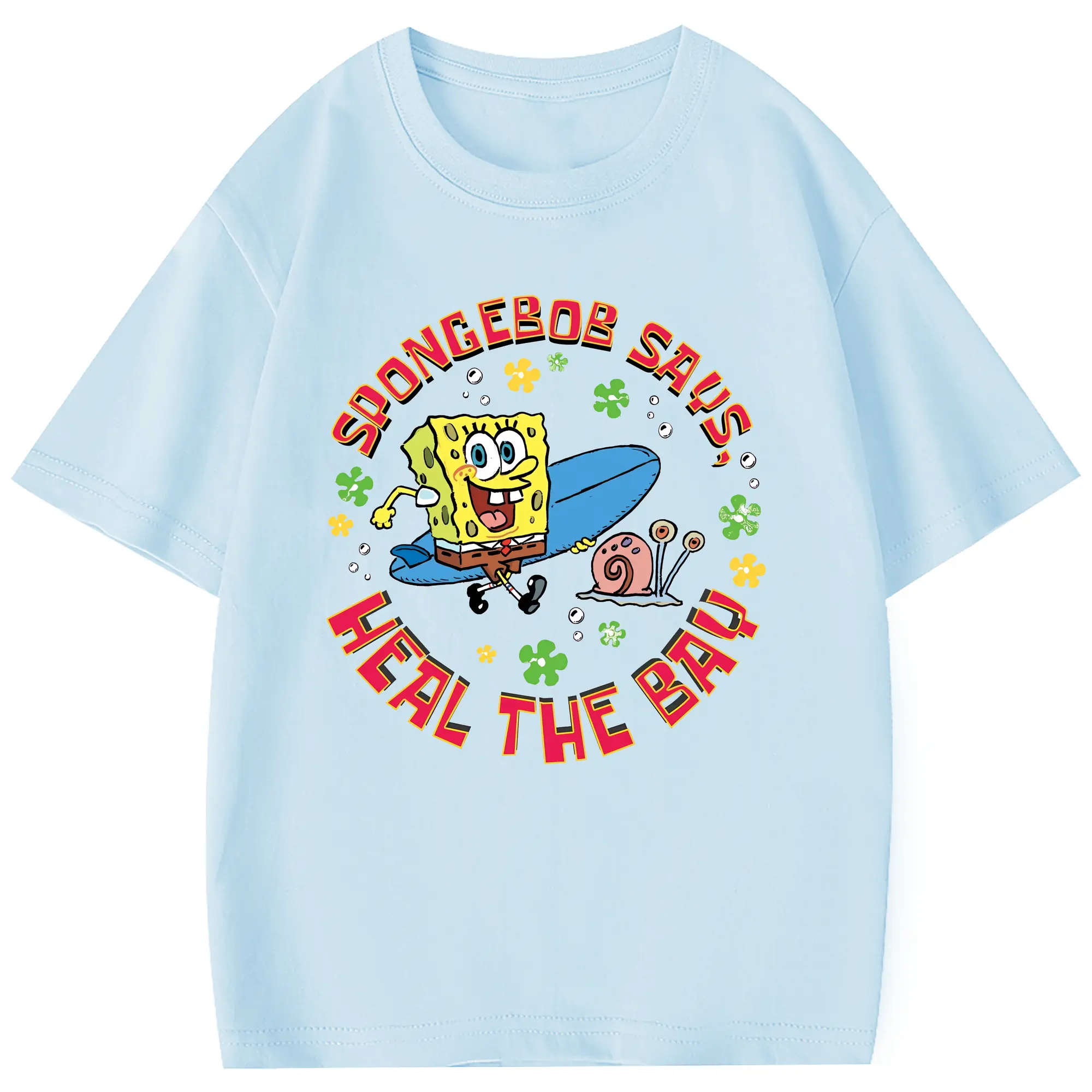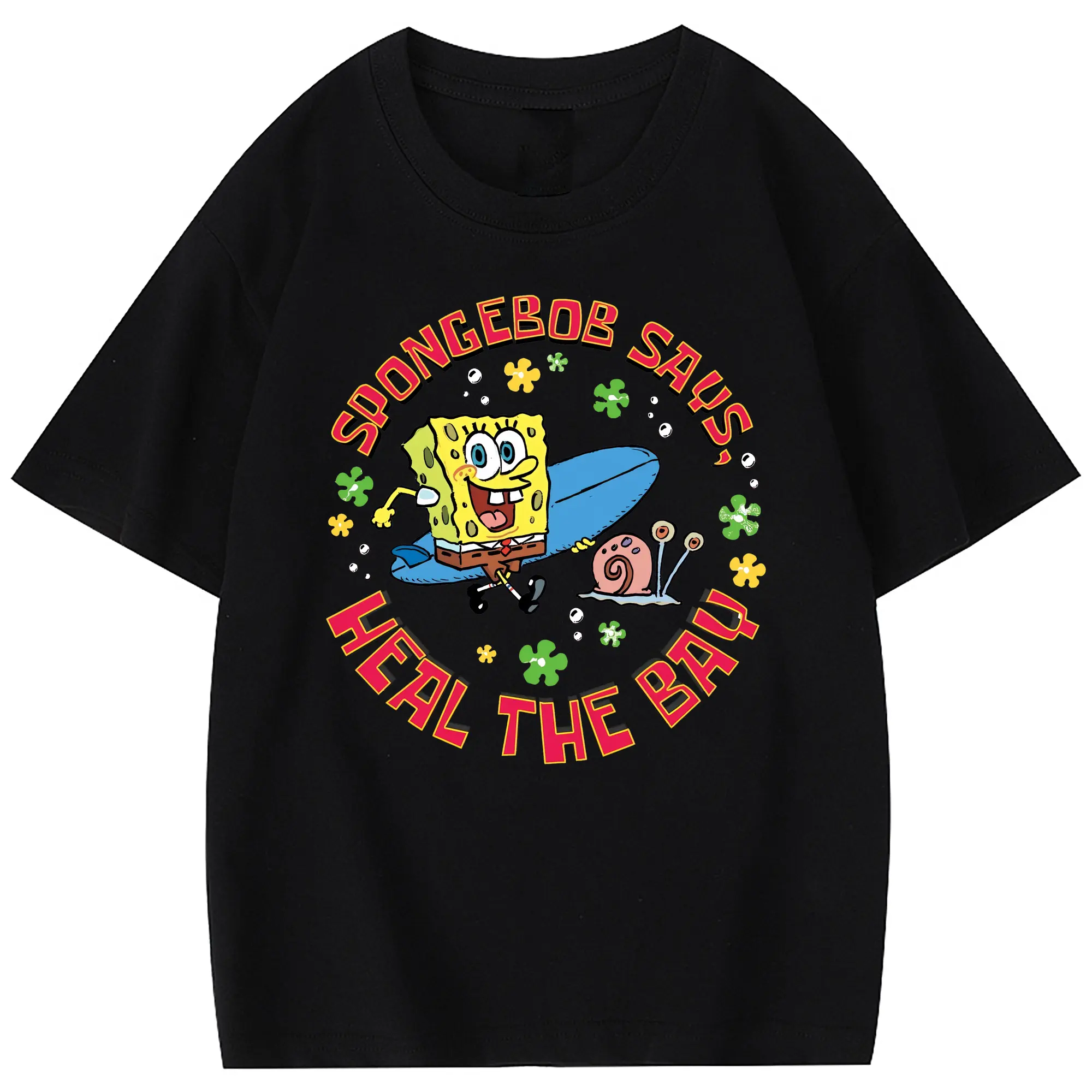 スポンジボブ グッズ スポンジボブ - 綿100% 半袖Tシャツ ・ フロントプリント ・ 快適 通気性 ・ 日常使い 散歩 スポーツ用