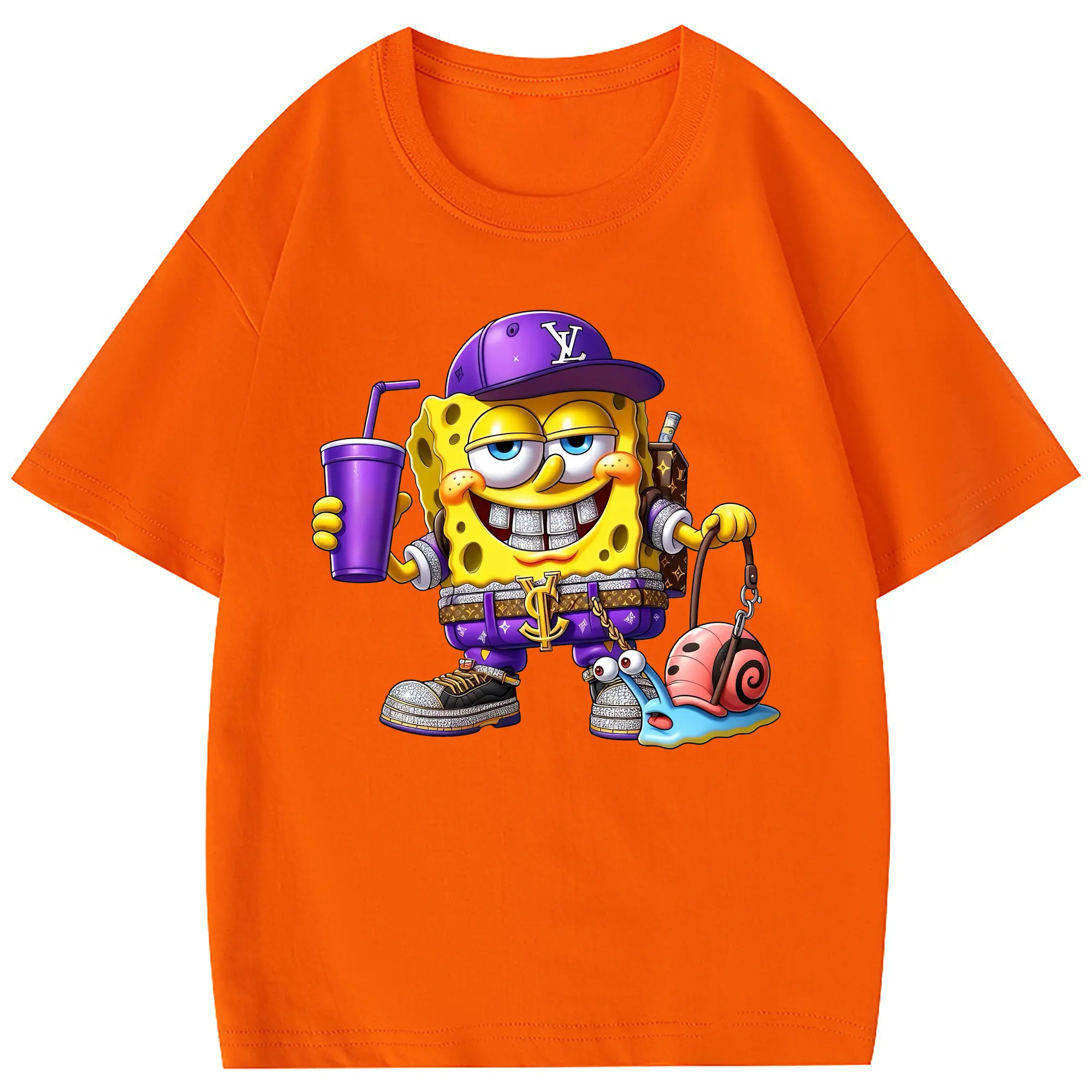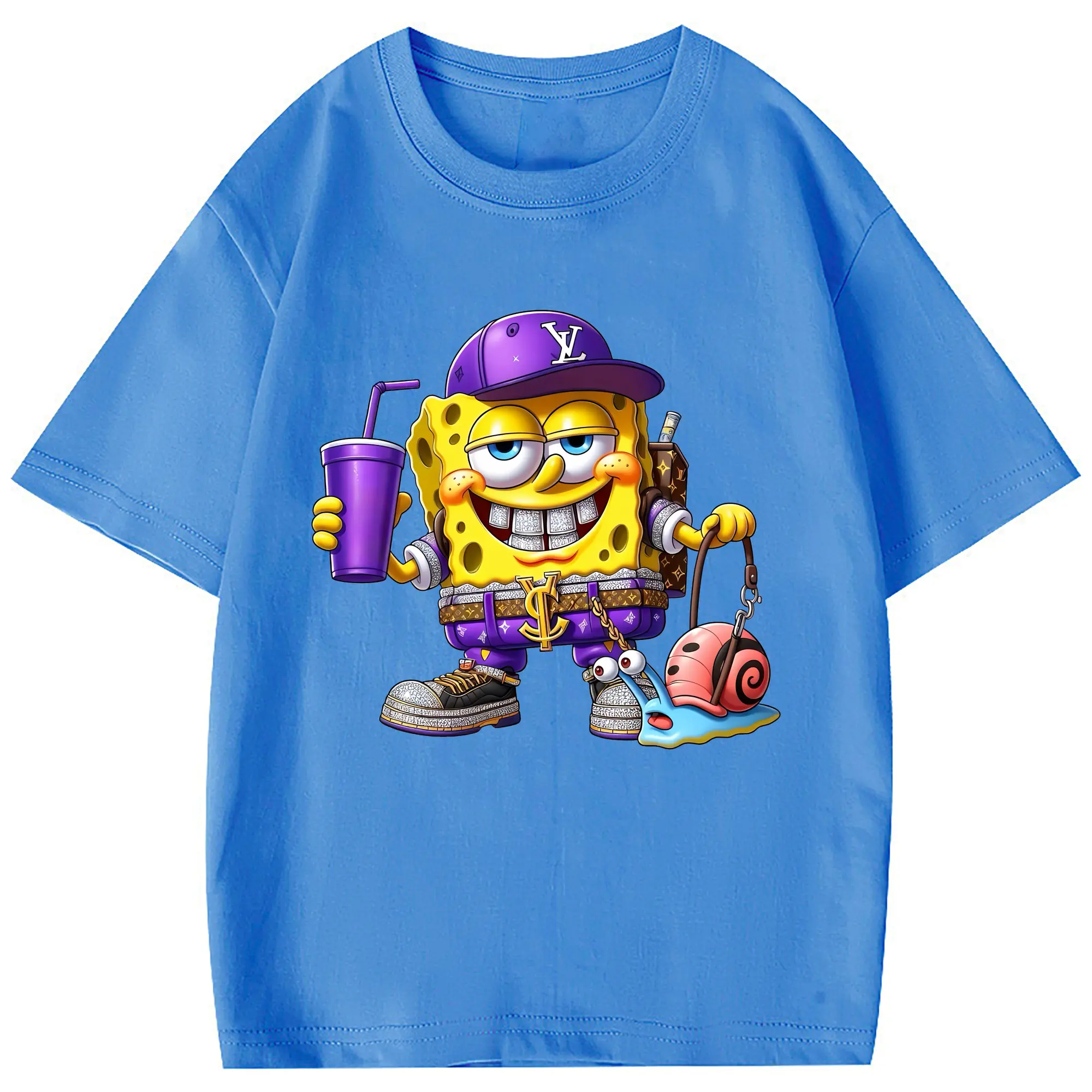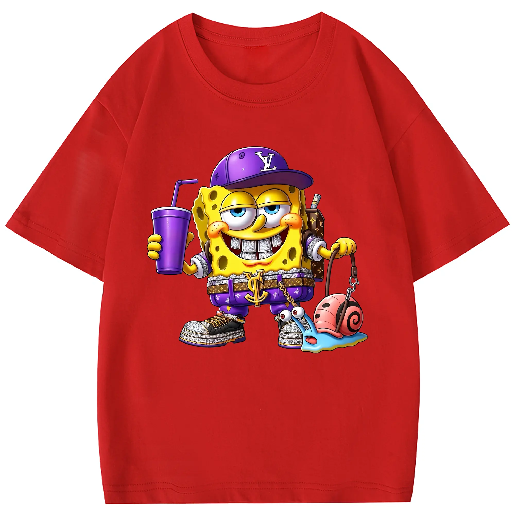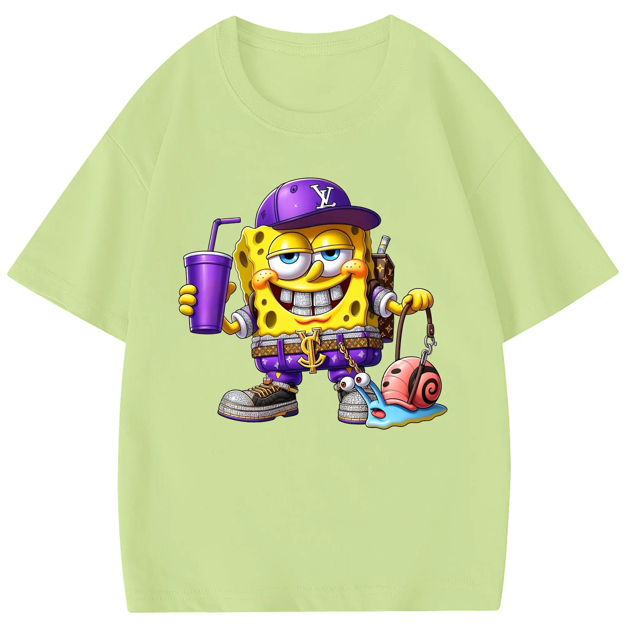 スポンジボブ グッズ スポンジボブ - 綿100% 半袖Tシャツ ・ フロントプリント ・ 快適 通気性 ・ 日常使い 散歩 スポーツ用