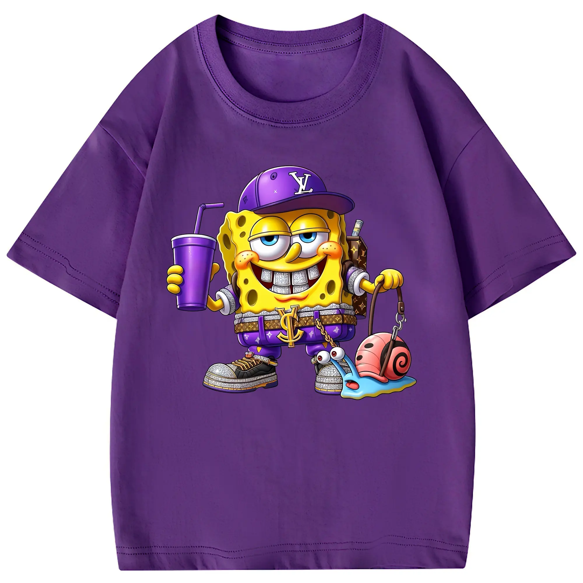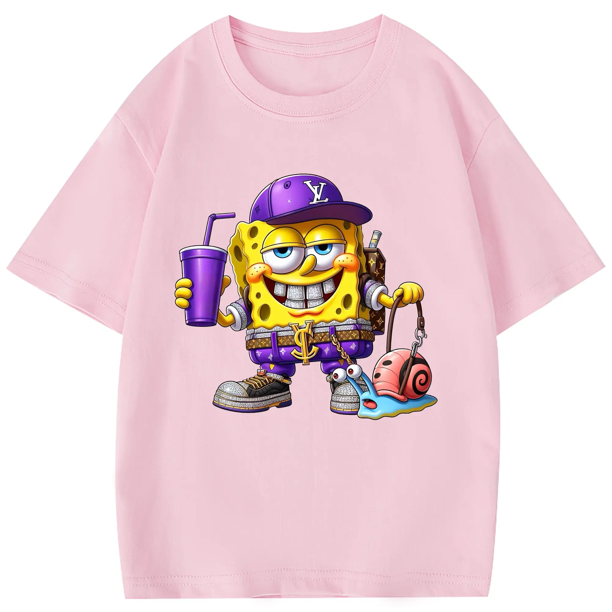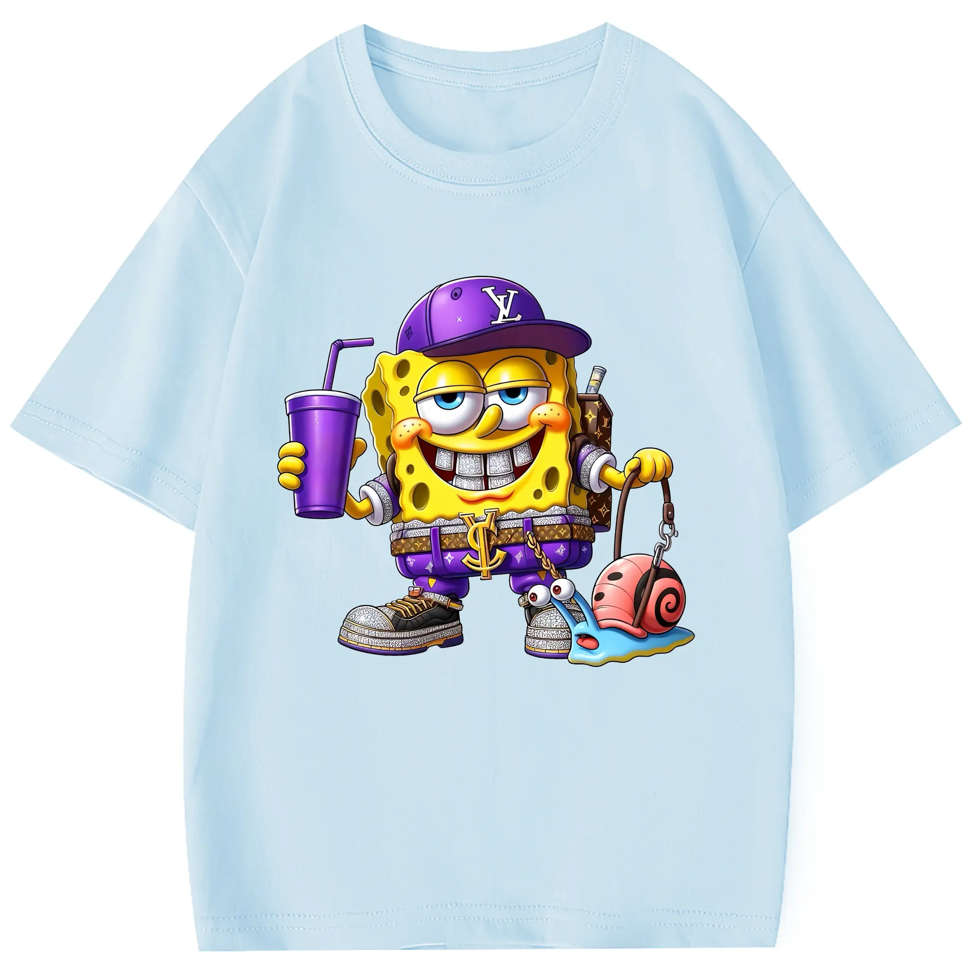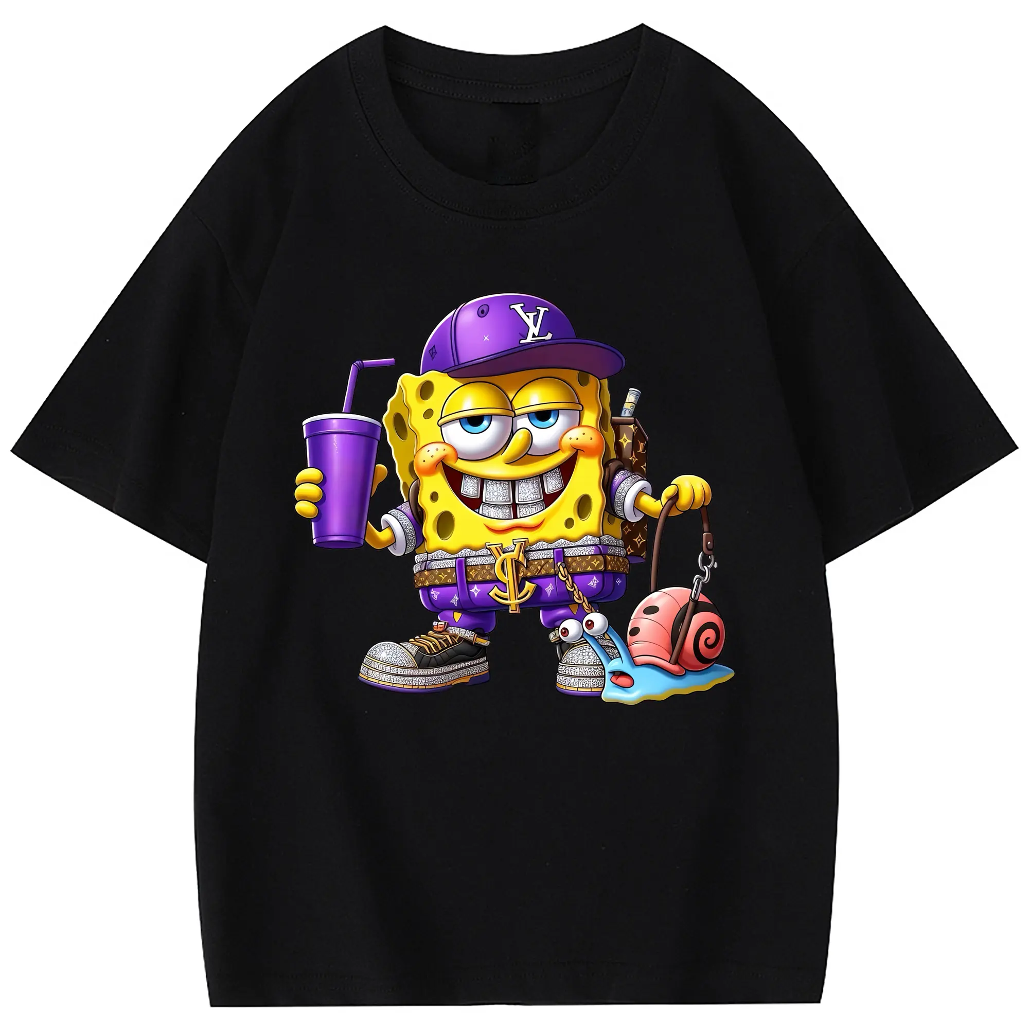 スポンジボブ グッズ スポンジボブ - 綿100% 半袖Tシャツ ・ フロントプリント ・ 快適 通気性 ・ 日常使い 散歩 スポーツ用