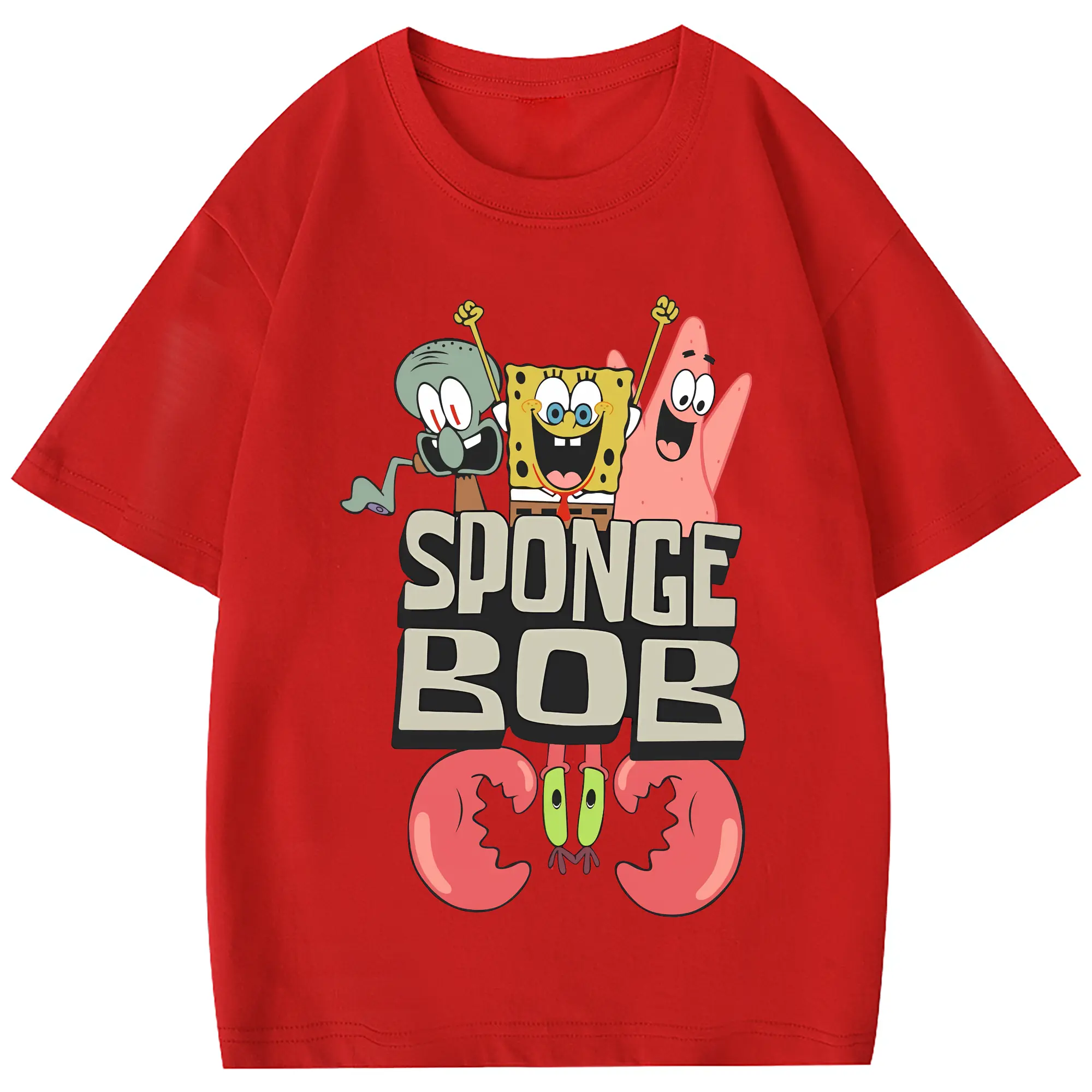 スポンジボブ グッズ スポンジボブ - 綿100% 半袖Tシャツ ・ フロントプリント ・ 快適 通気性 ・ 日常使い 散歩 スポーツ用