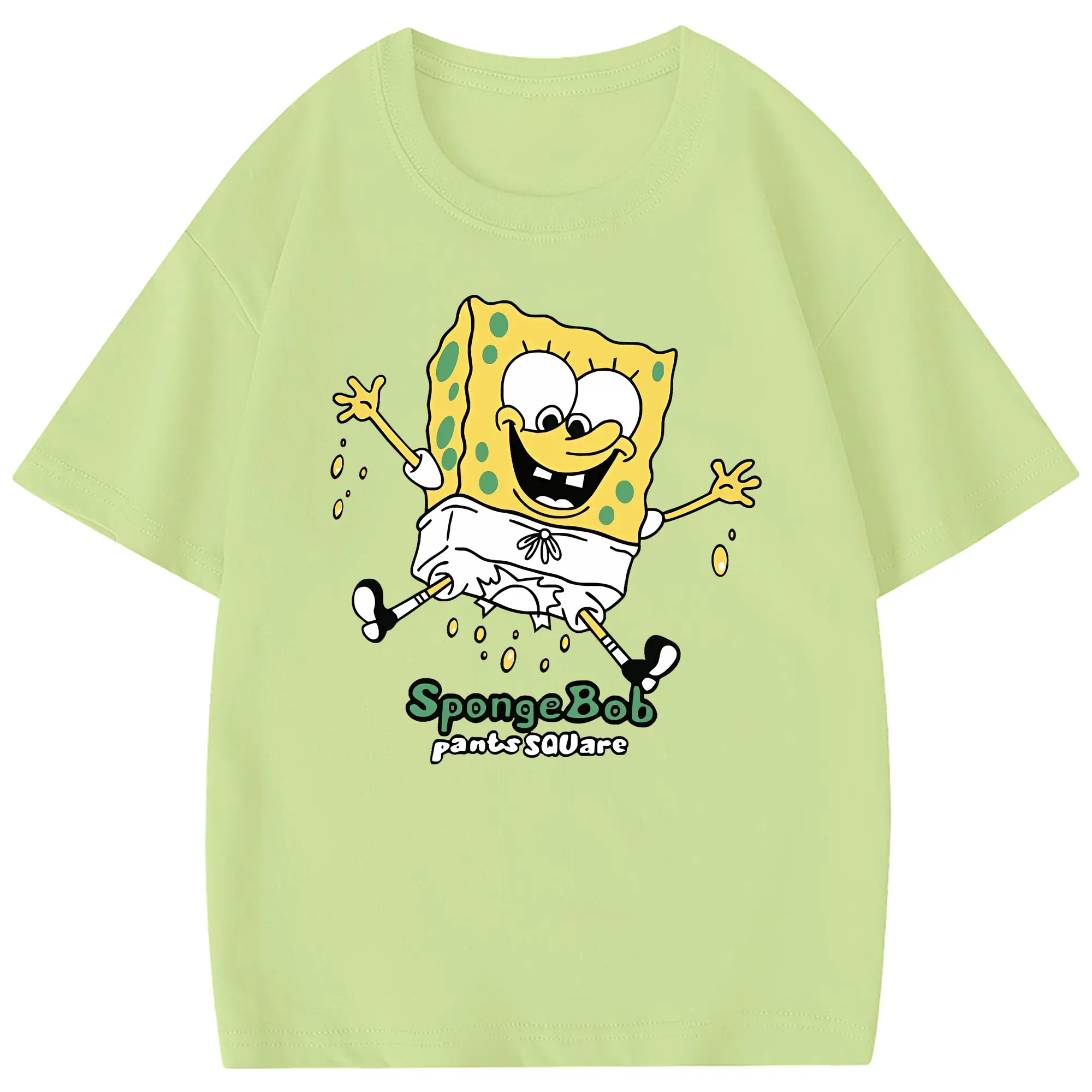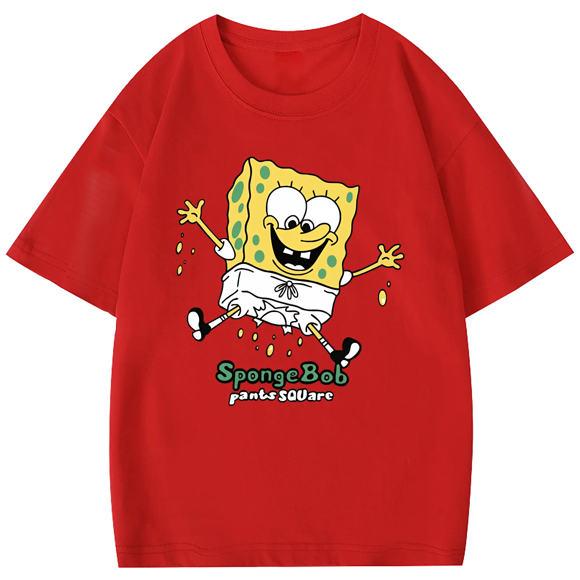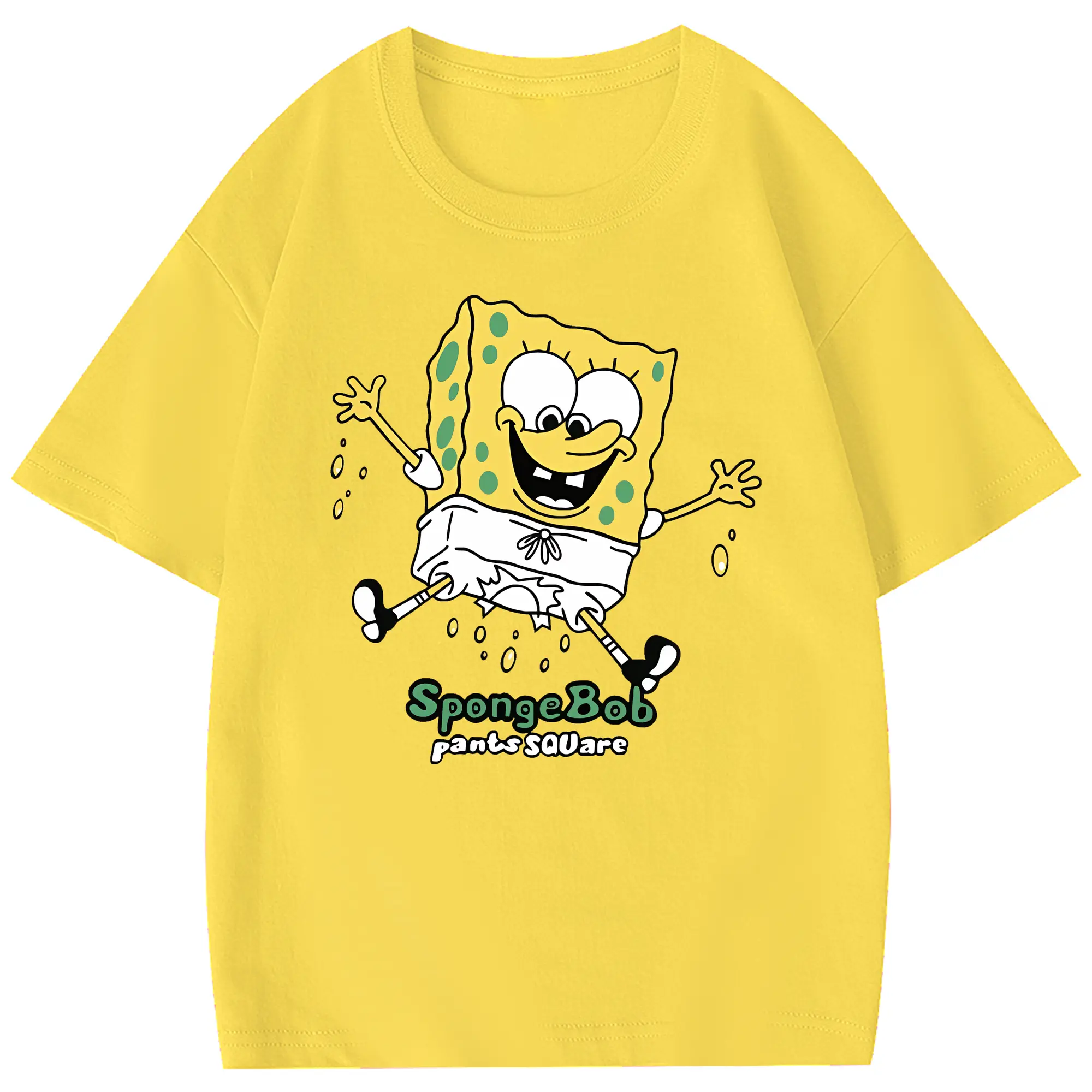 スポンジボブ グッズ スポンジボブ - 綿100% 半袖Tシャツ ・ フロントプリント ・ 快適 通気性 ・ 日常使い 散歩 スポーツ用