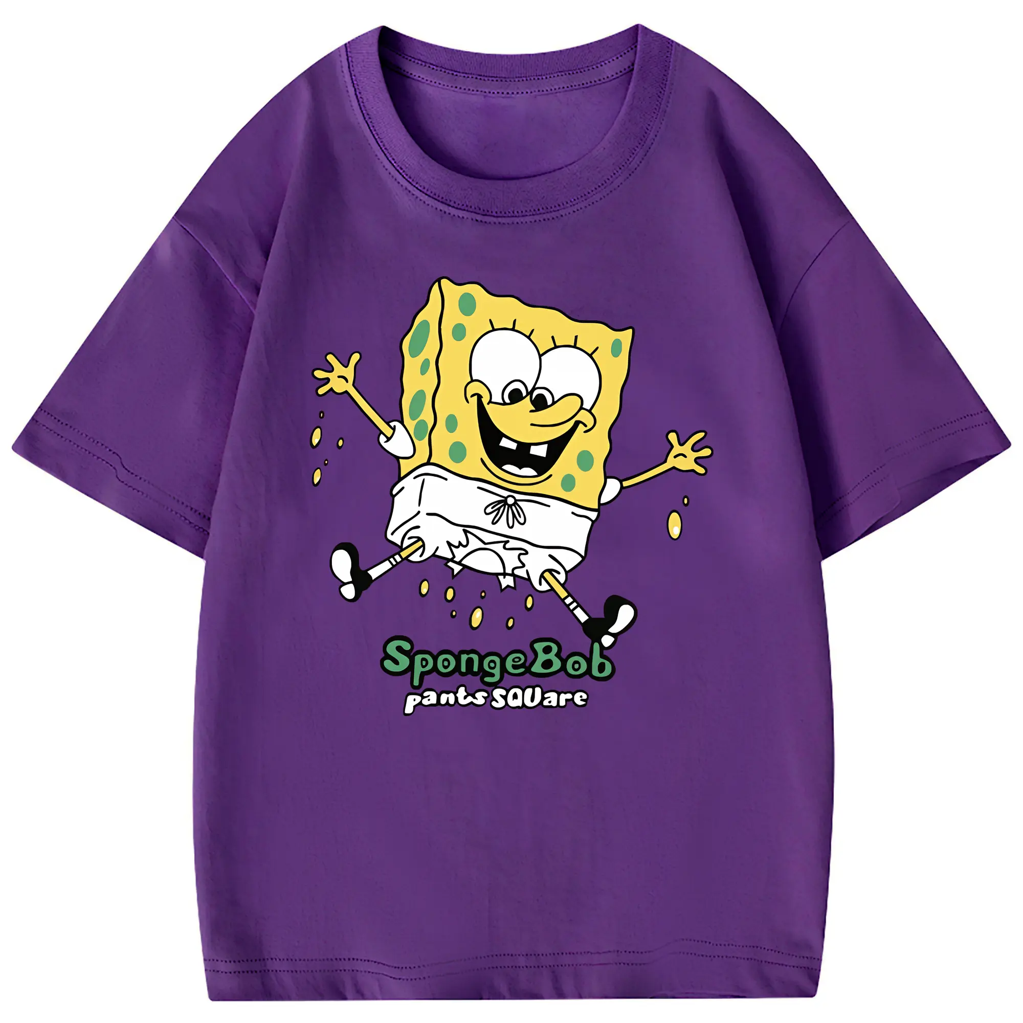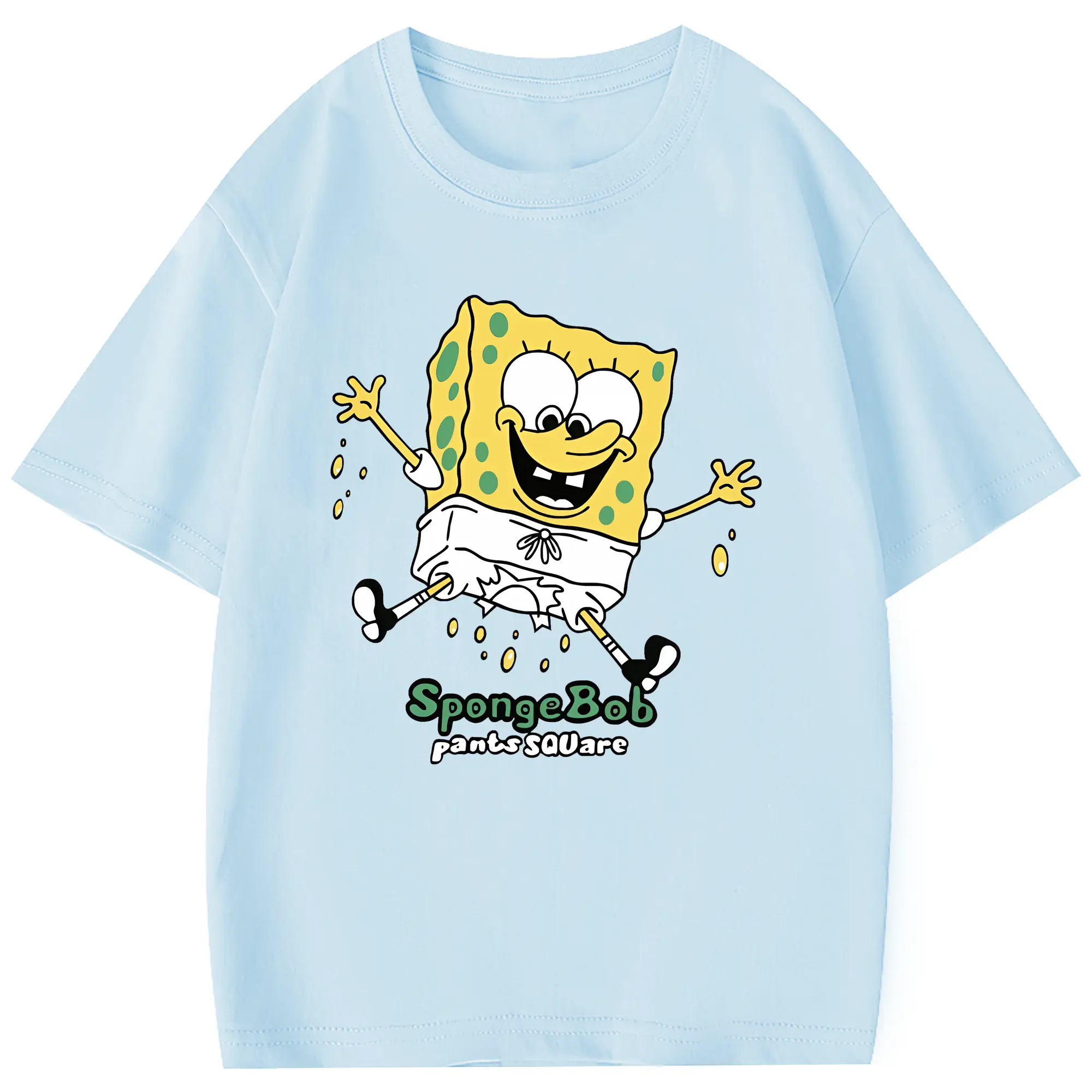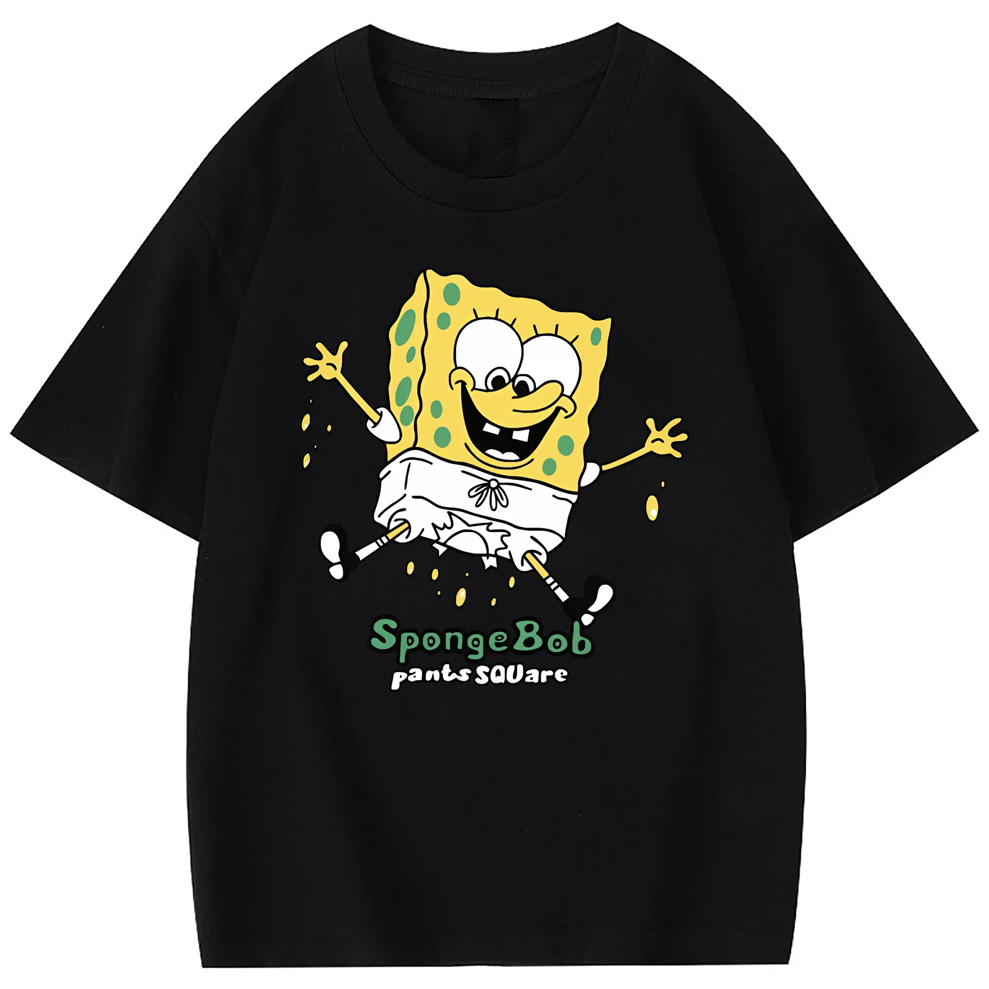 スポンジボブ グッズ スポンジボブ - 綿100% 半袖Tシャツ ・ フロントプリント ・ 快適 通気性 ・ 日常使い 散歩 スポーツ用