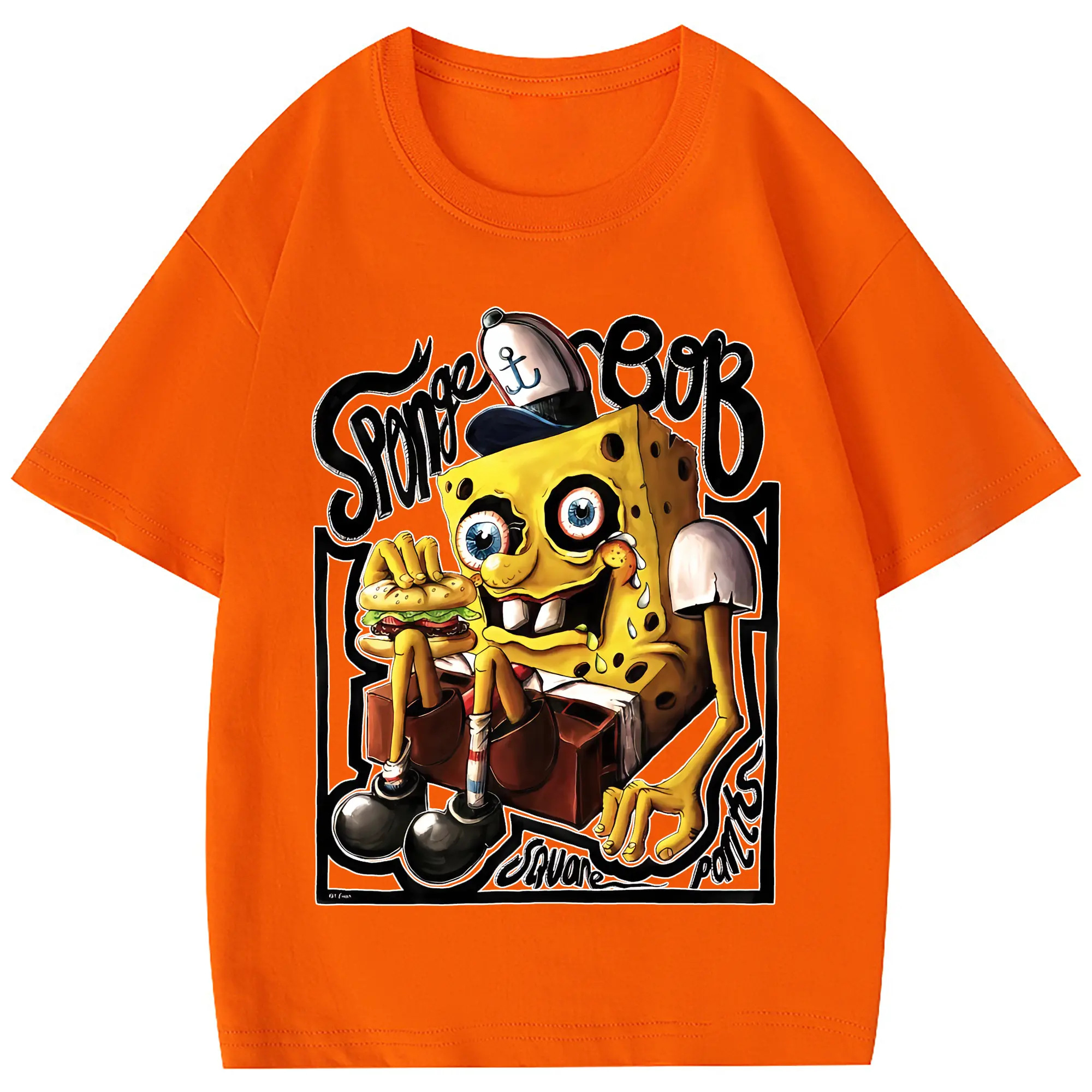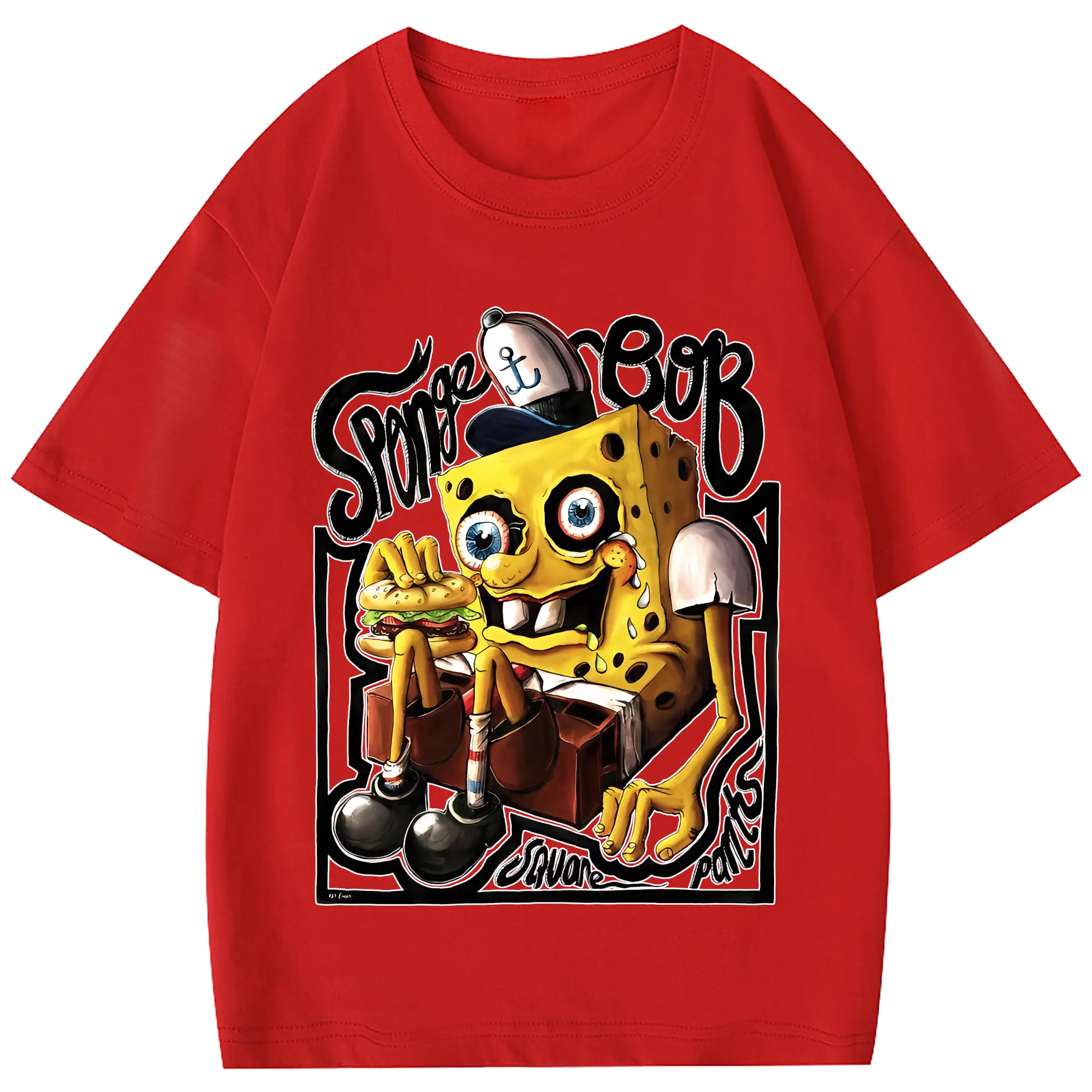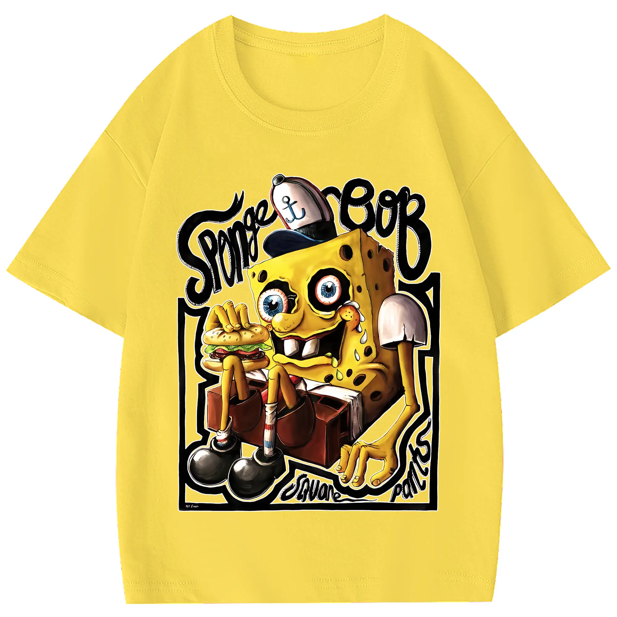 スポンジボブ グッズ スポンジボブ - 綿100% 半袖Tシャツ ・ フロントプリント ・ 快適 通気性 ・ 日常使い 散歩 スポーツ用