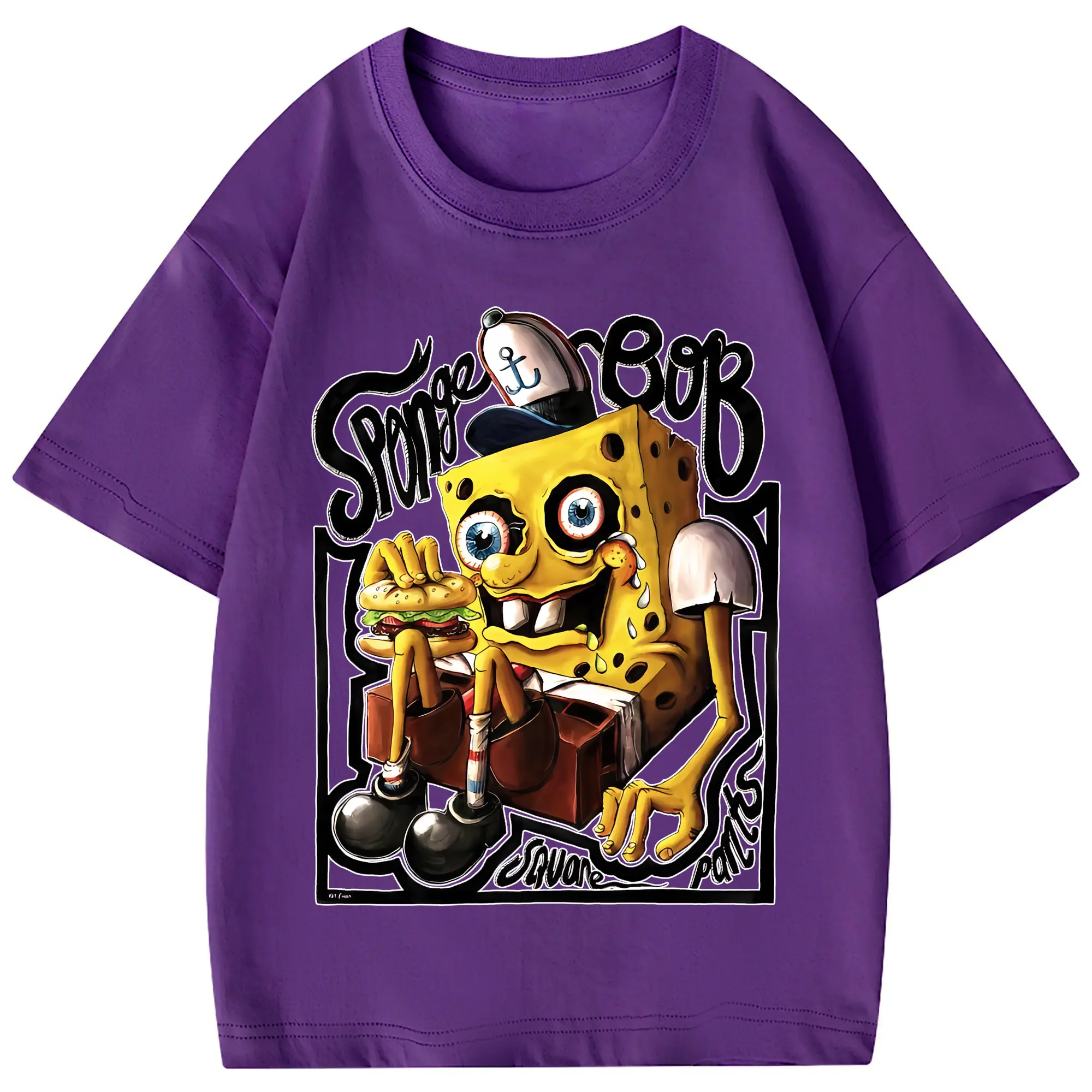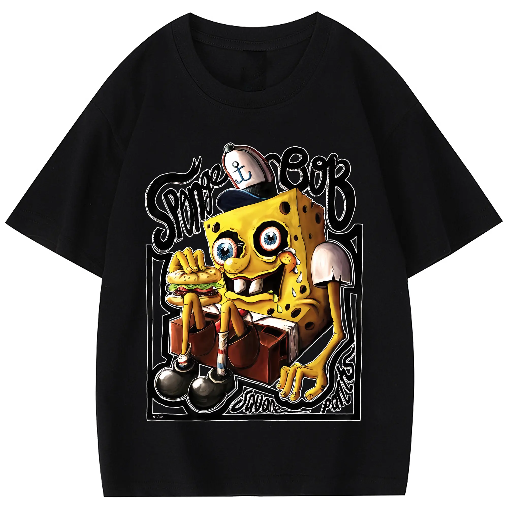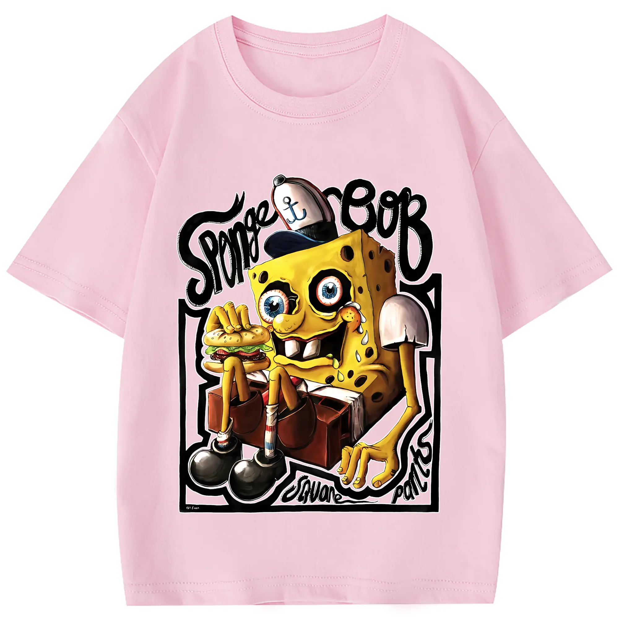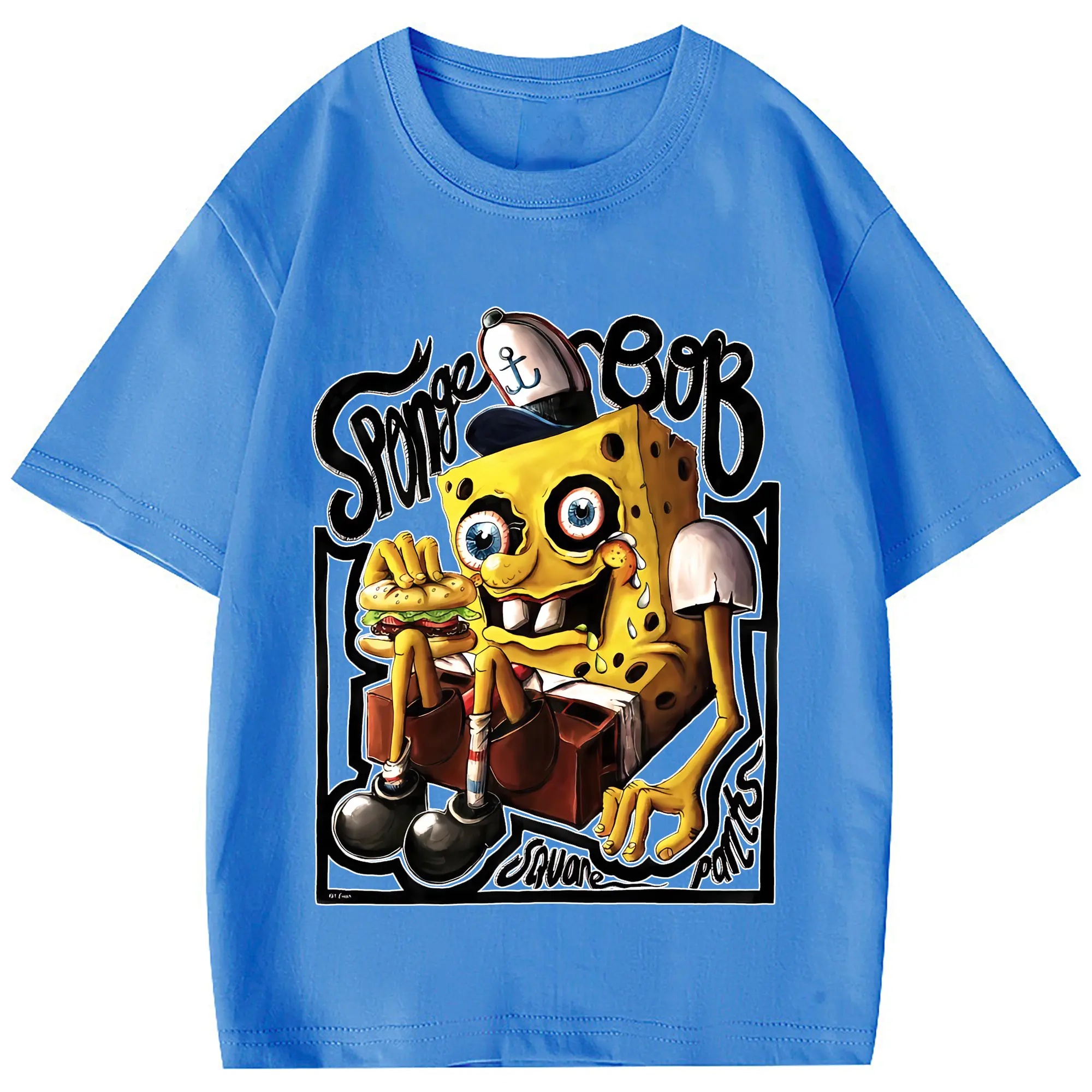 スポンジボブ グッズ スポンジボブ - 綿100% 半袖Tシャツ ・ フロントプリント ・ 快適 通気性 ・ 日常使い 散歩 スポーツ用