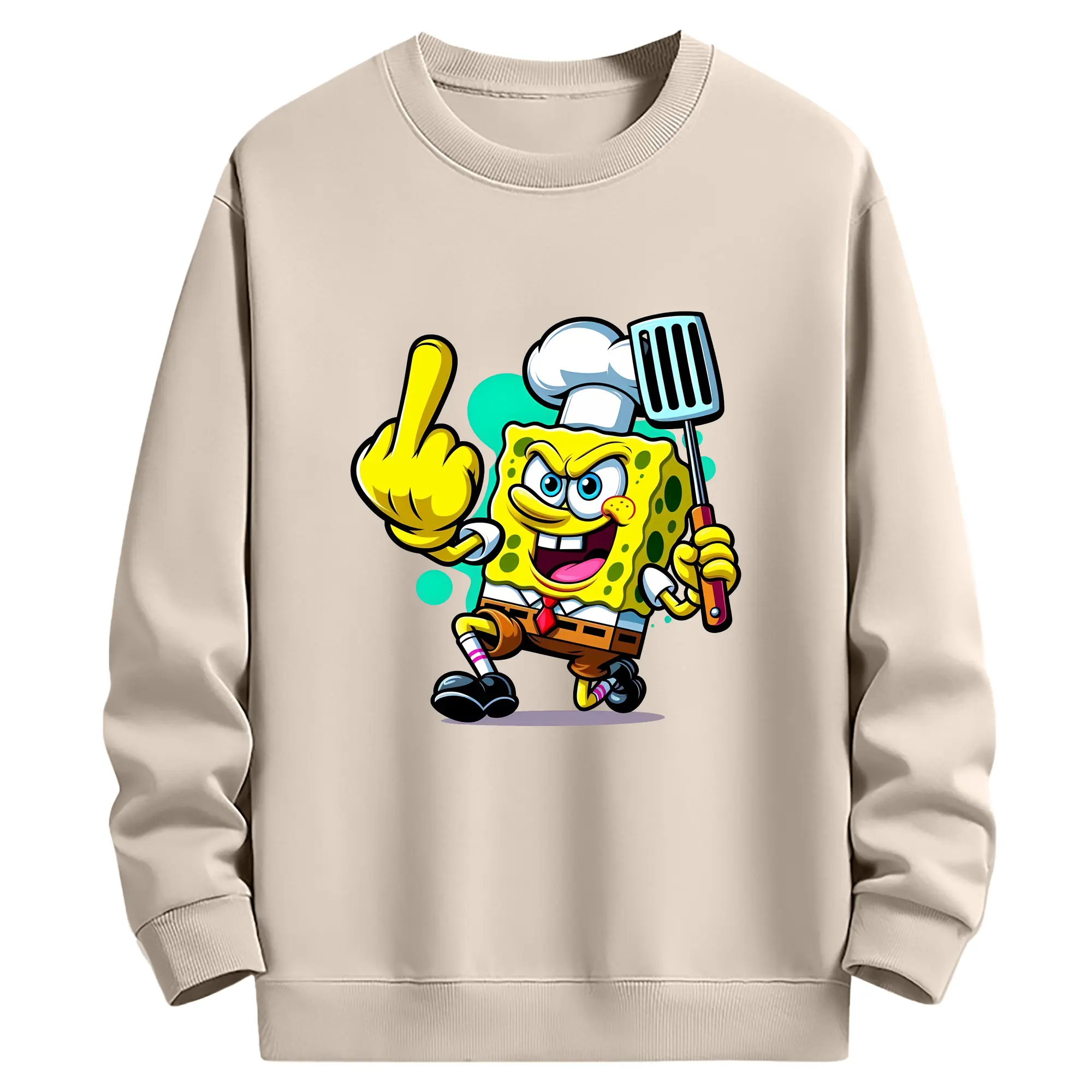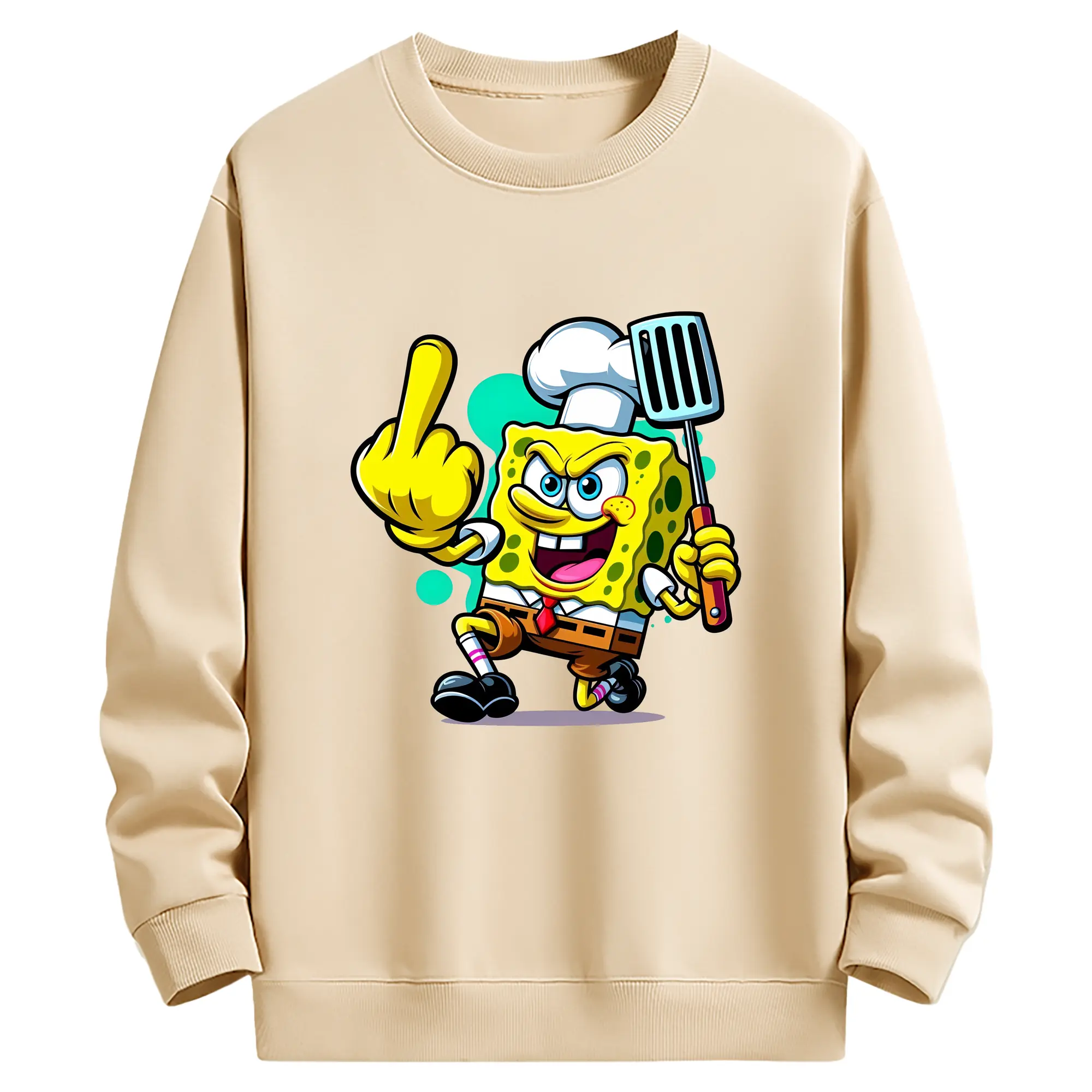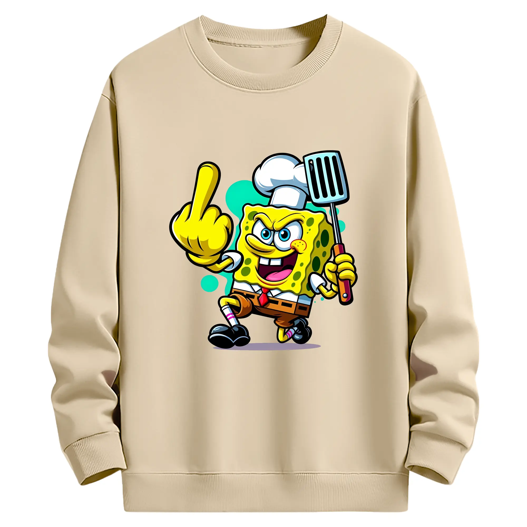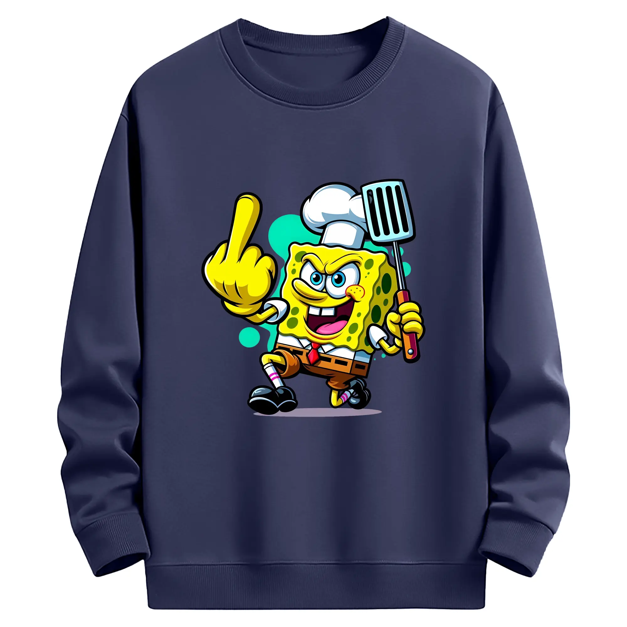 スポンジボブ グッズ スポンジボブ - 薄手 クルーネック スウェット 裏毛260g · ポリエステル 春秋向け カジュアル 男女兼用 · トレーナー デイリー スポーツ 散歩に最適