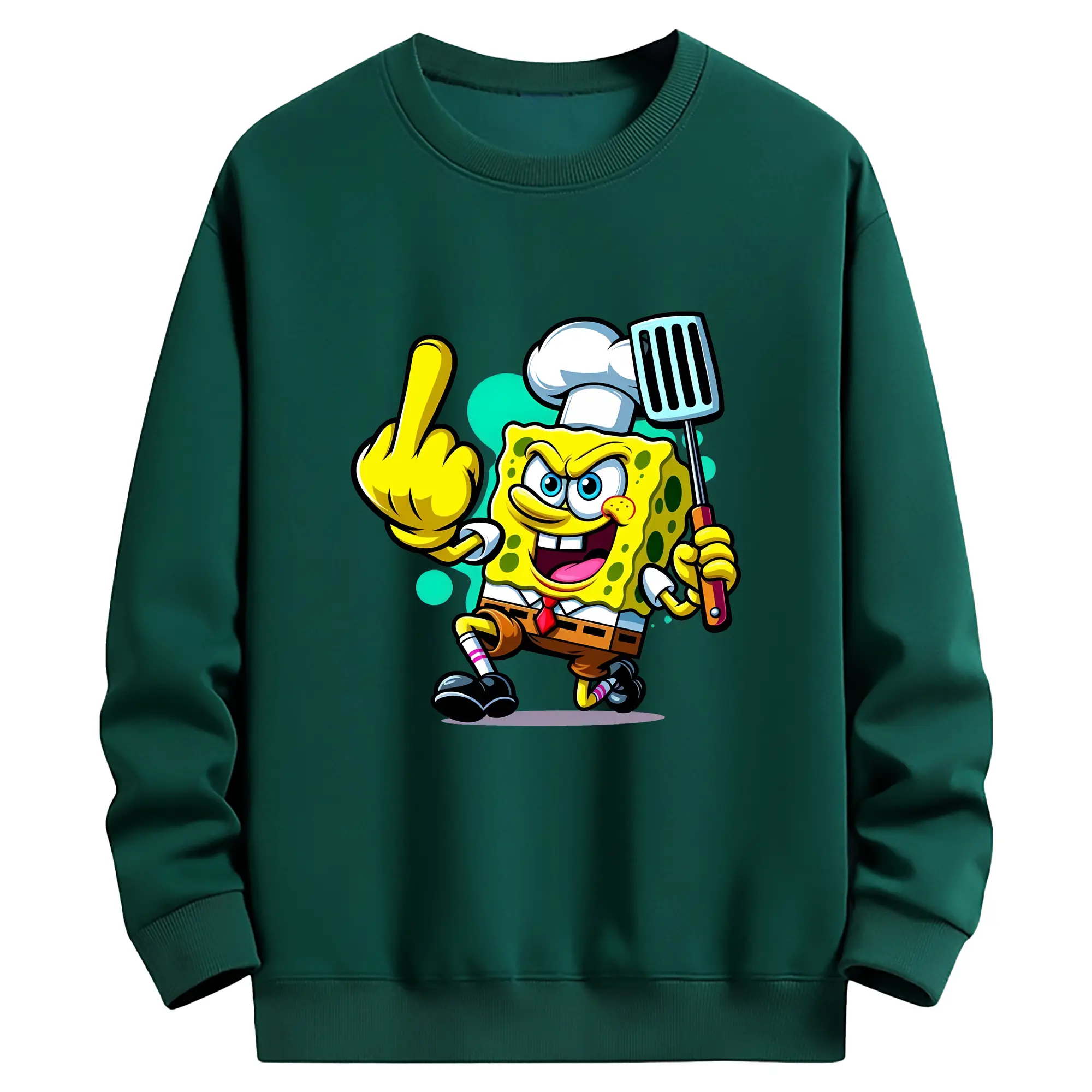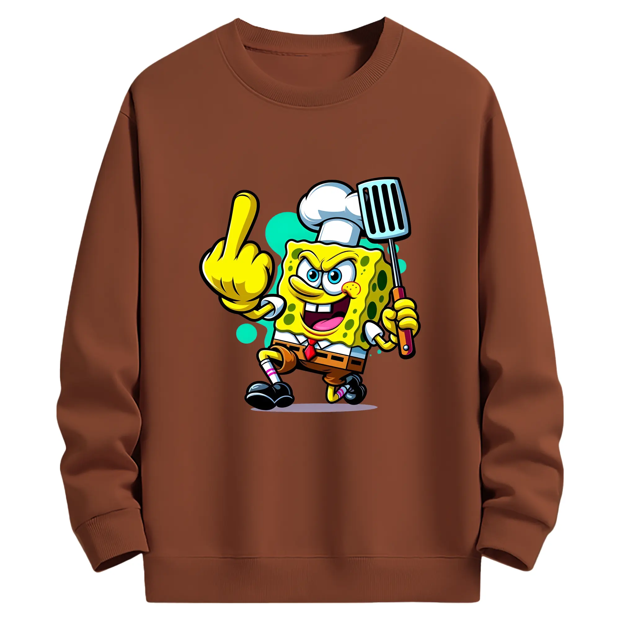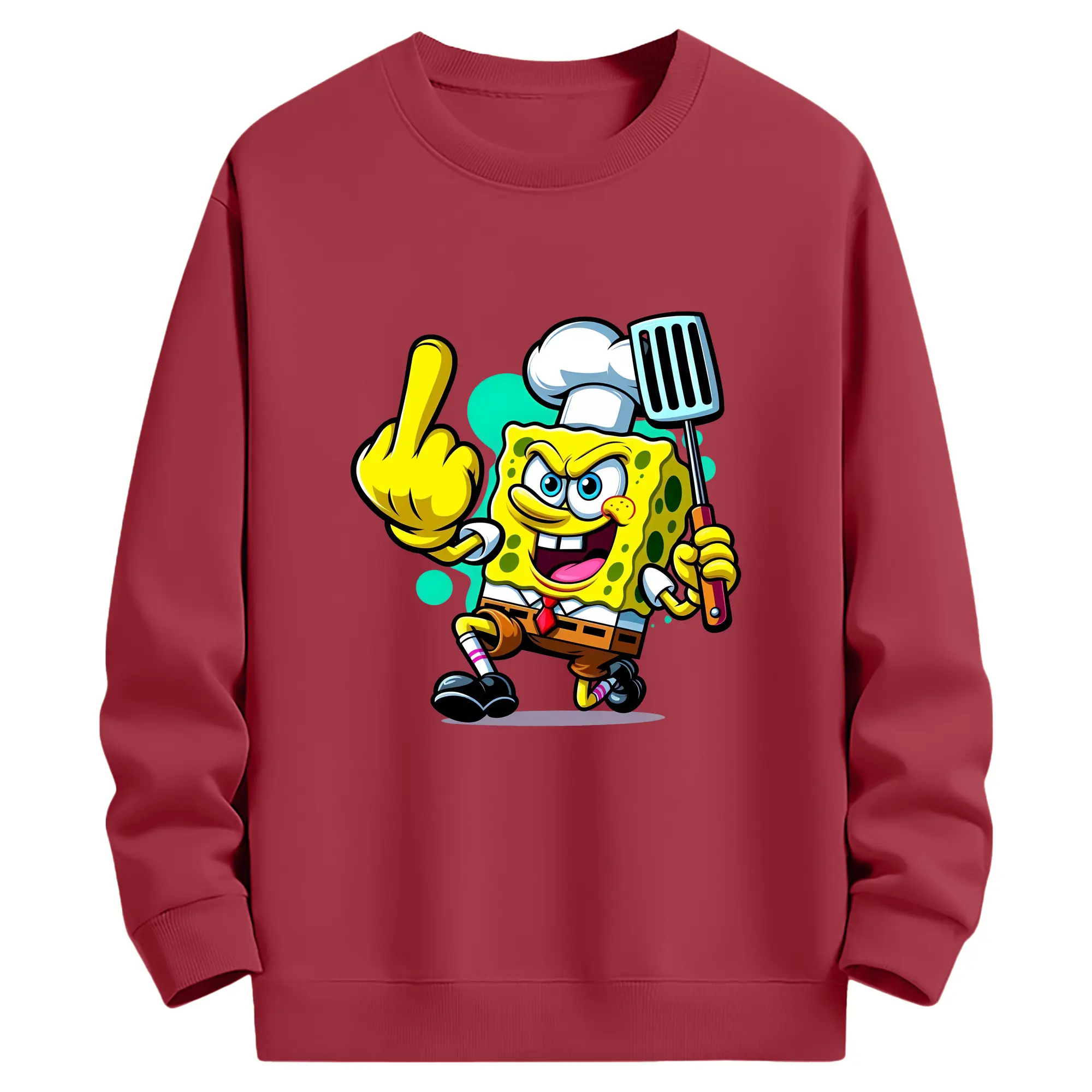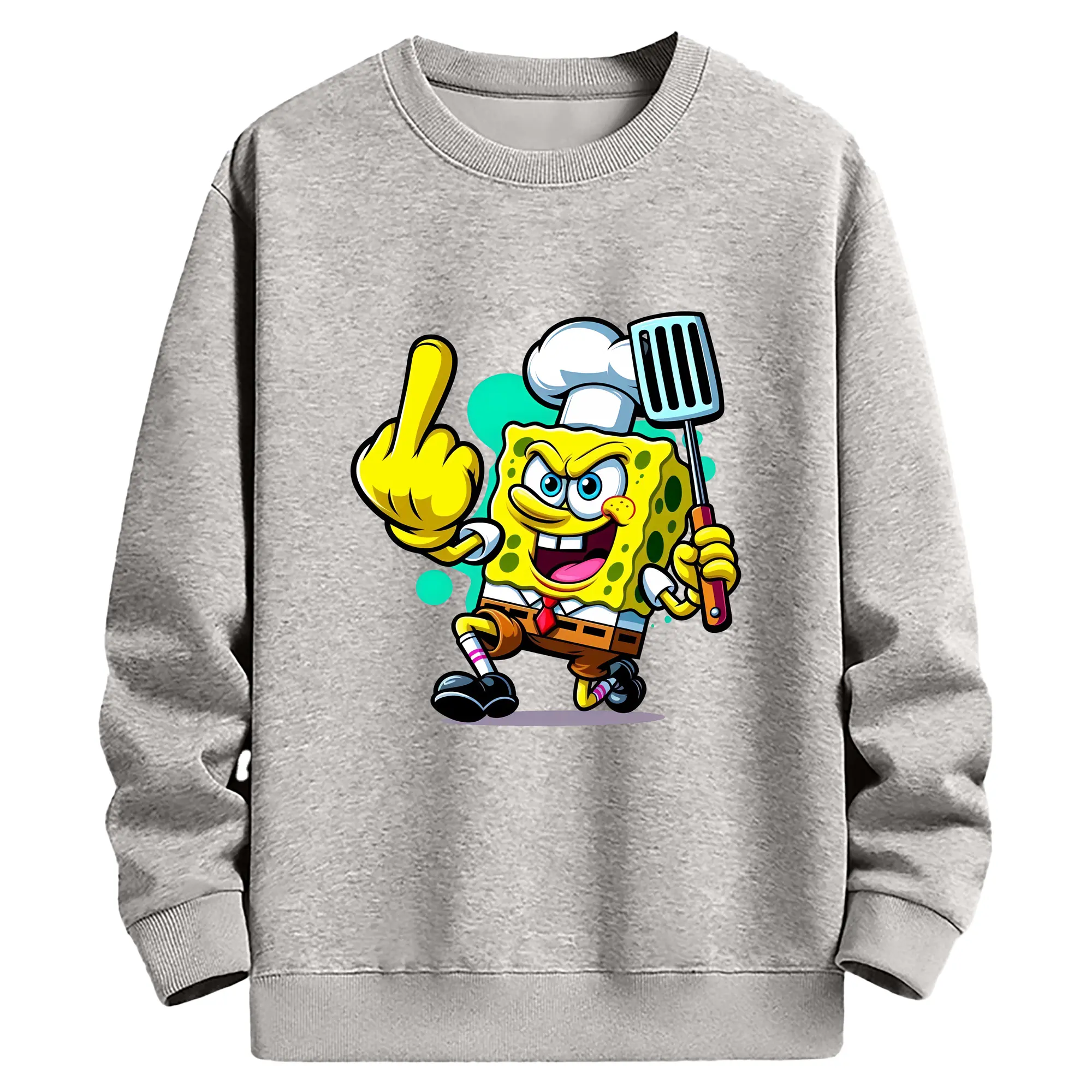 スポンジボブ グッズ スポンジボブ - 薄手 クルーネック スウェット 裏毛260g · ポリエステル 春秋向け カジュアル 男女兼用 · トレーナー デイリー スポーツ 散歩に最適