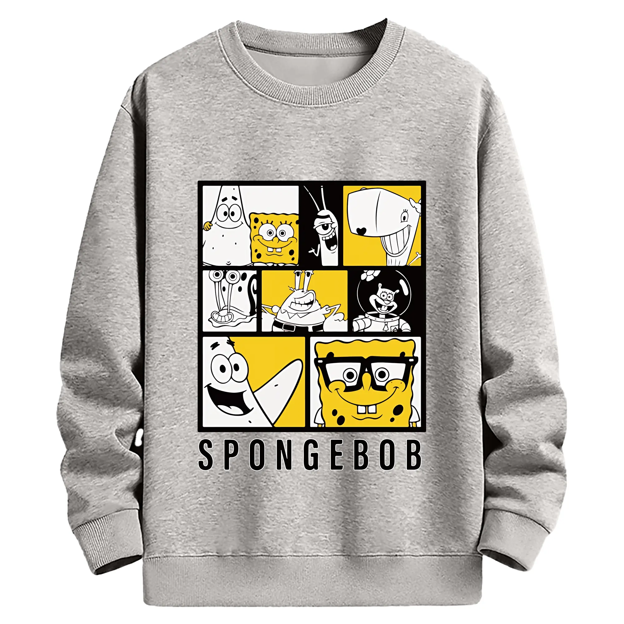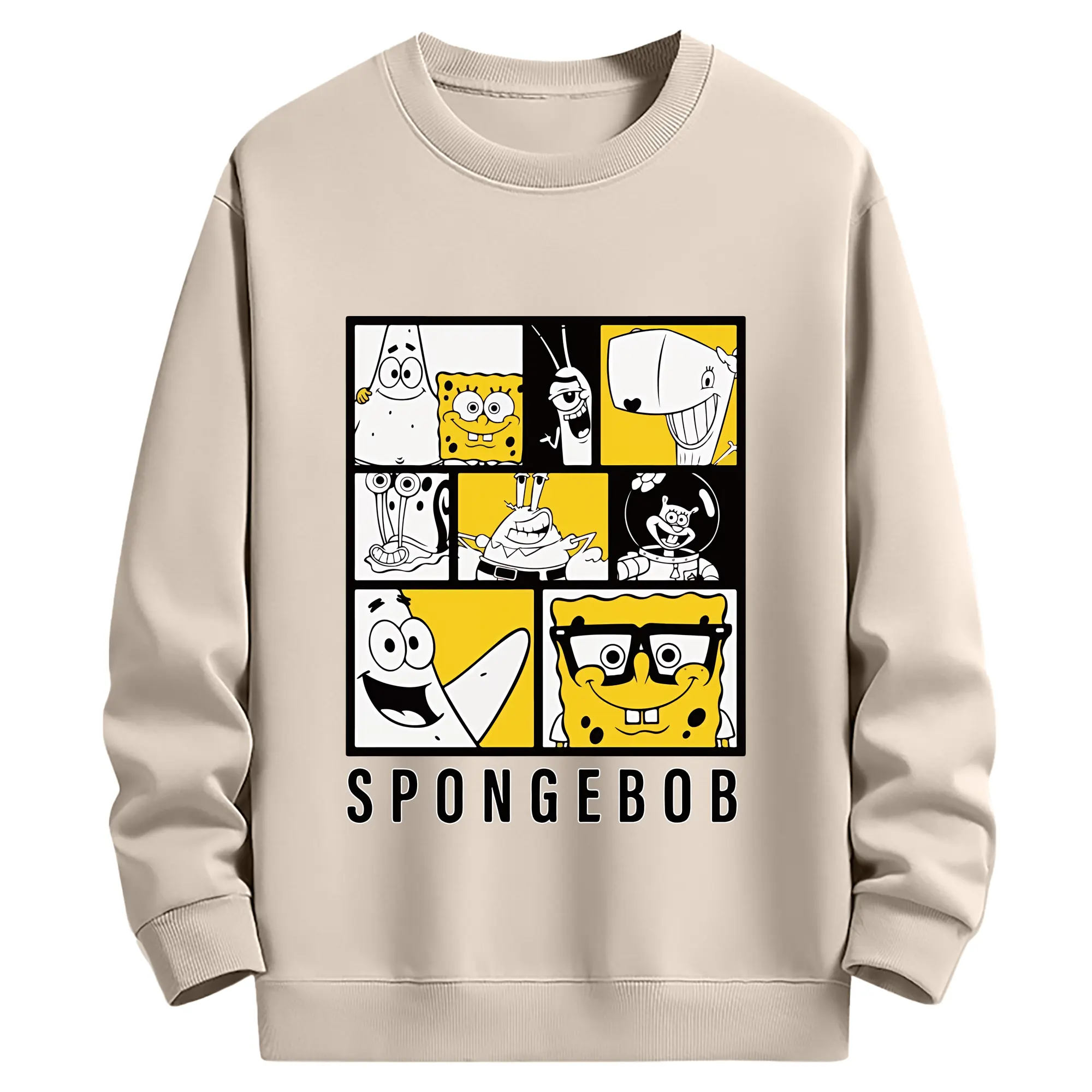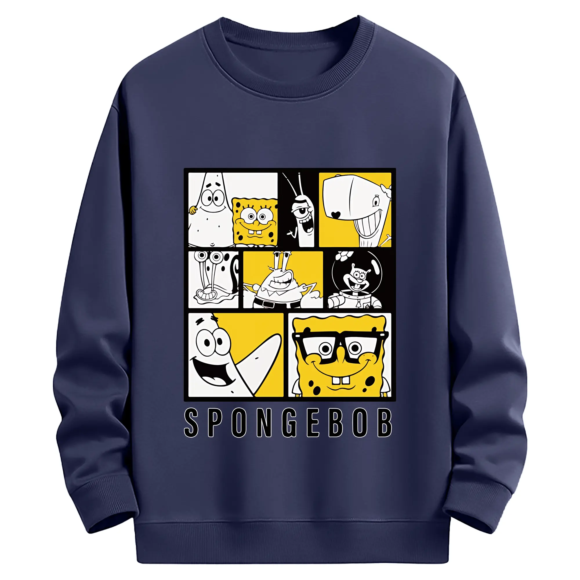 スポンジボブ グッズ スポンジボブ - 薄手 クルーネック スウェット 裏毛260g · ポリエステル 春秋向け カジュアル 男女兼用 · トレーナー デイリー スポーツ 散歩に最適