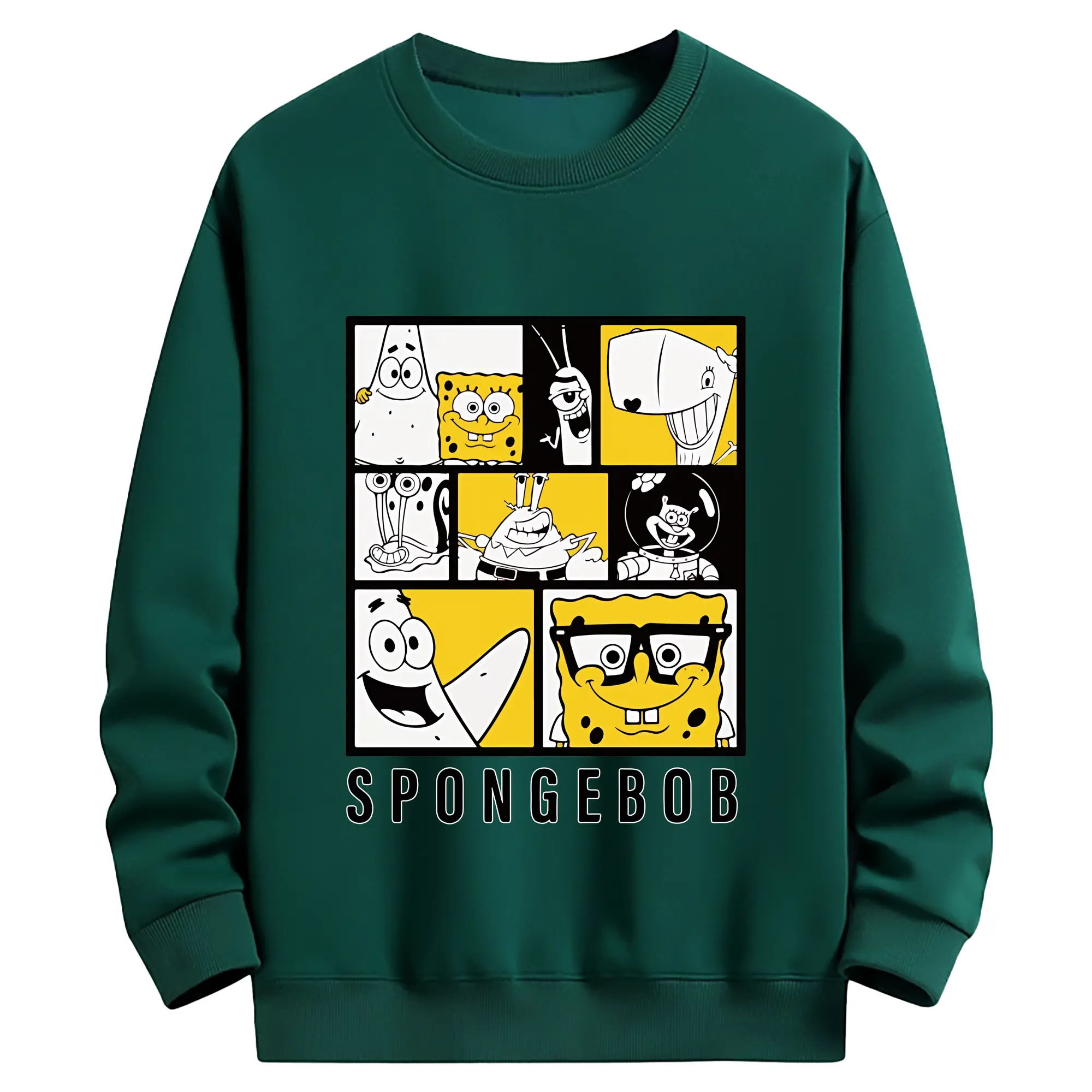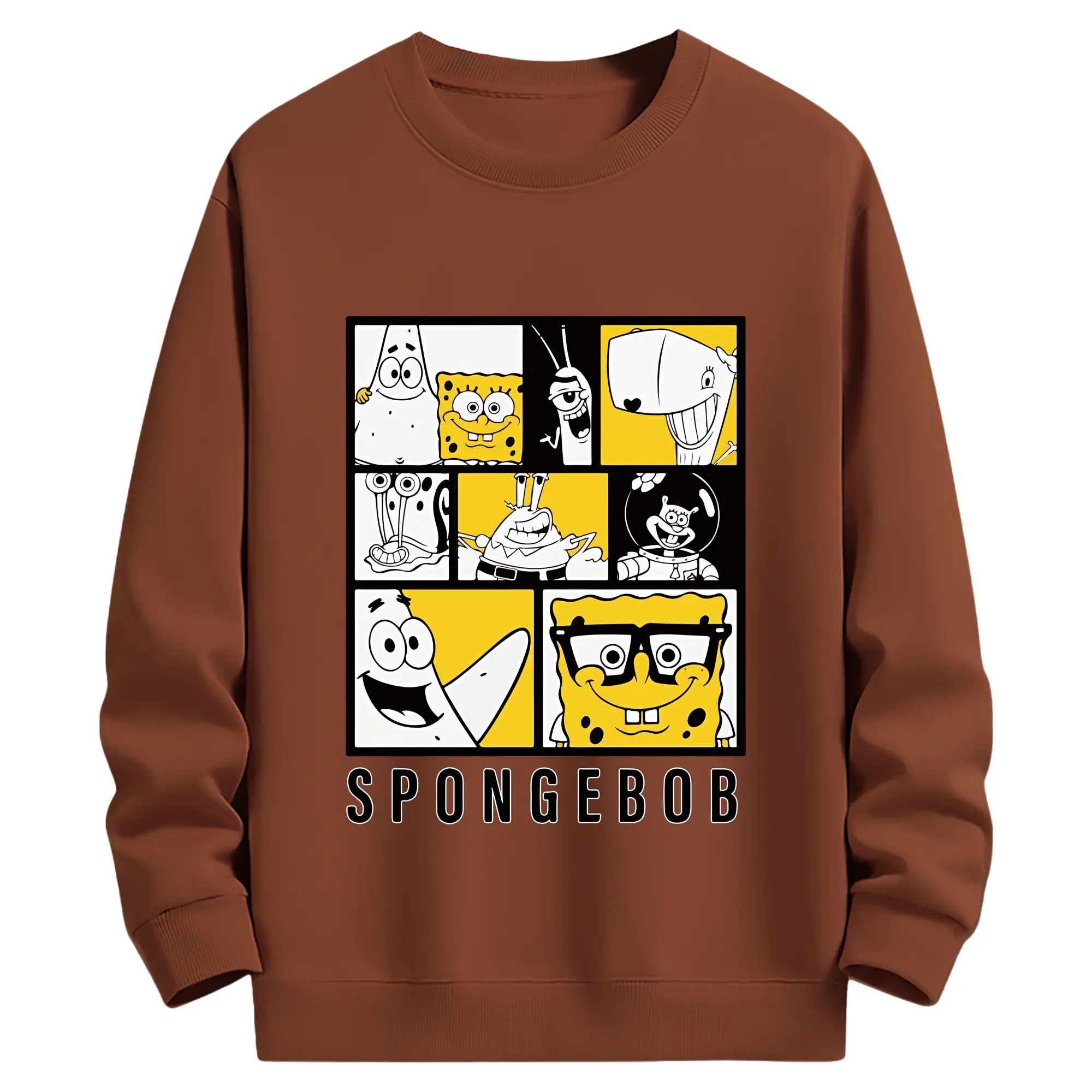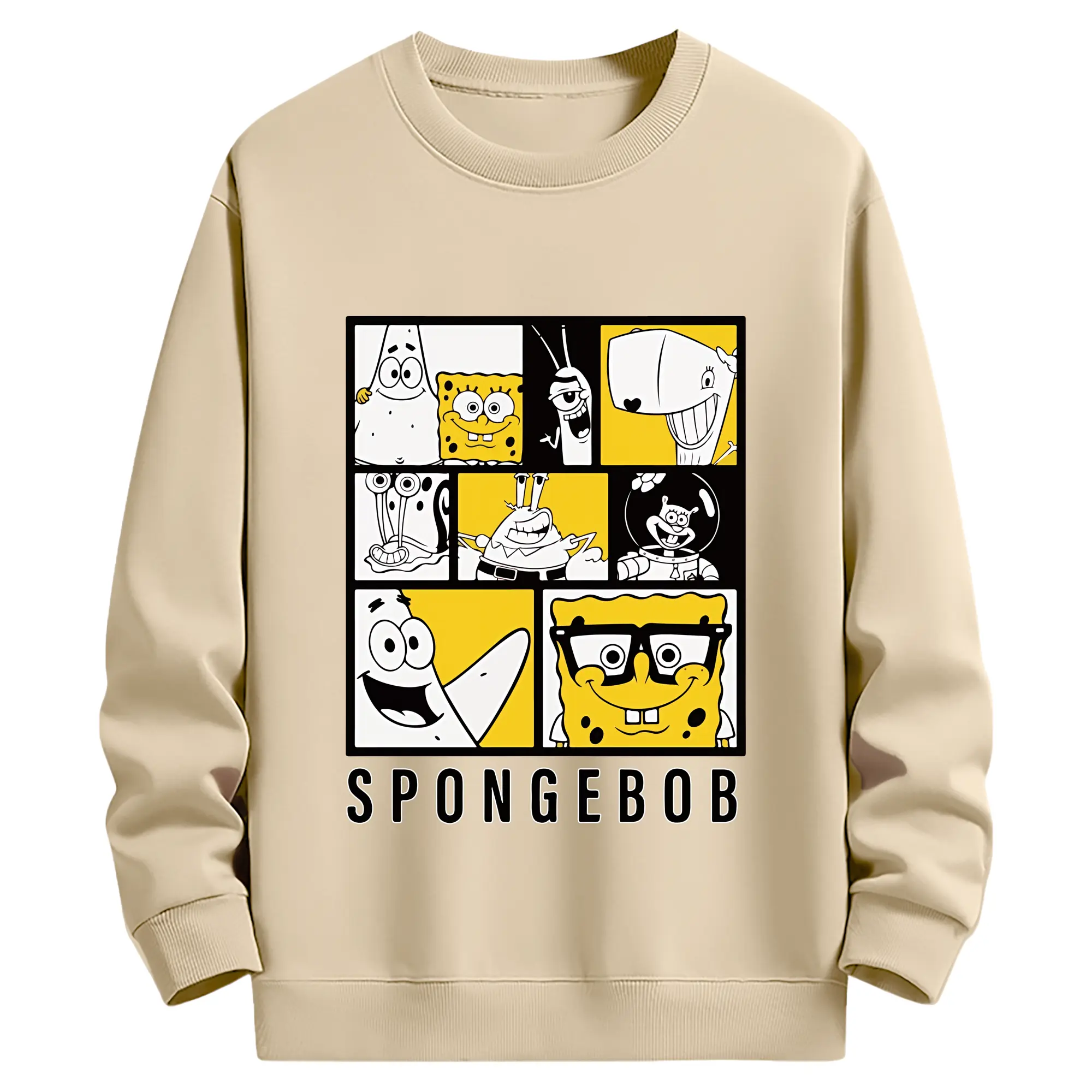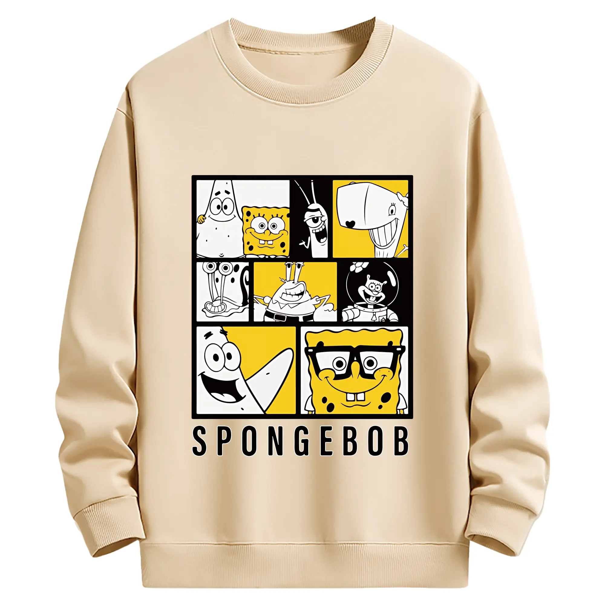 スポンジボブ グッズ スポンジボブ - 薄手 クルーネック スウェット 裏毛260g · ポリエステル 春秋向け カジュアル 男女兼用 · トレーナー デイリー スポーツ 散歩に最適