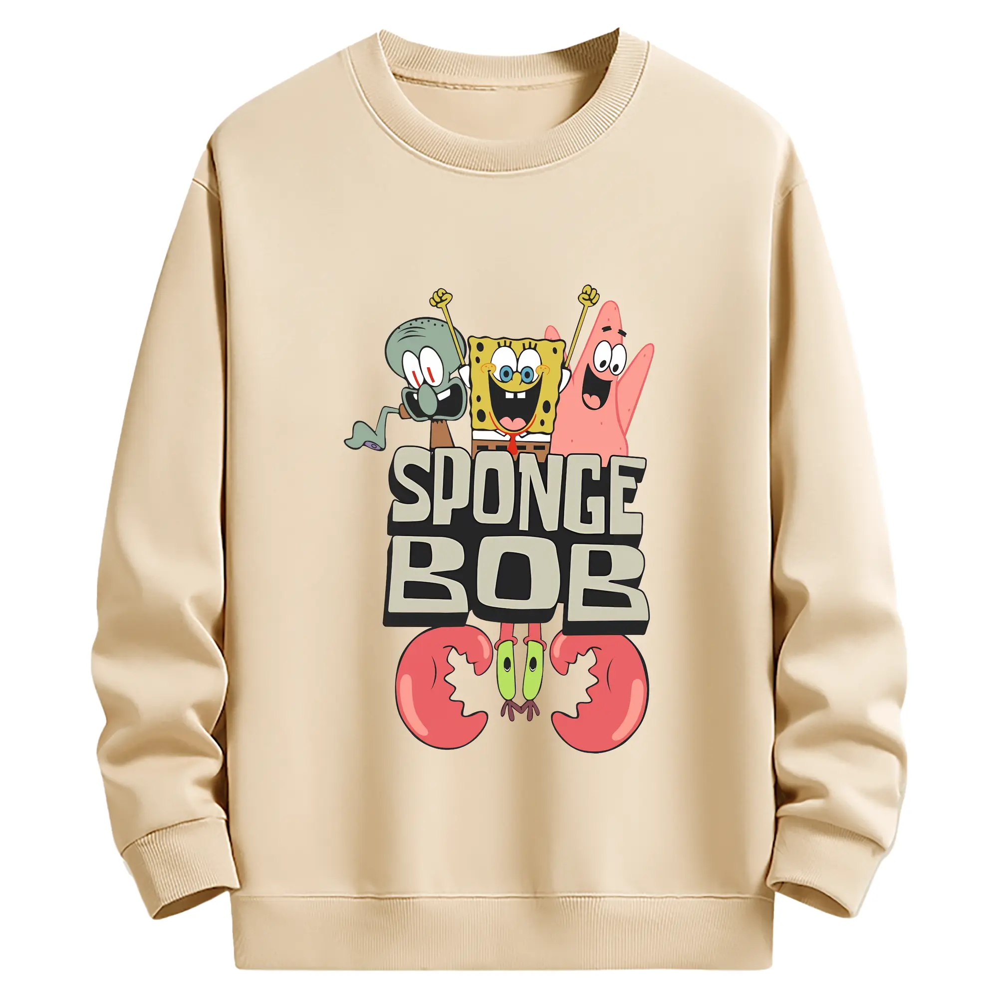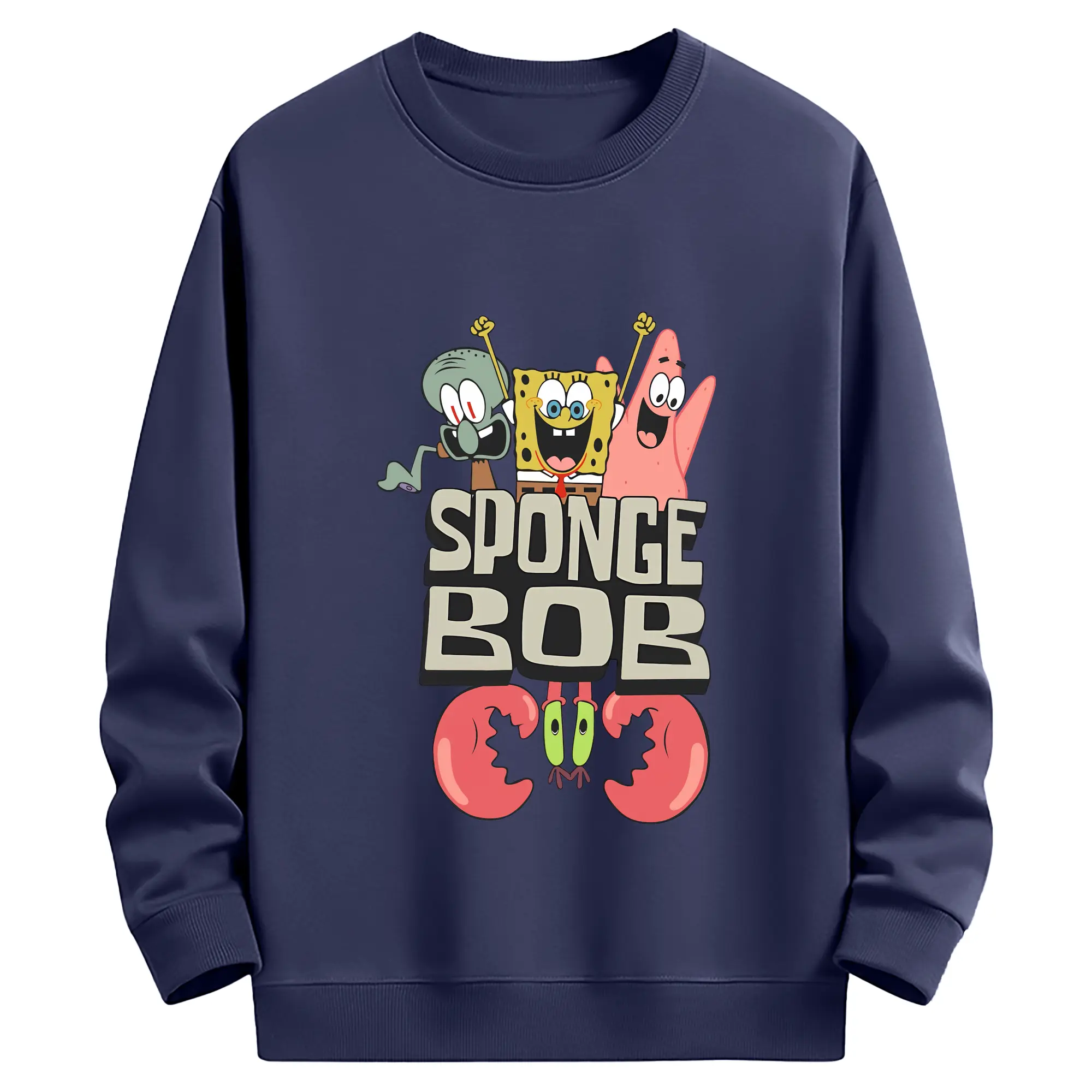 スポンジボブ グッズ スポンジボブ - 薄手 クルーネック スウェット 裏毛260g · ポリエステル 春秋向け カジュアル 男女兼用 · トレーナー デイリー スポーツ 散歩に最適