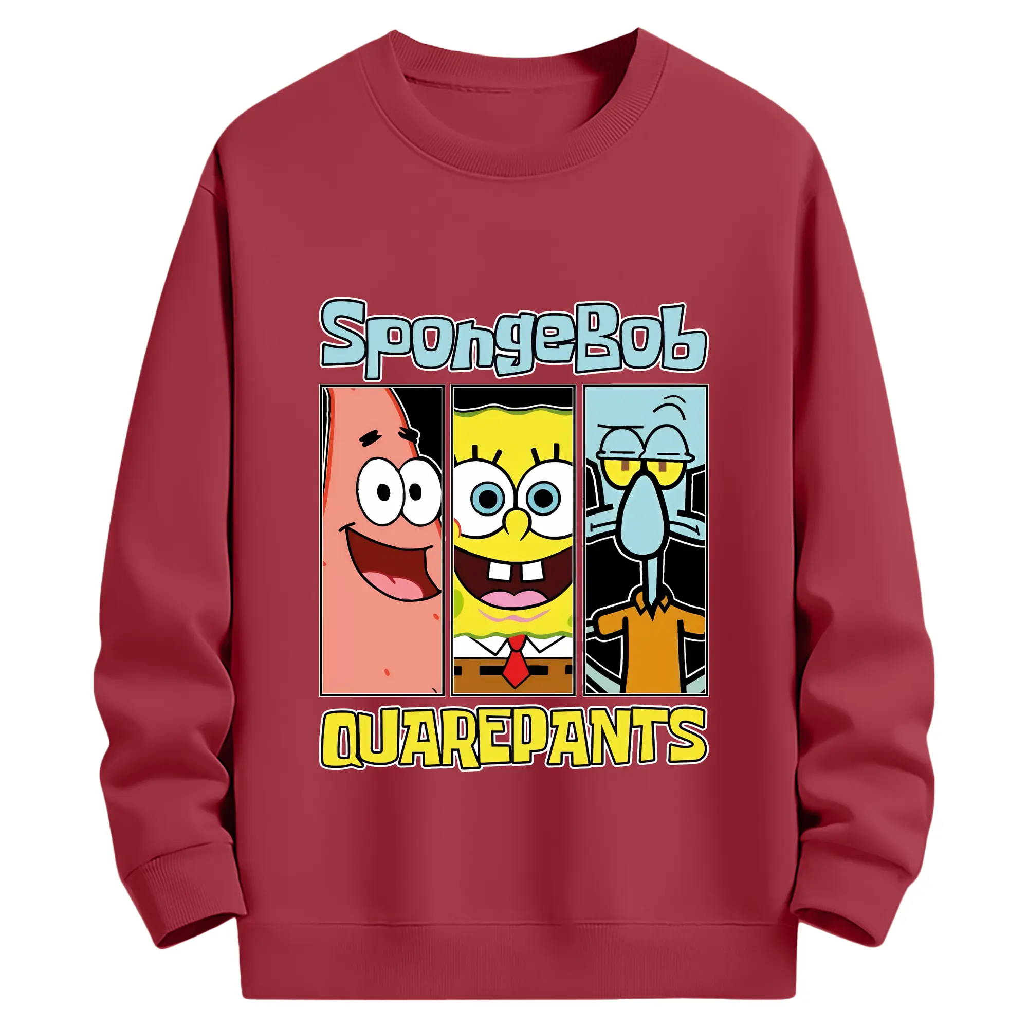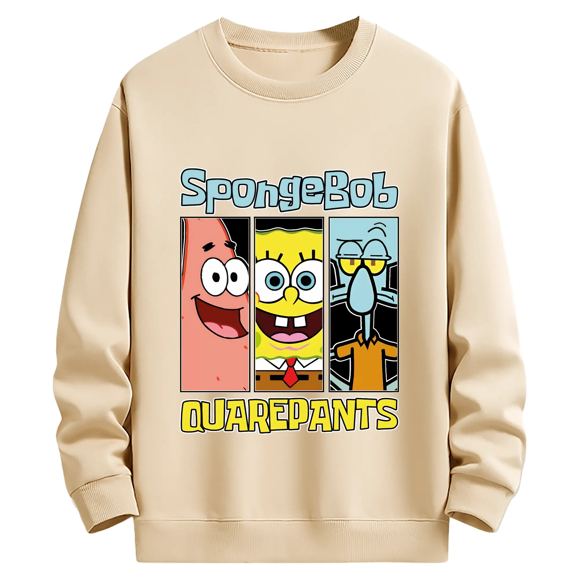 スポンジボブ グッズ スポンジボブ - 薄手 クルーネック スウェット 裏毛260g · ポリエステル 春秋向け カジュアル 男女兼用 · トレーナー デイリー スポーツ 散歩に最適