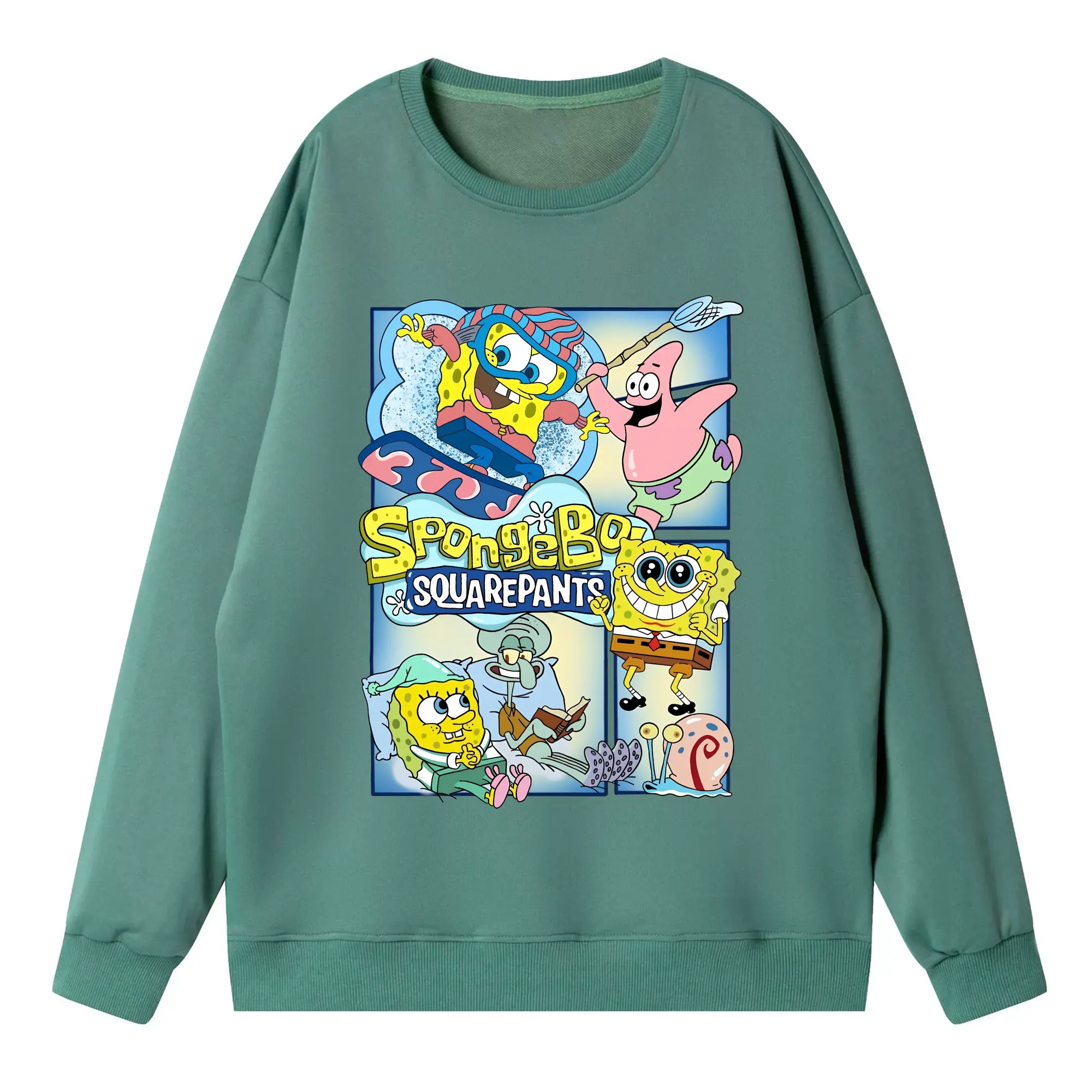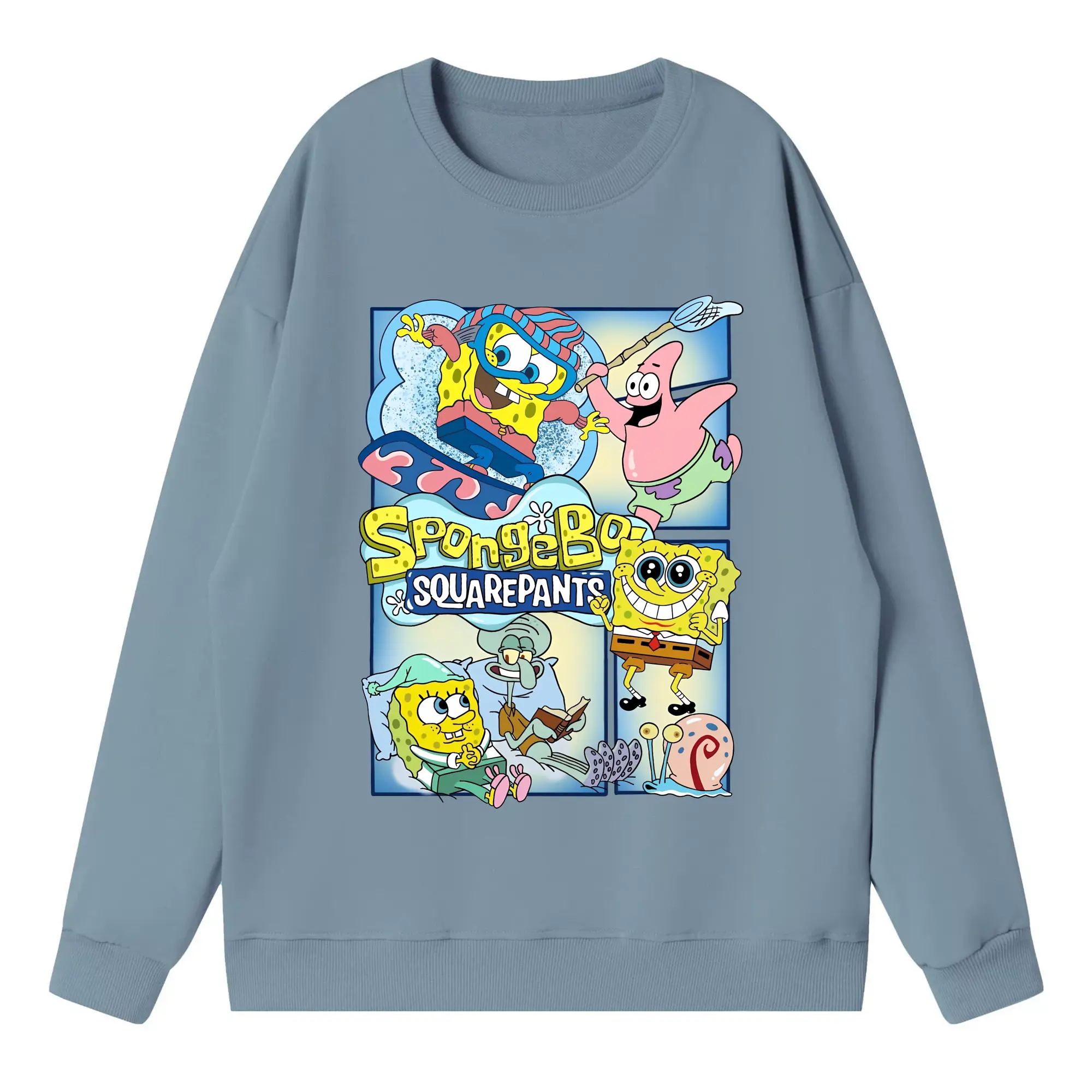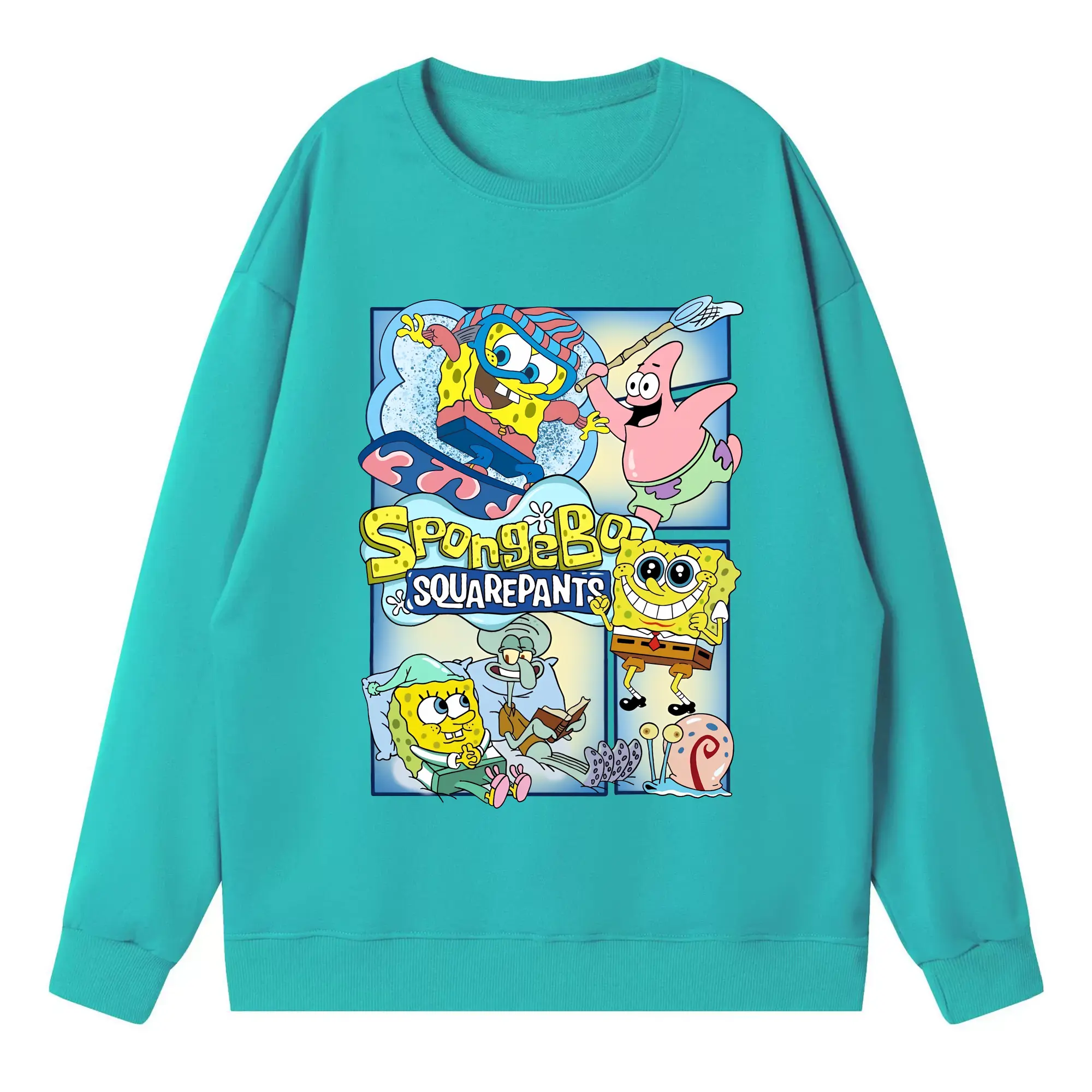 スポンジボブ グッズ スポンジボブ - 高品質 クルーネック スウェット ・ コットン59% ポリエステル41% ・ ユニセックス 長袖 トレーナー ・ カジュアル デイリー スポーツ 散歩用