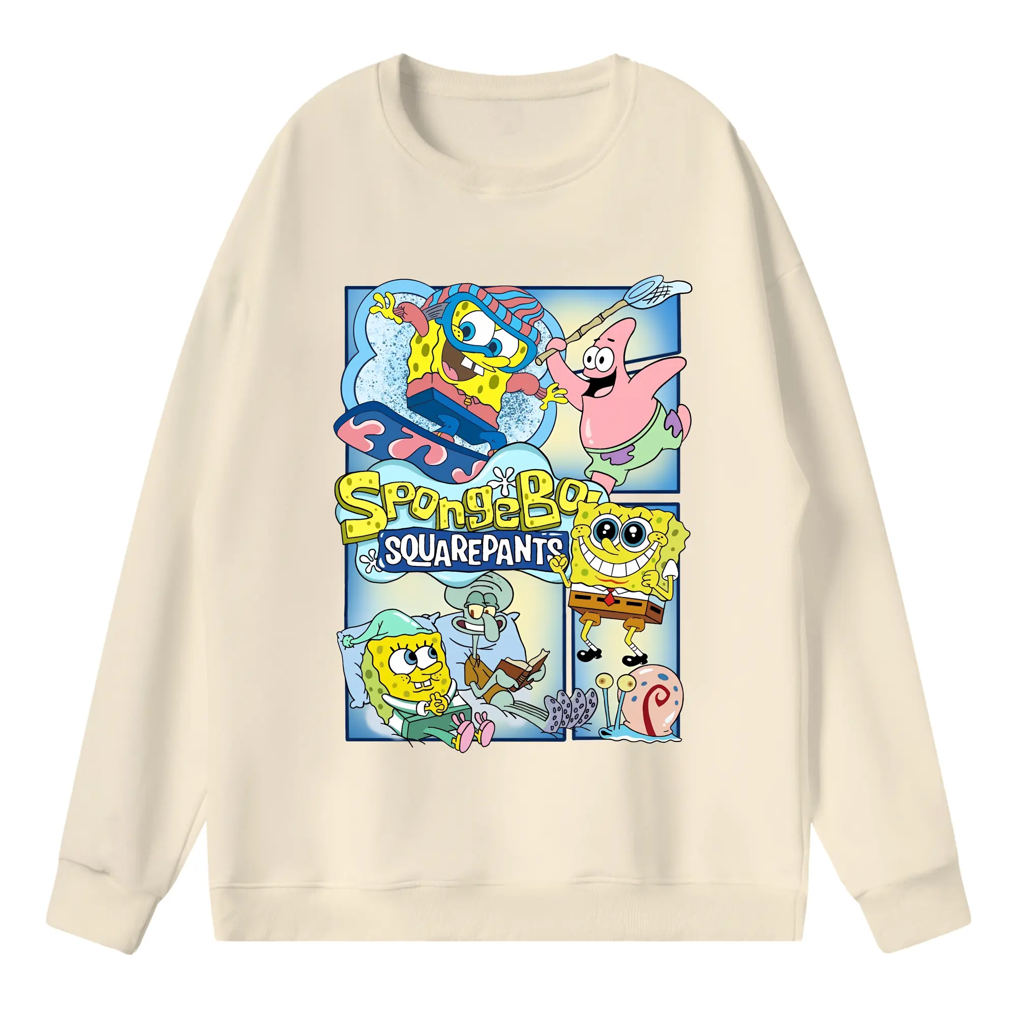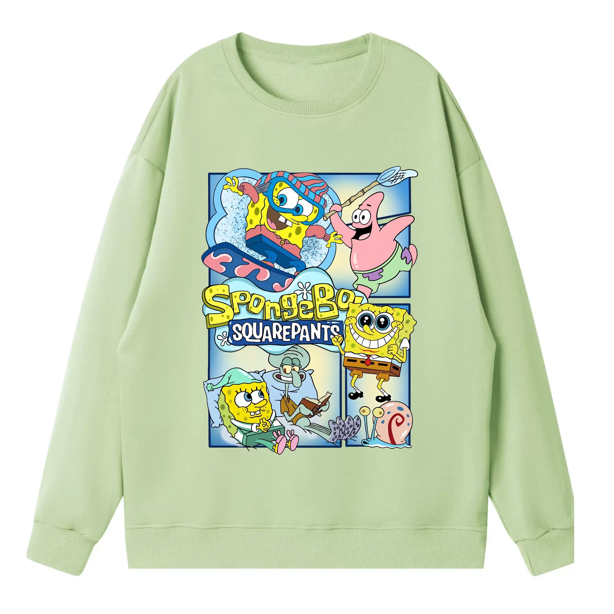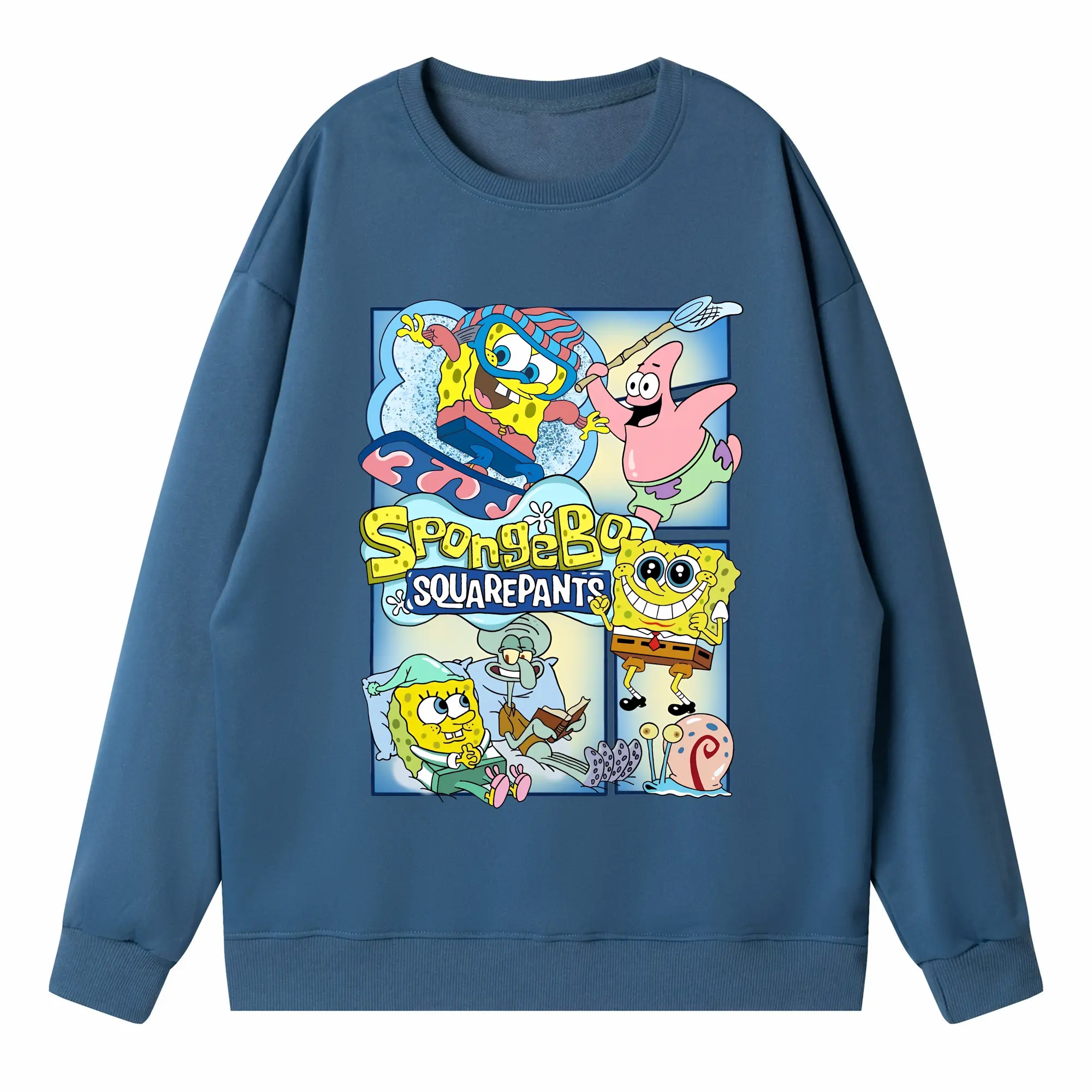 スポンジボブ グッズ スポンジボブ - 高品質 クルーネック スウェット ・ コットン59% ポリエステル41% ・ ユニセックス 長袖 トレーナー ・ カジュアル デイリー スポーツ 散歩用