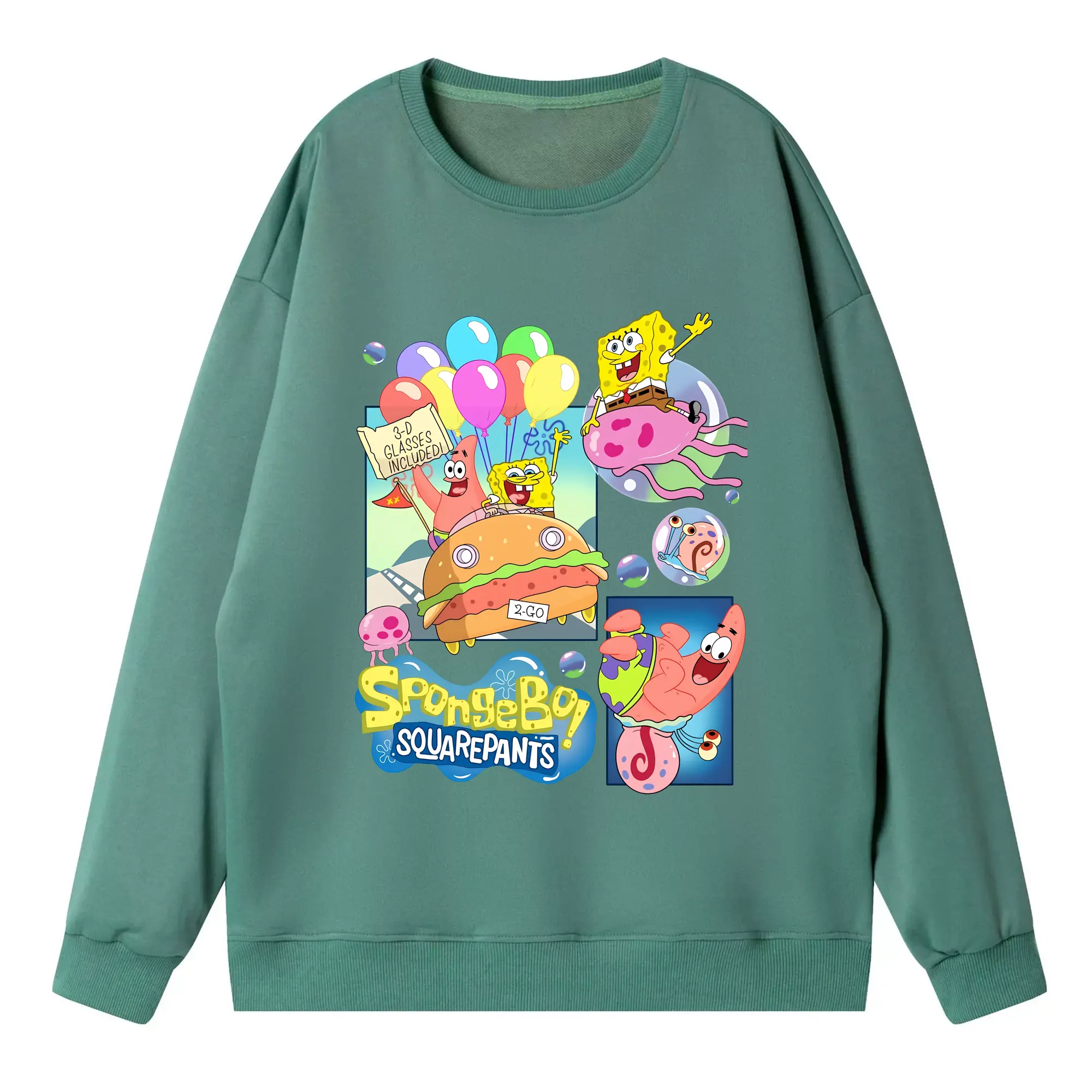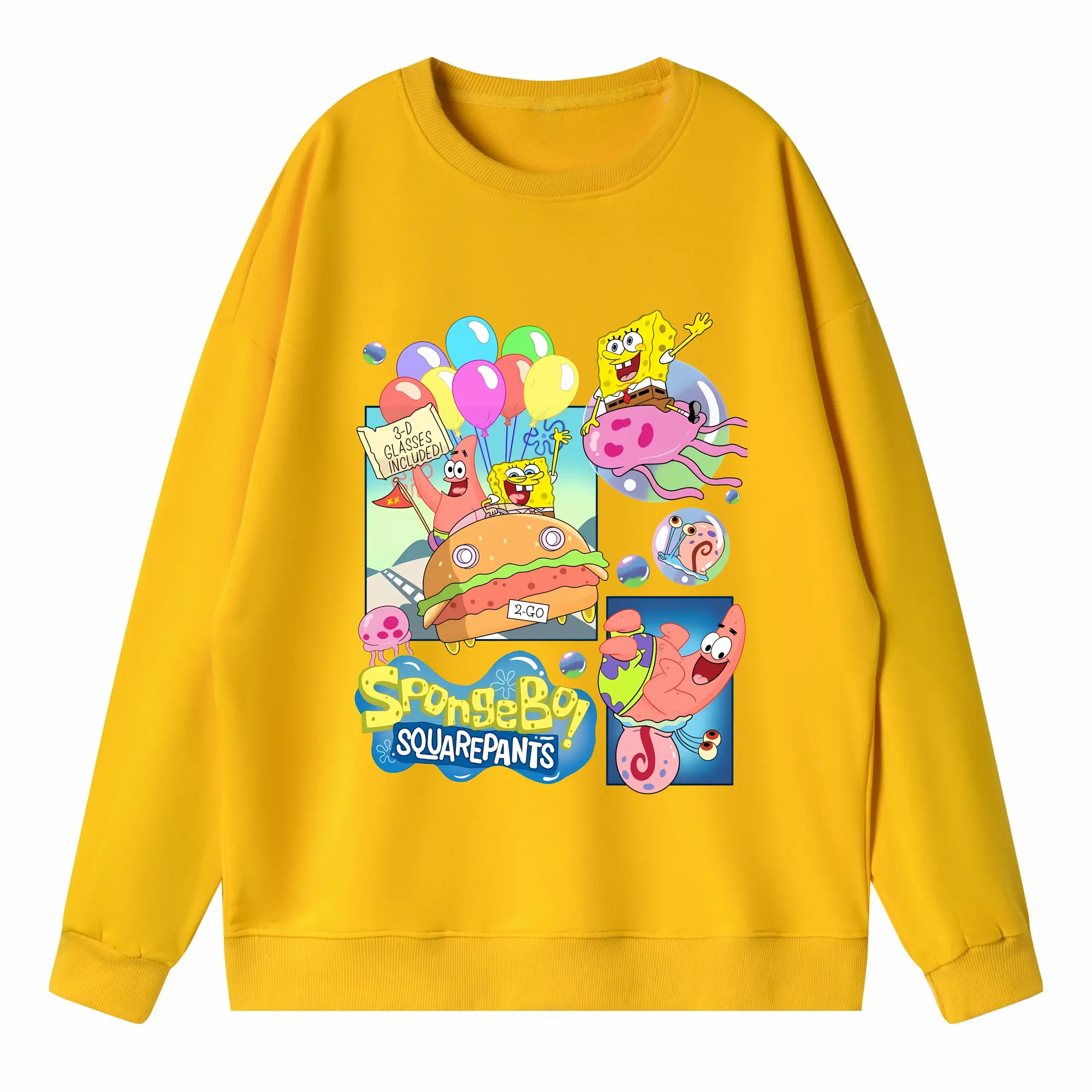 スポンジボブ グッズ スポンジボブ - キッズ クルーネックスウェットシャツ ・ フロントプリント ・ 綿80% ポリエステル20% ・ 快適 通学 スポーツ 日常使い お散歩用
