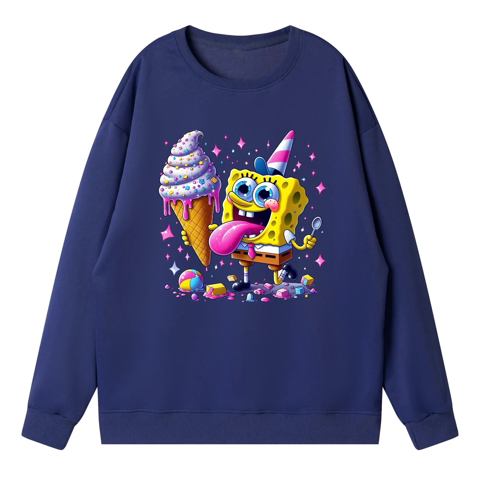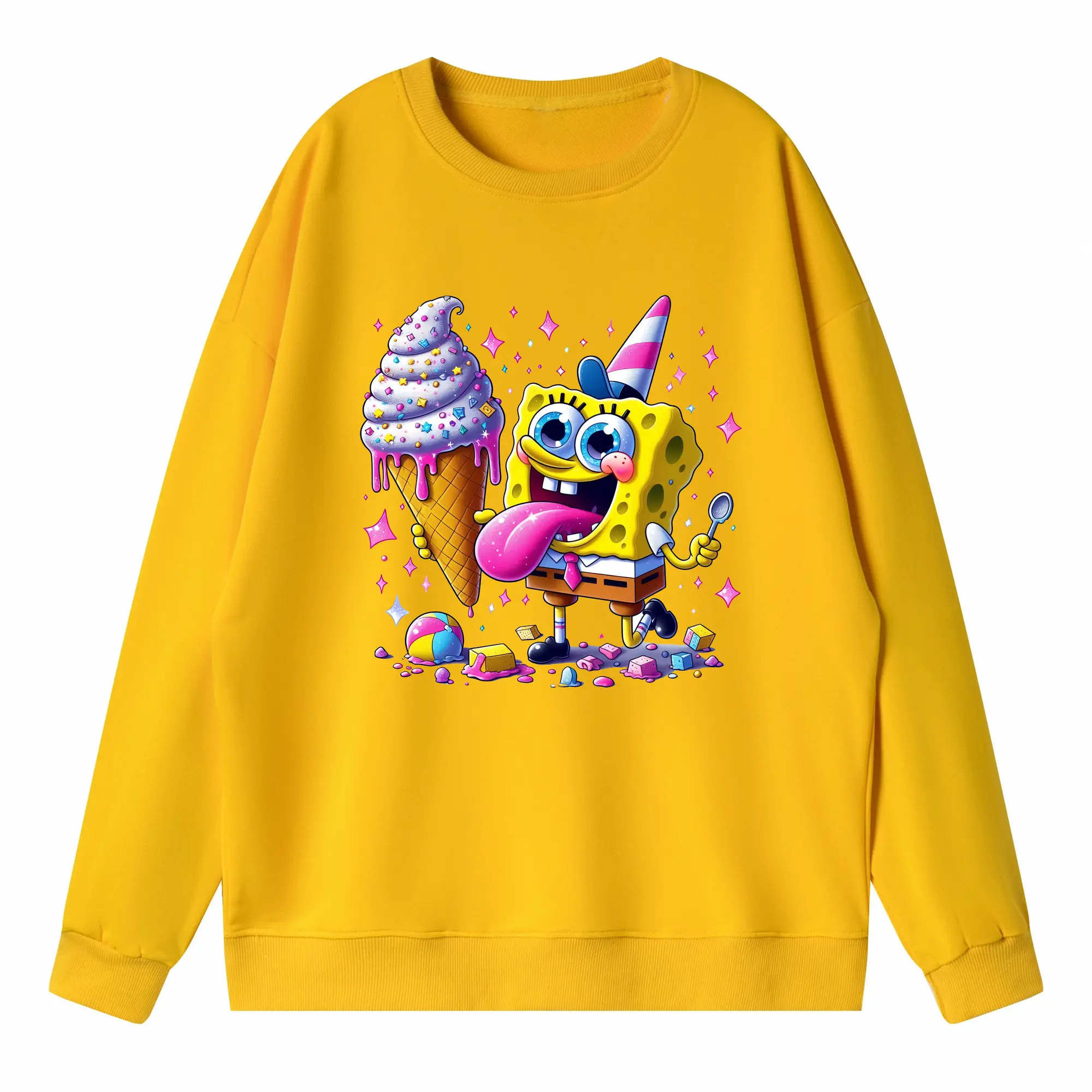 スポンジボブ グッズ スポンジボブ - キッズ クルーネックスウェットシャツ ・ フロントプリント ・ 綿80% ポリエステル20% ・ 快適 通学 スポーツ 日常使い お散歩用