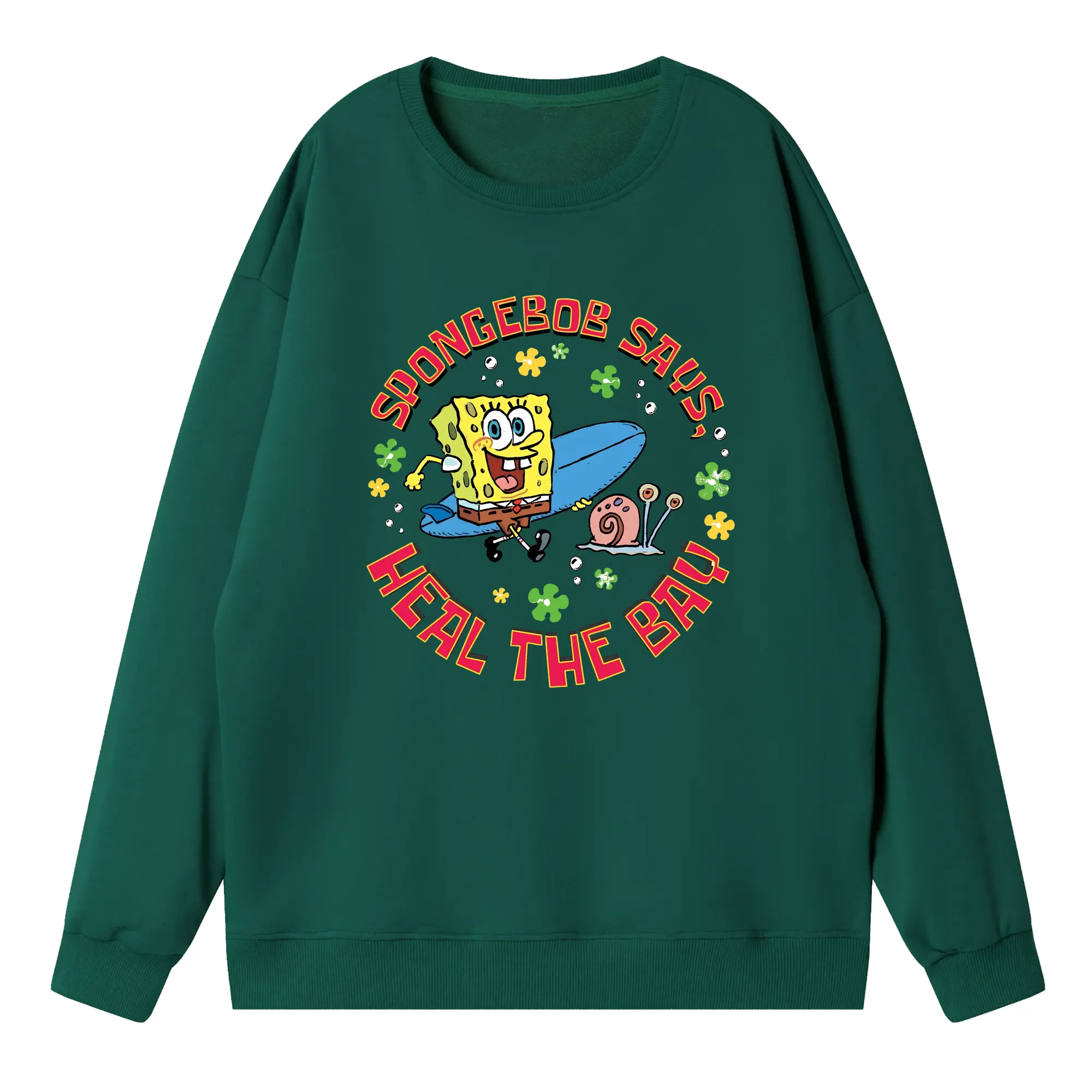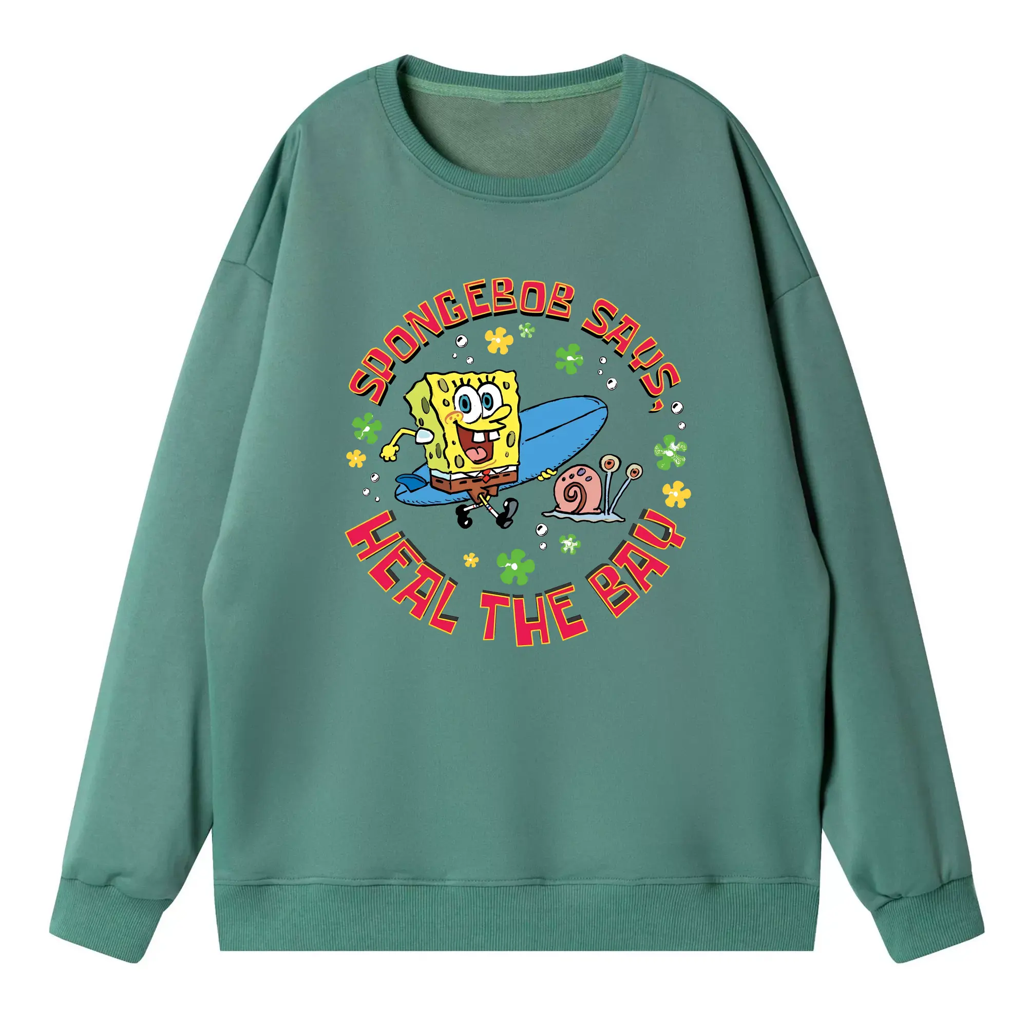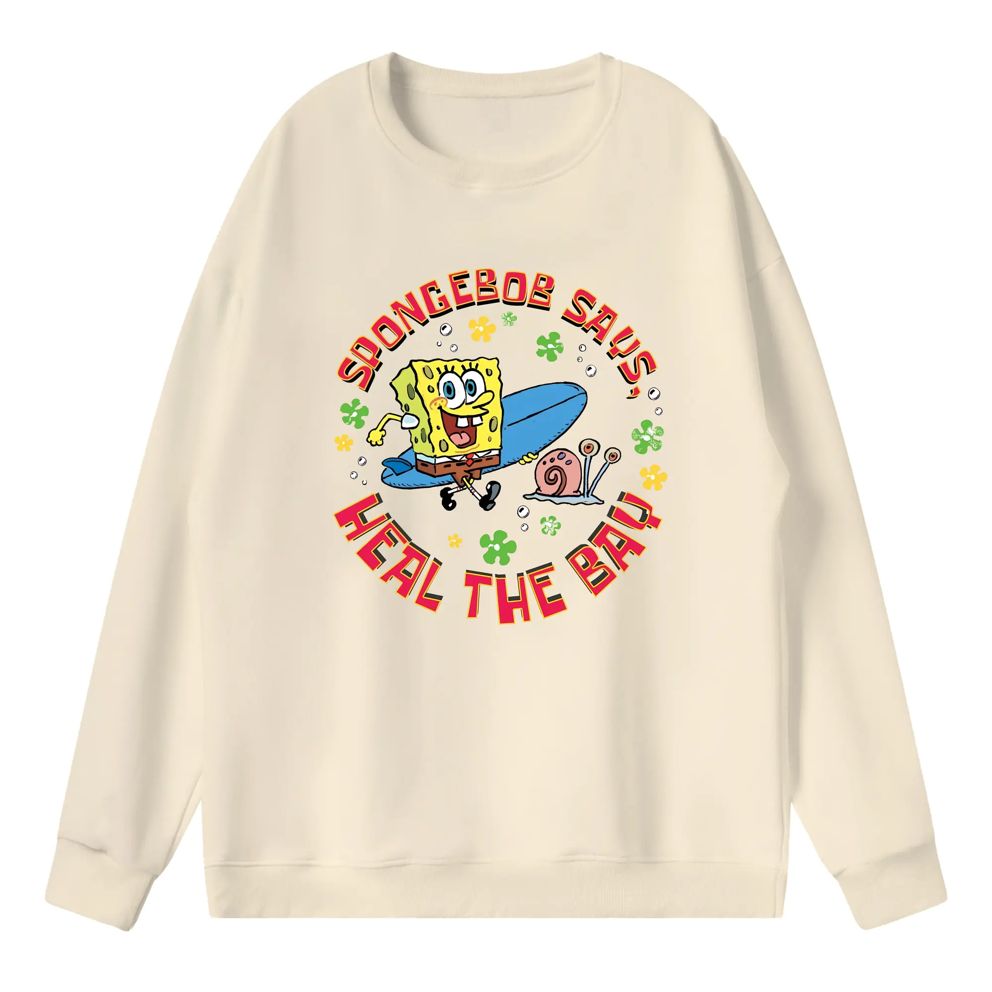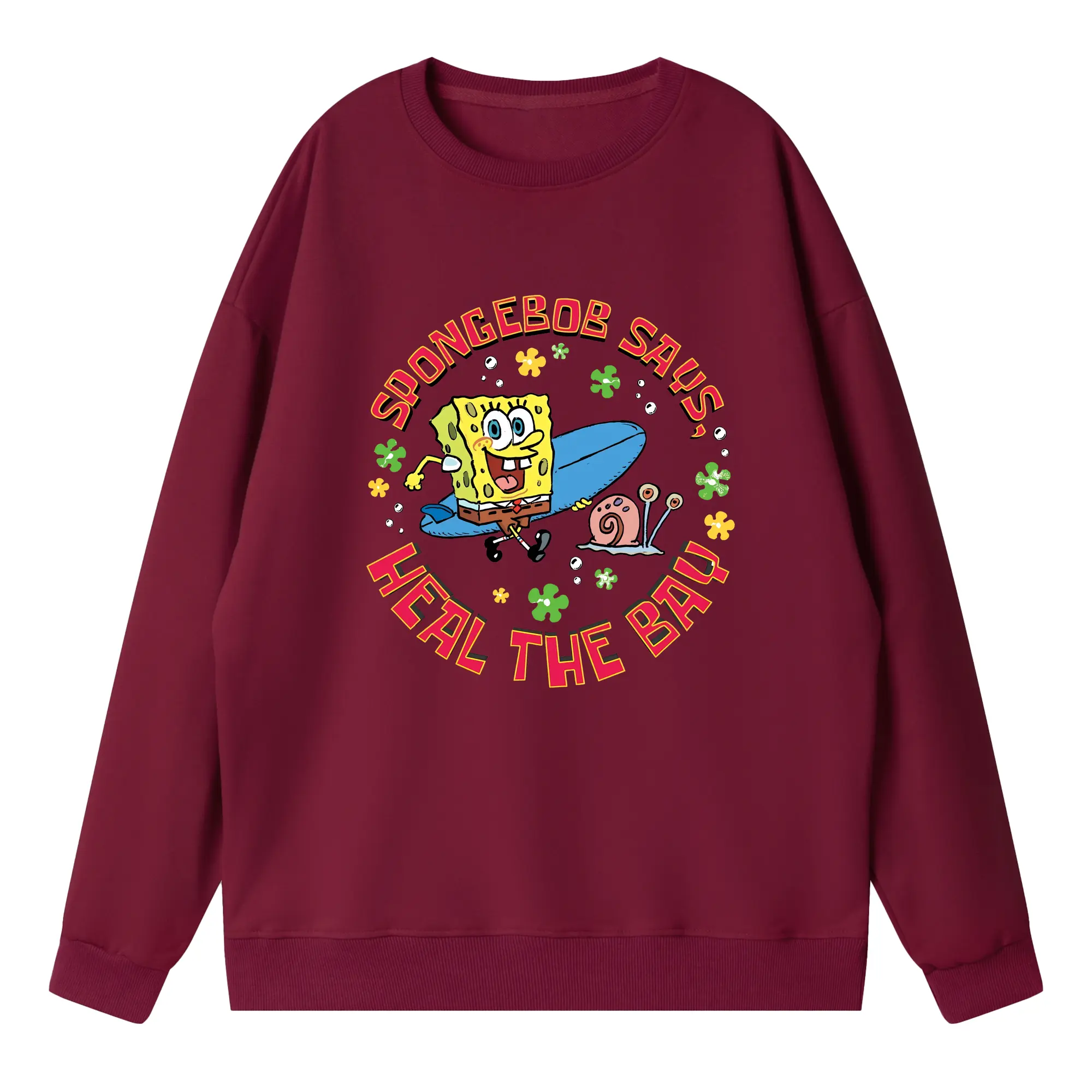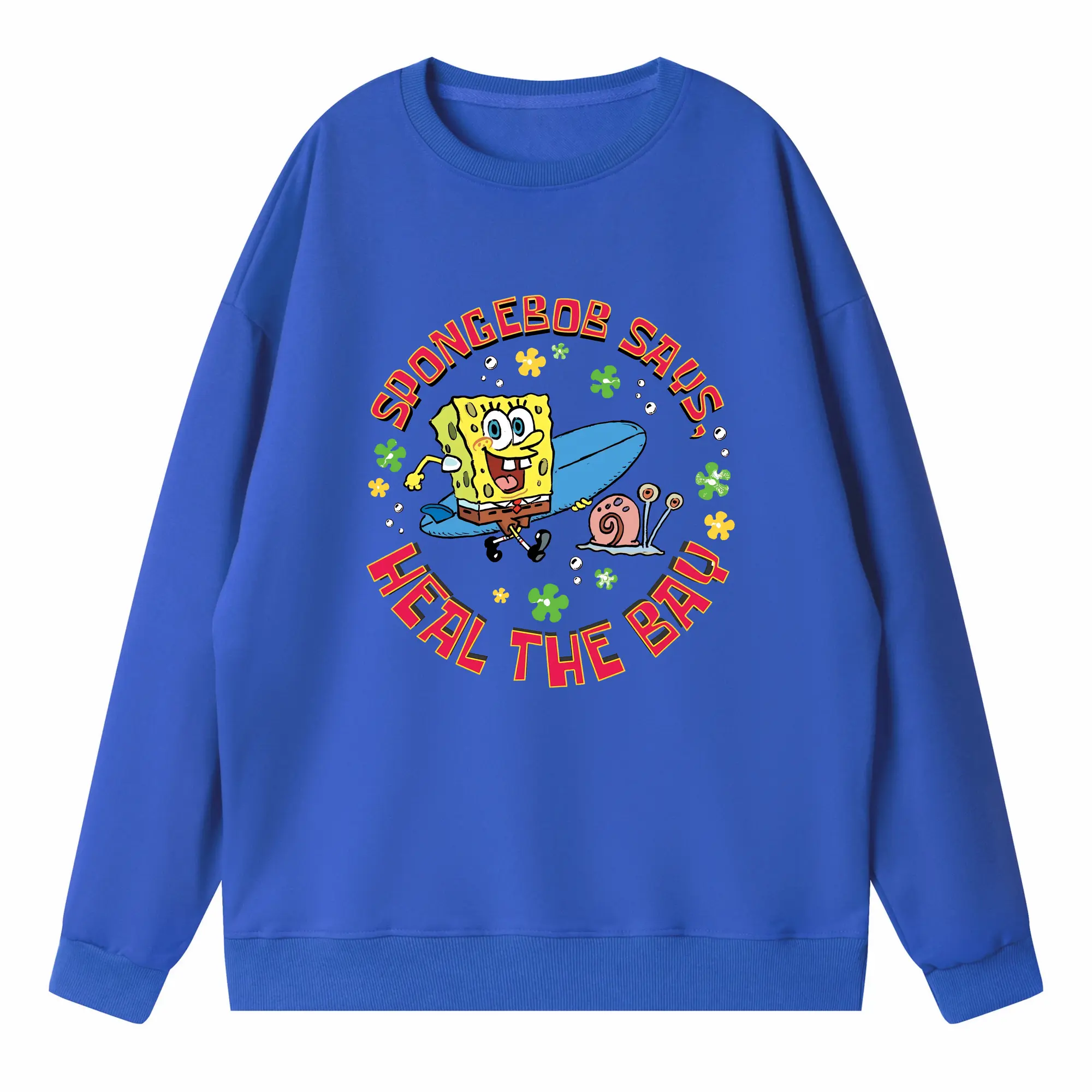 スポンジボブ グッズ スポンジボブ - キッズ クルーネックスウェットシャツ ・ フロントプリント ・ 綿80% ポリエステル20% ・ 快適 通学 スポーツ 日常使い お散歩用