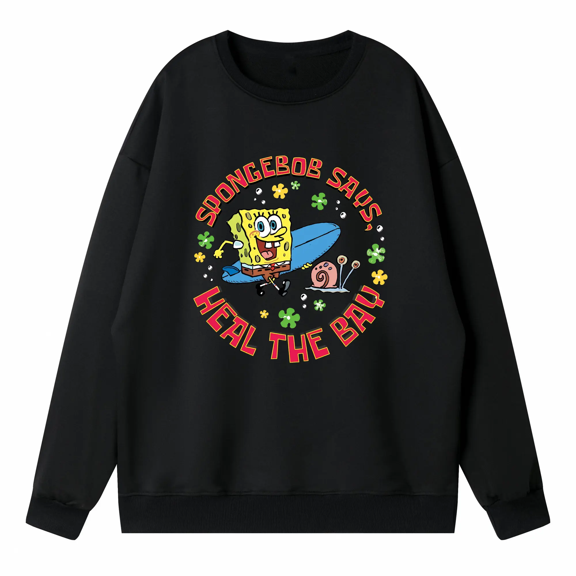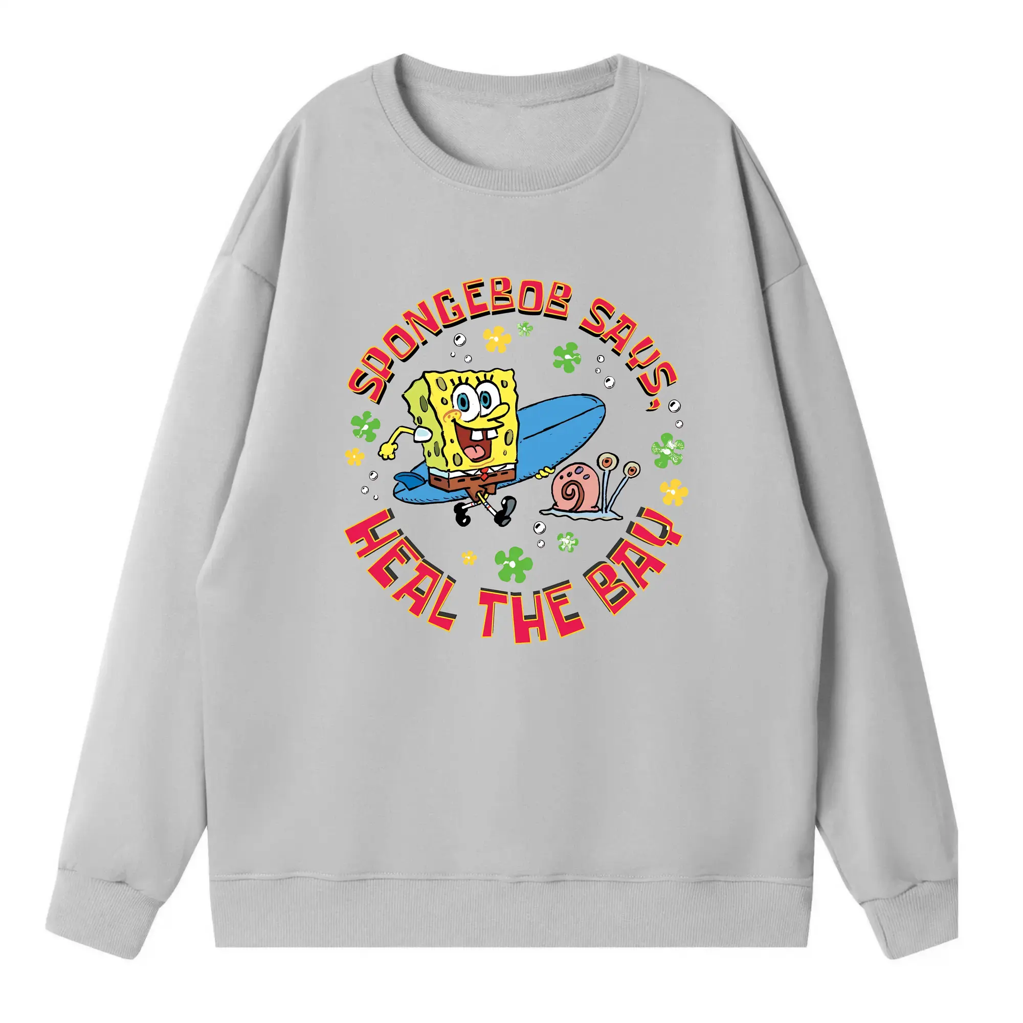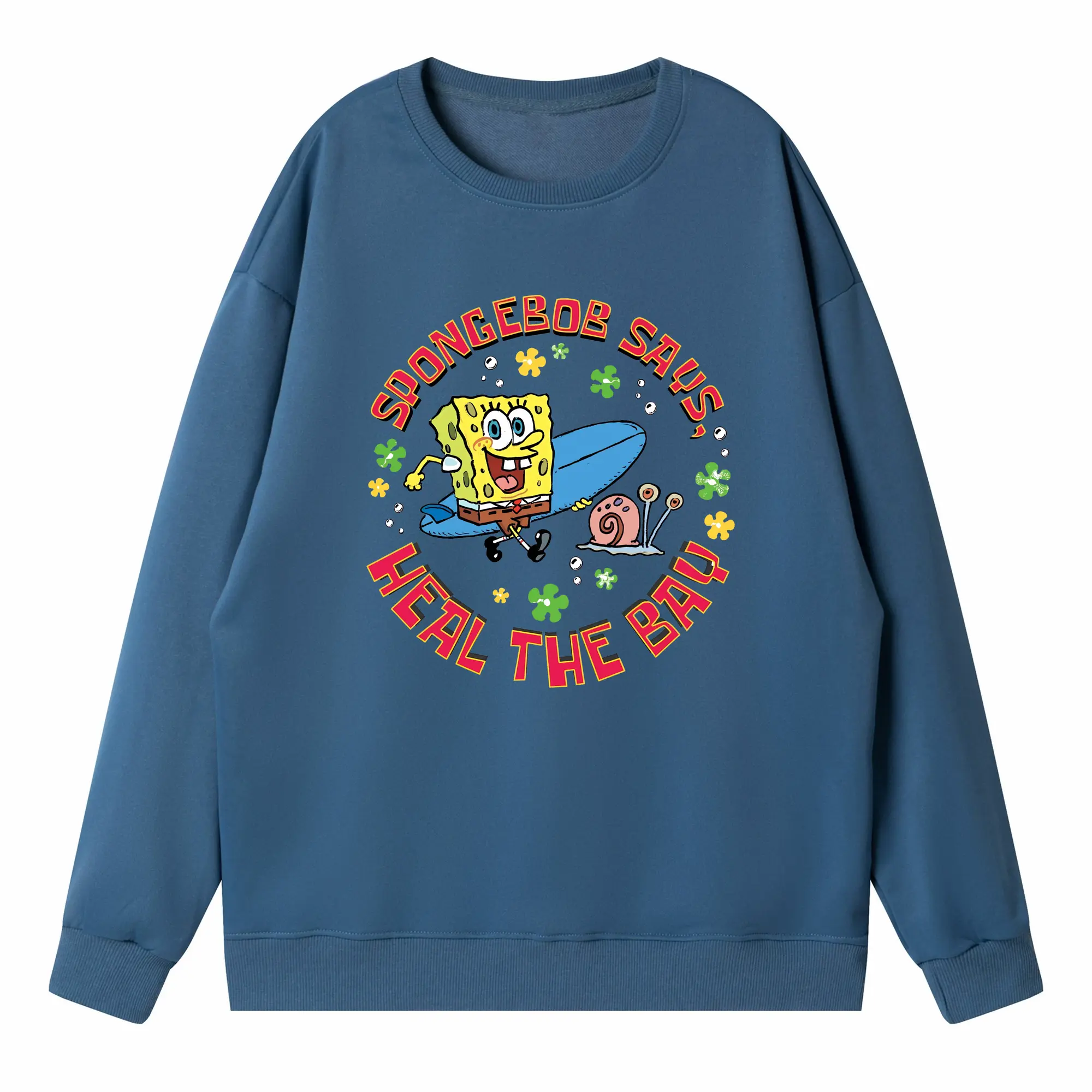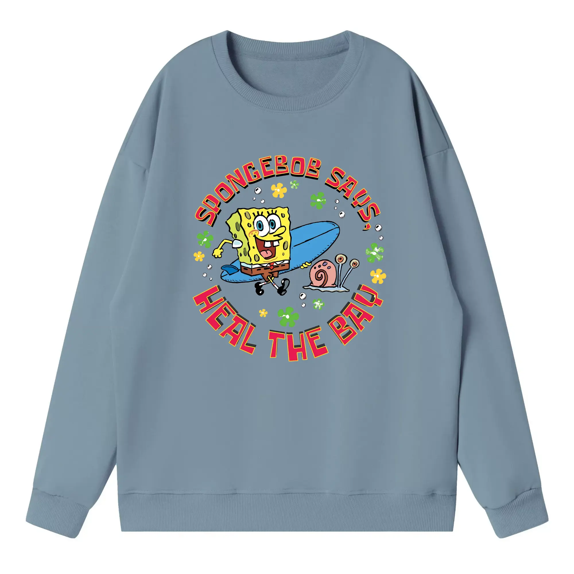 スポンジボブ グッズ スポンジボブ - 高品質 クルーネック スウェット ・ コットン59% ポリエステル41% ・ ユニセックス 長袖 トレーナー ・ カジュアル デイリー スポーツ 散歩用