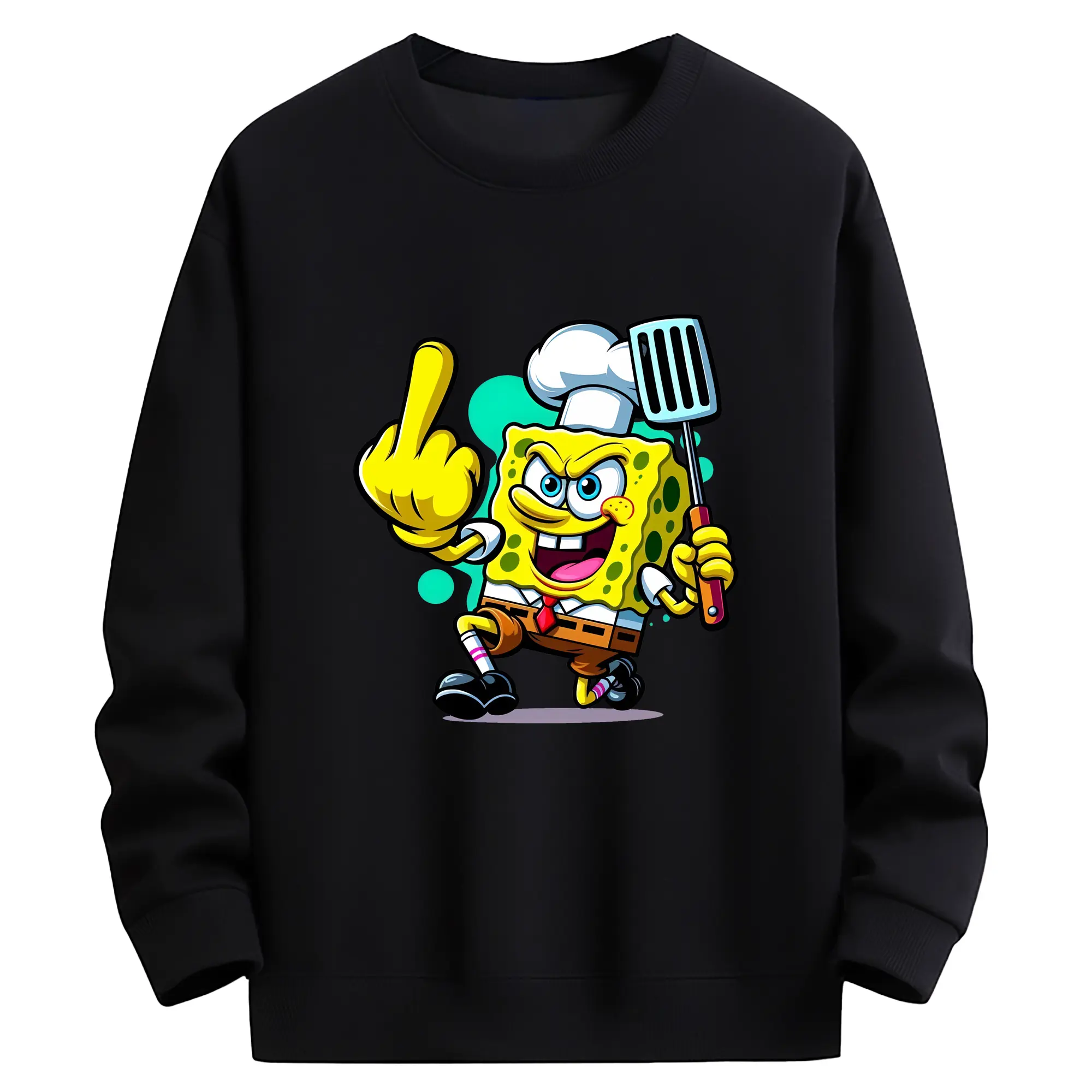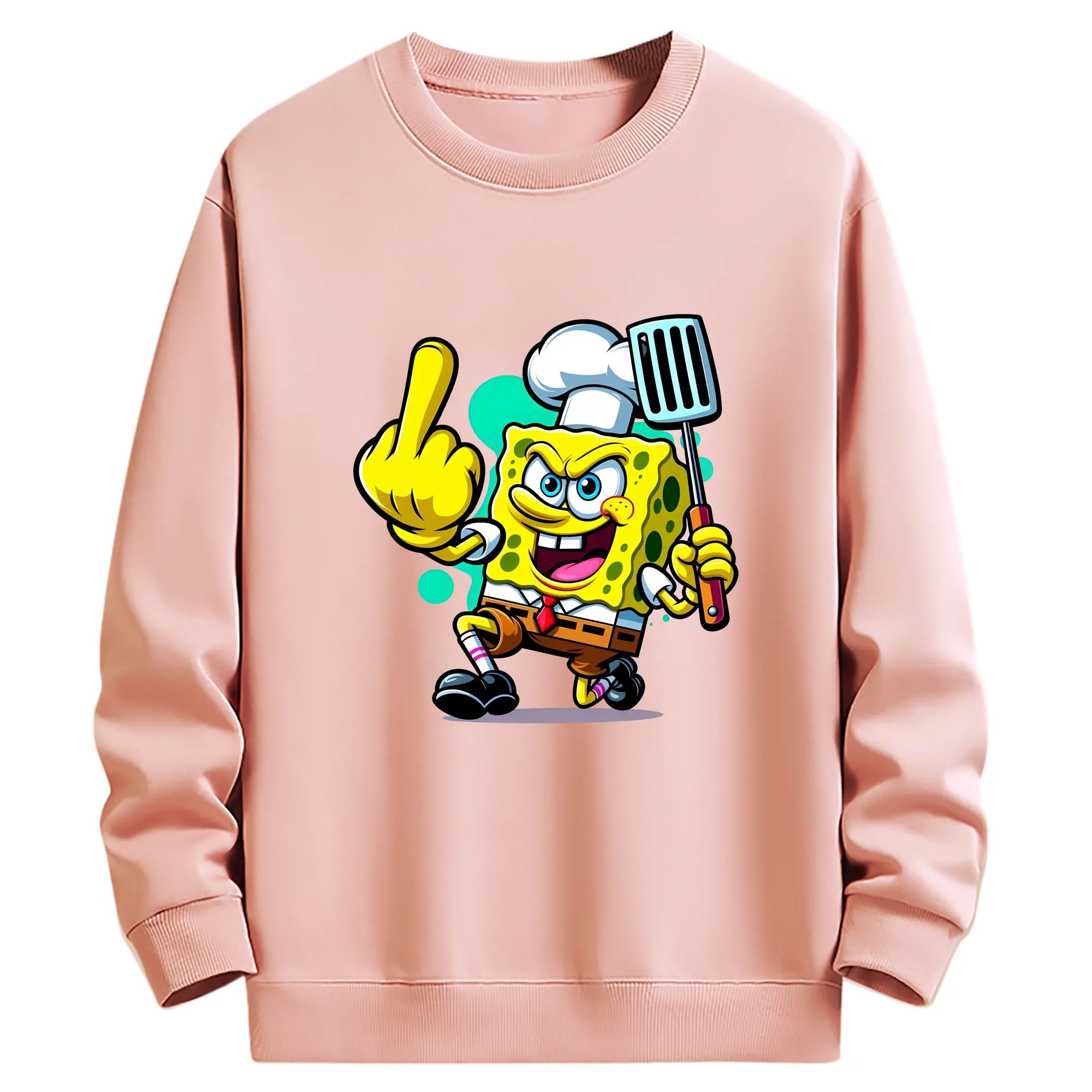 スポンジボブ グッズ スポンジボブ - 薄手 クルーネック スウェット 裏毛260g · ポリエステル 春秋向け カジュアル 男女兼用 · トレーナー デイリー スポーツ 散歩に最適