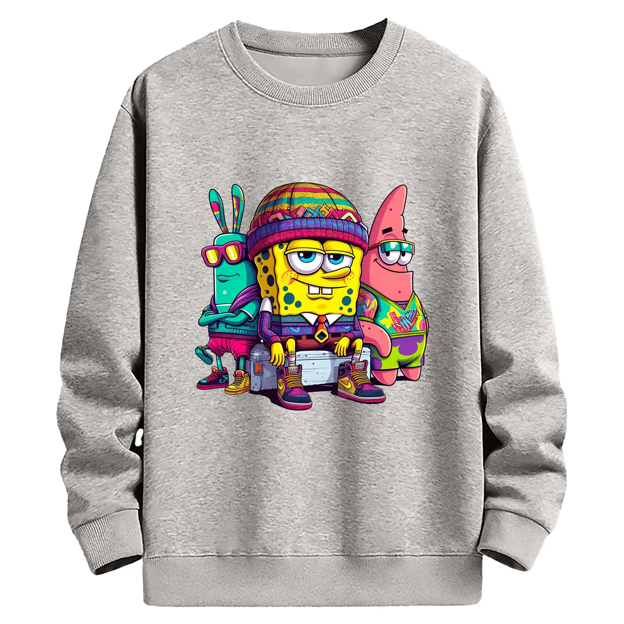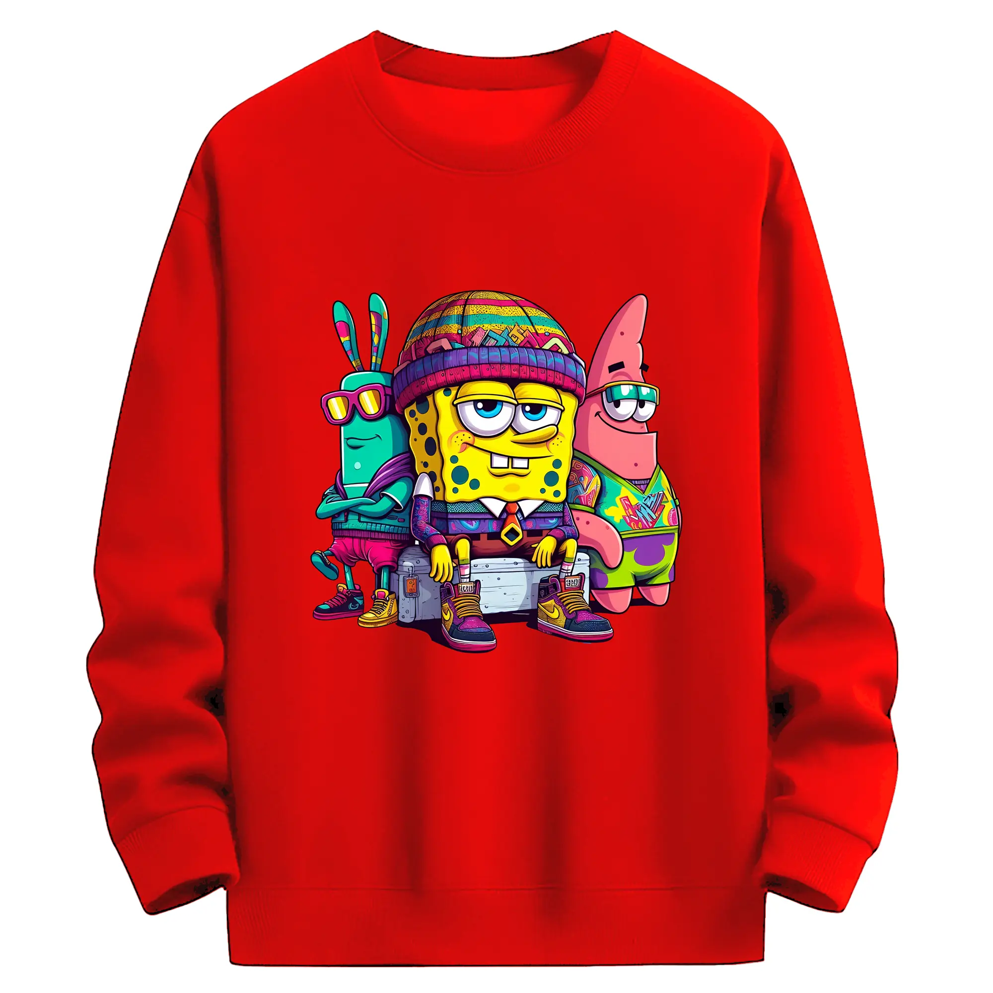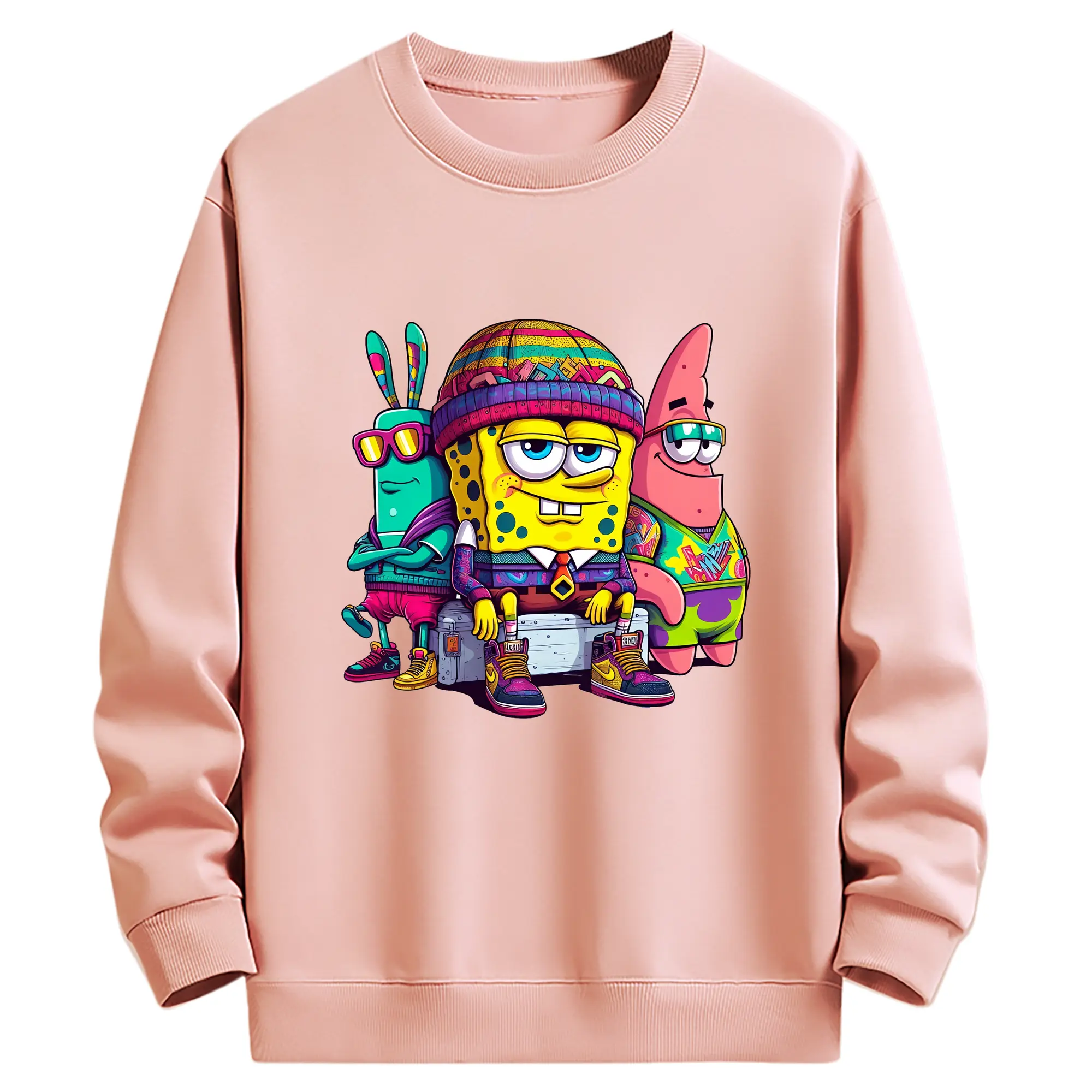 スポンジボブ グッズ スポンジボブ - 薄手 クルーネック スウェット 裏毛260g · ポリエステル 春秋向け カジュアル 男女兼用 · トレーナー デイリー スポーツ 散歩に最適