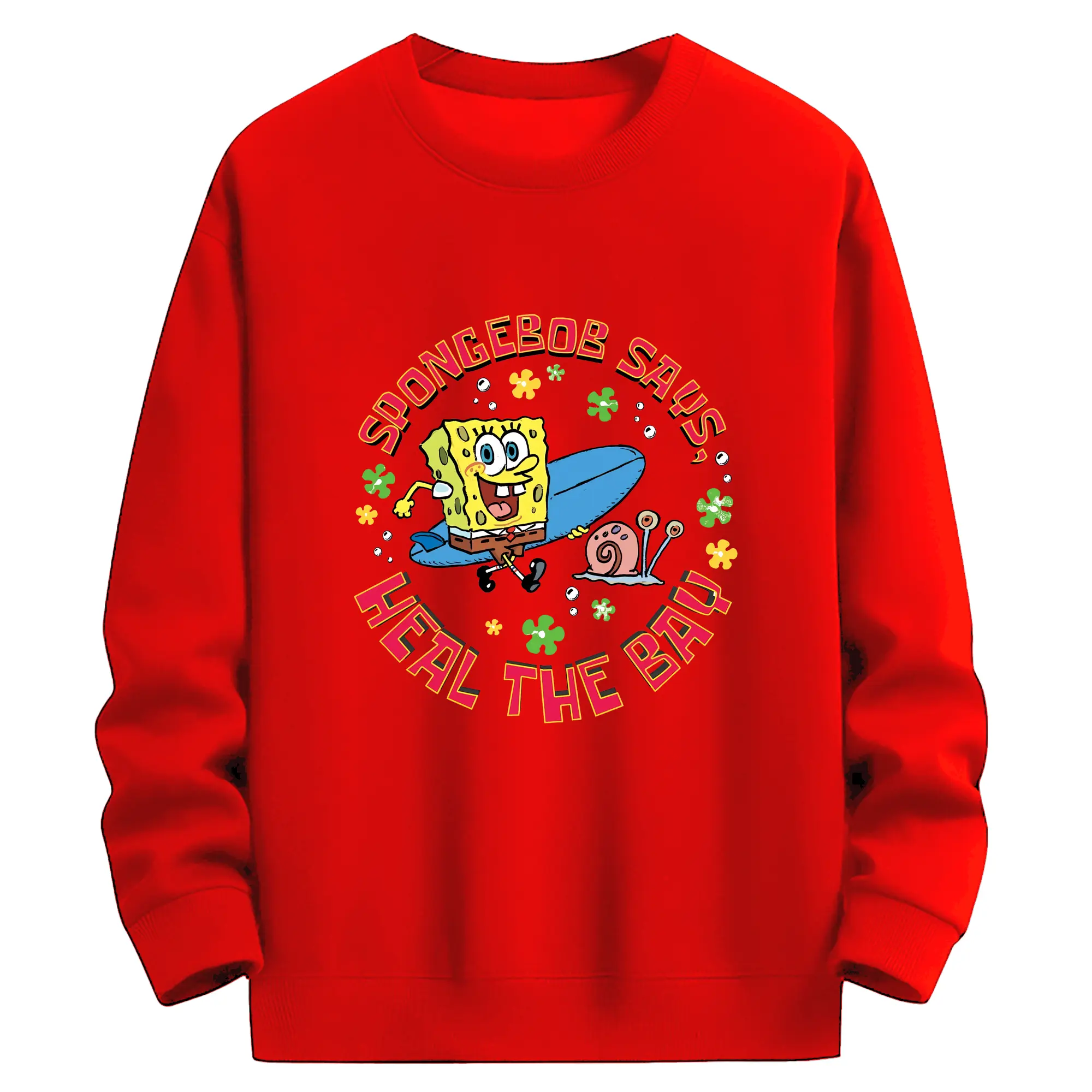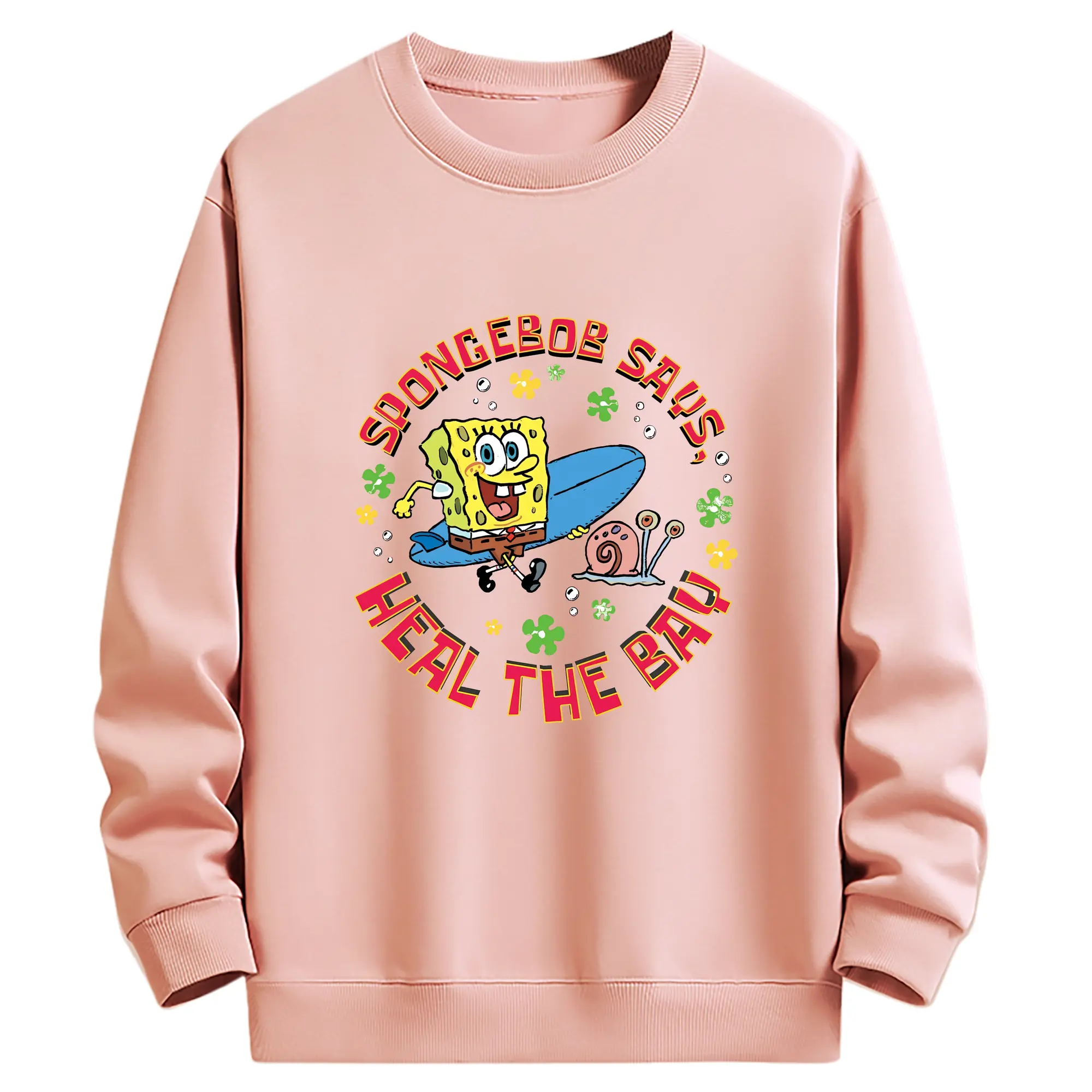 スポンジボブ グッズ スポンジボブ - 薄手 クルーネック スウェット 裏毛260g · ポリエステル 春秋向け カジュアル 男女兼用 · トレーナー デイリー スポーツ 散歩に最適