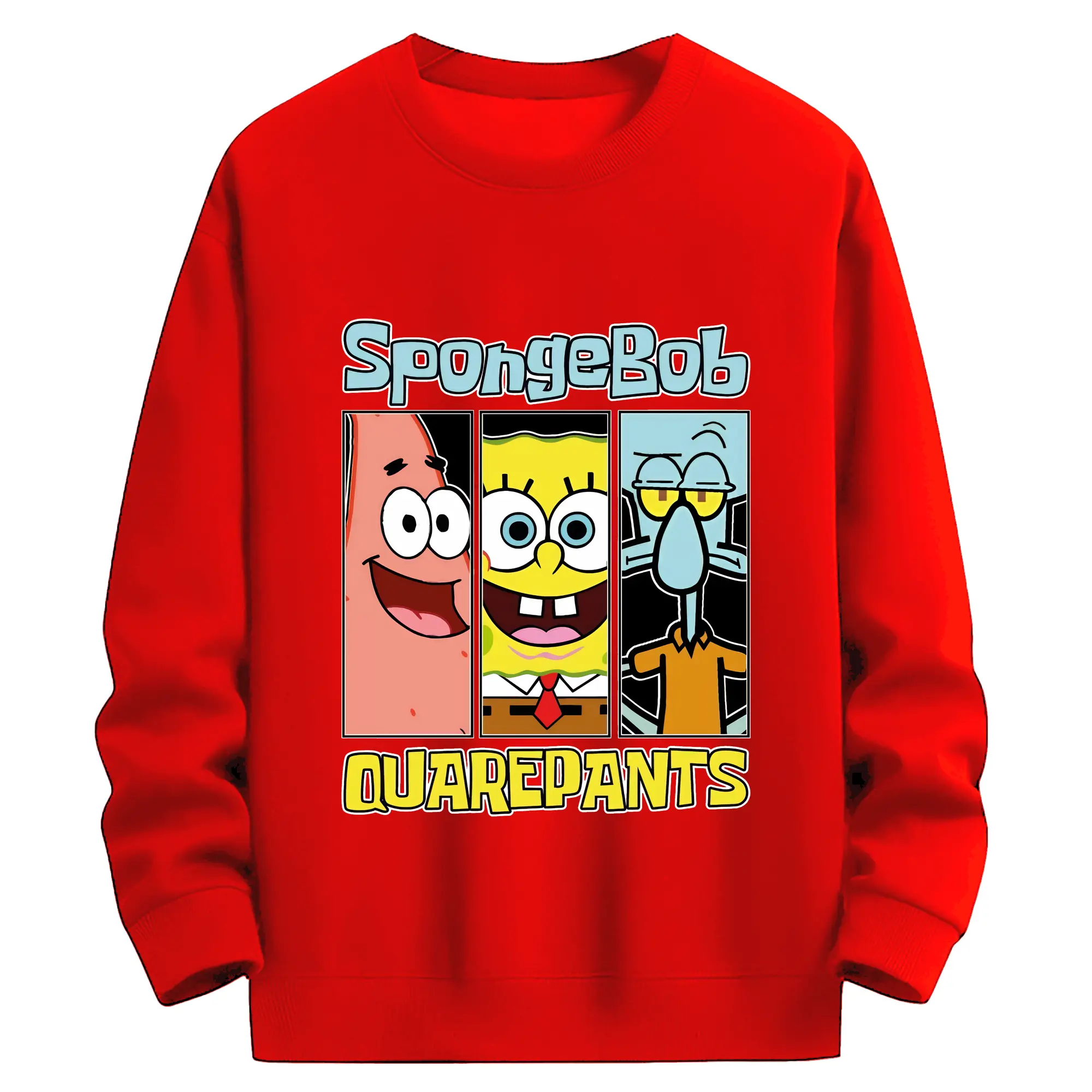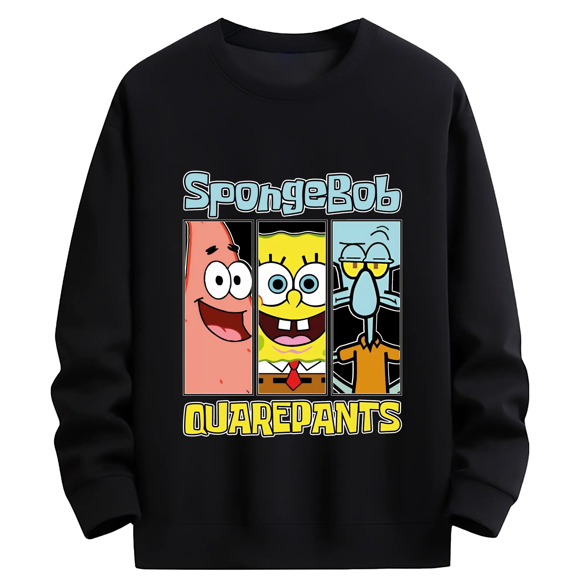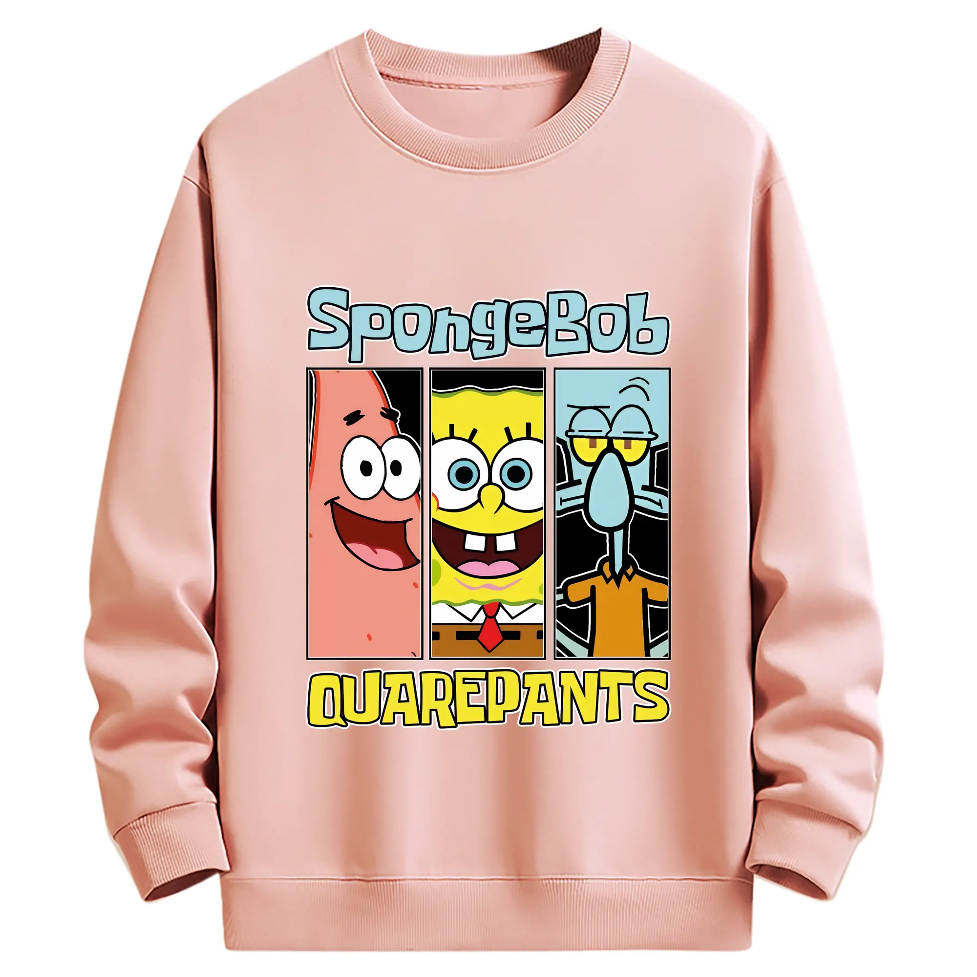 スポンジボブ グッズ スポンジボブ - 薄手 クルーネック スウェット 裏毛260g · ポリエステル 春秋向け カジュアル 男女兼用 · トレーナー デイリー スポーツ 散歩に最適
