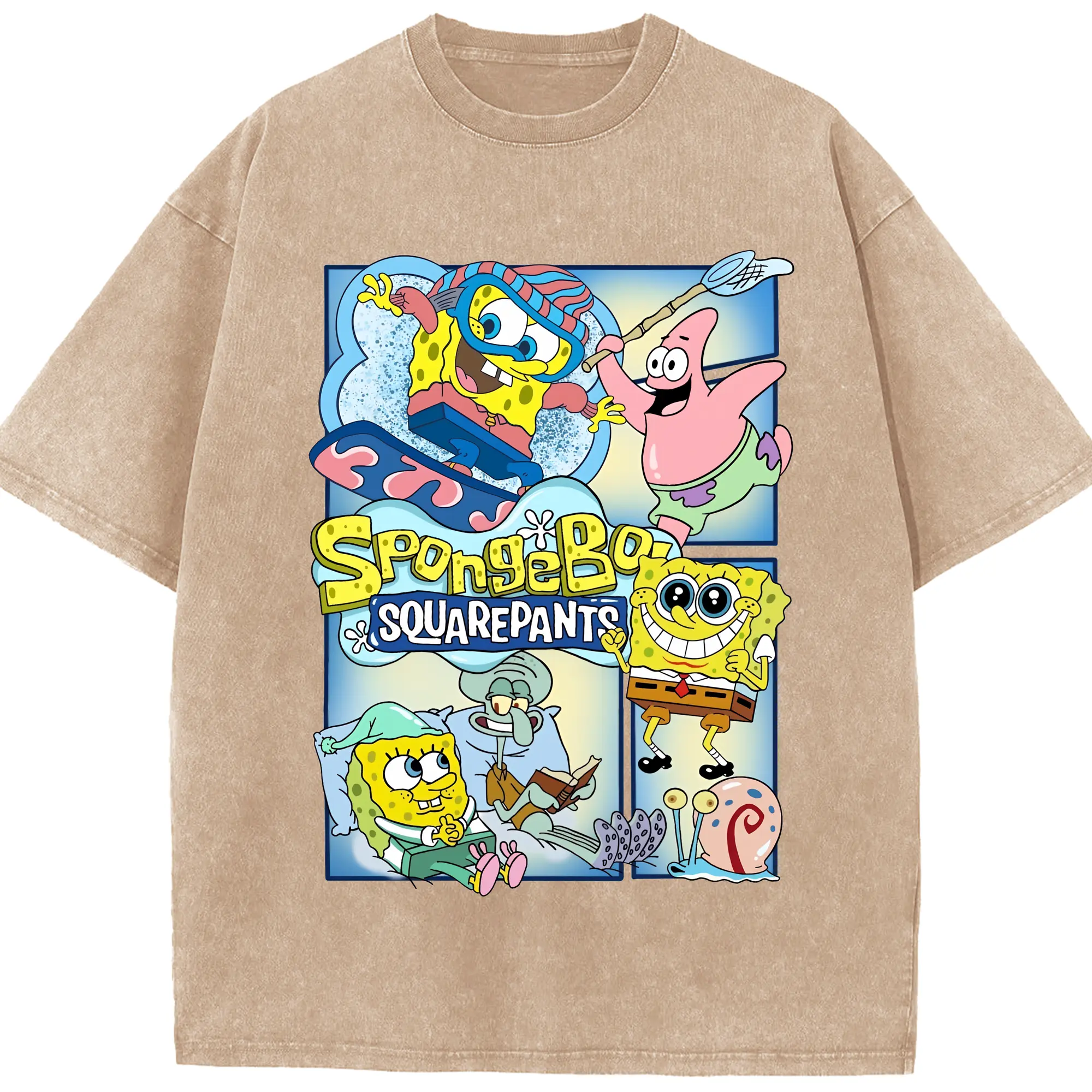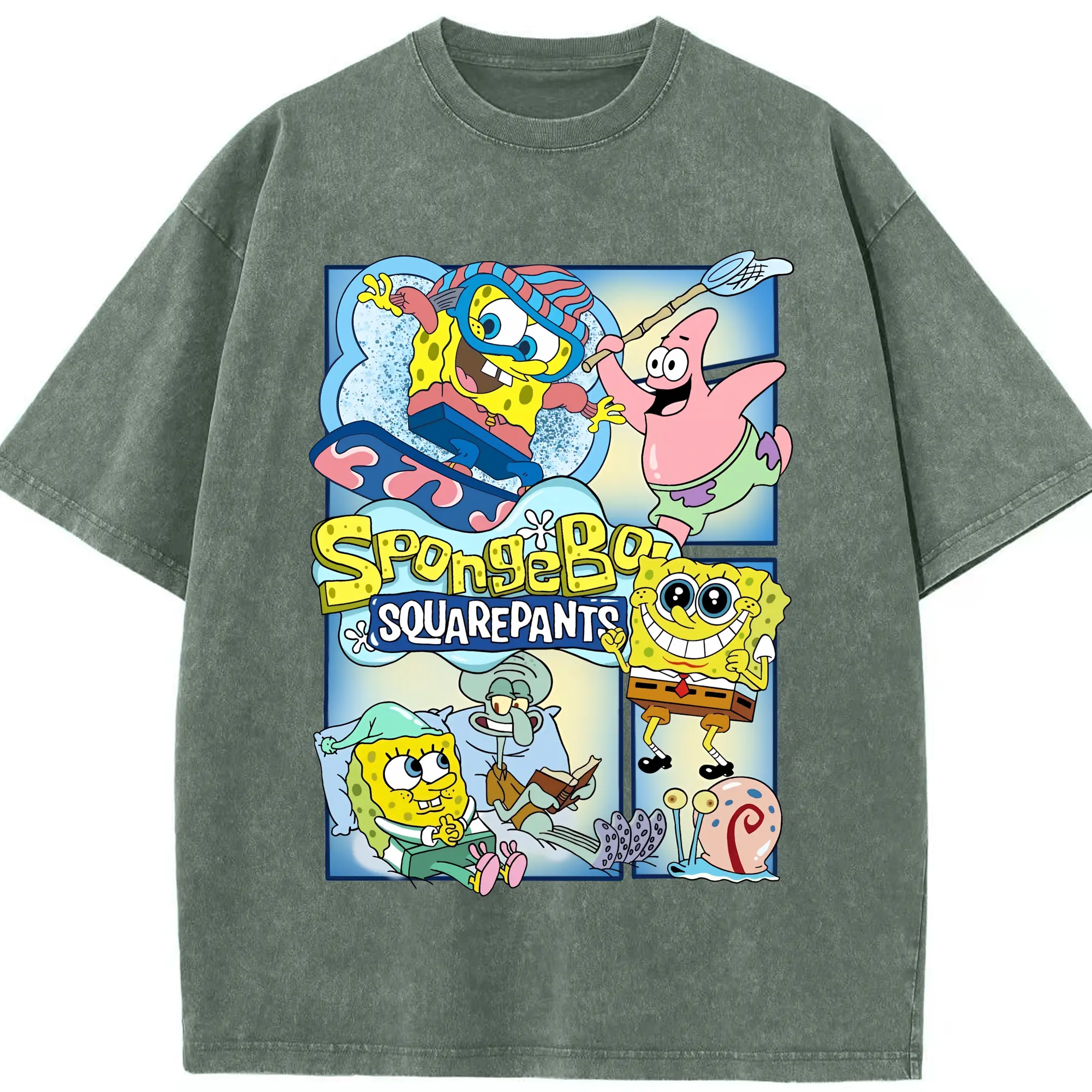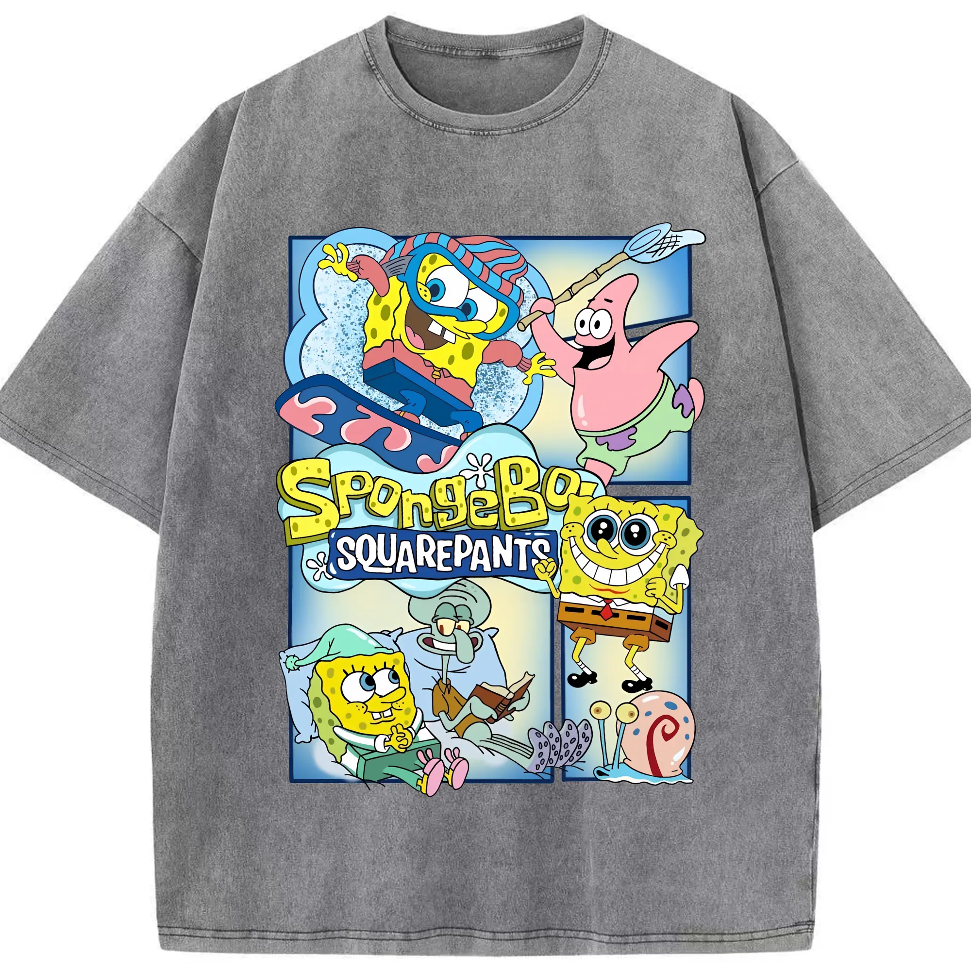 スポンジボブ グッズ スポンジボブ - 綿100% ヴィンテージ風 半袖Tシャツ ・ 背面プリント ・ 柔らか肌触り ・ 通気性 快適 ・ スポーツ カジュアル 外出用